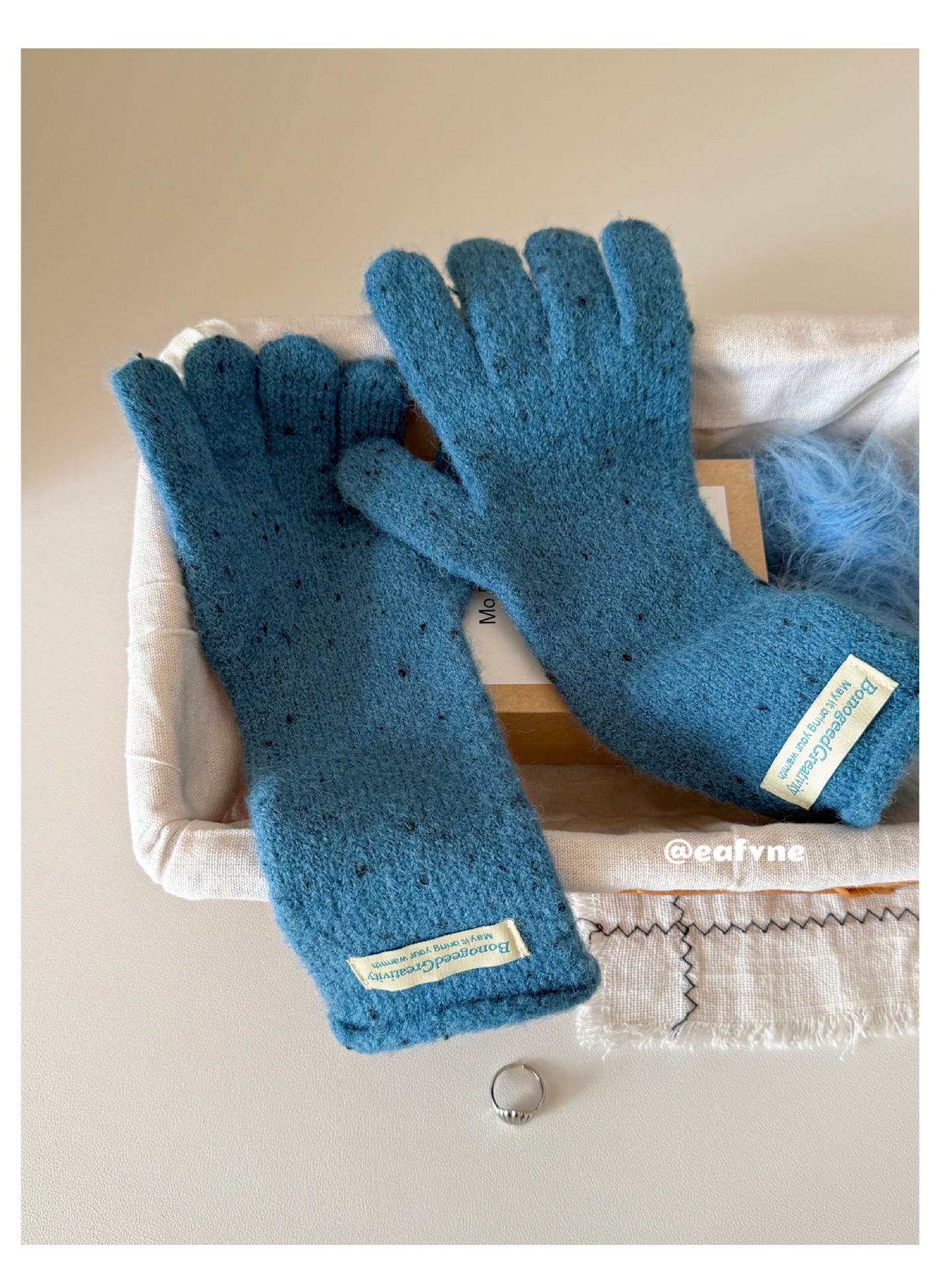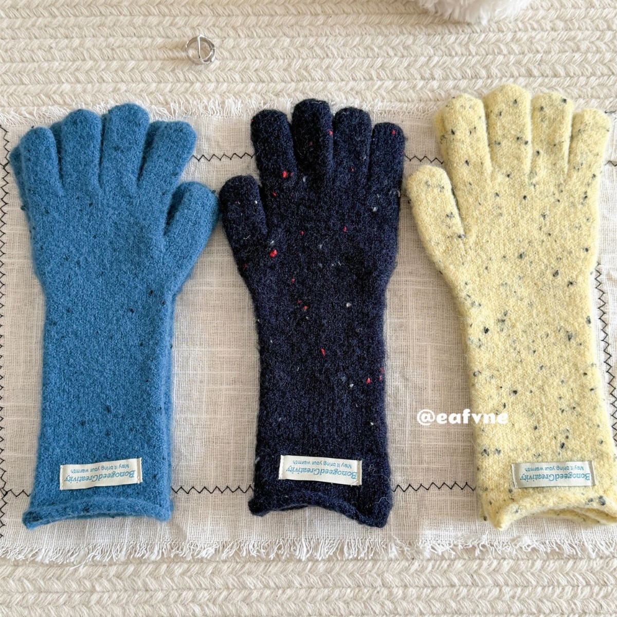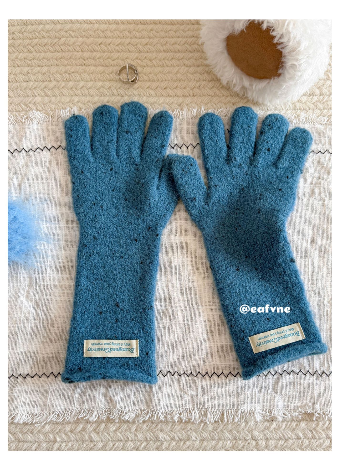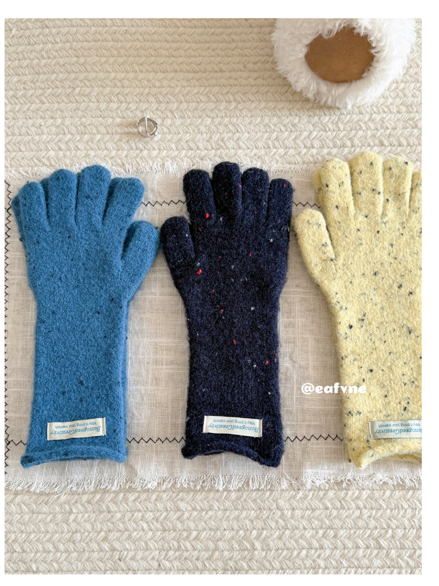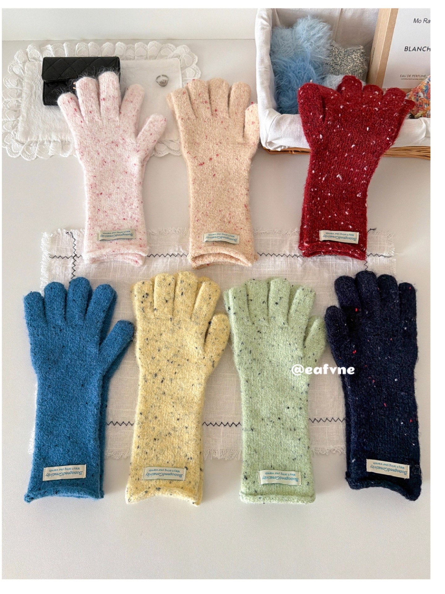 韩国订单东大门羊毛彩点手套女冬季加厚保暖纯色针织手套可触屏百