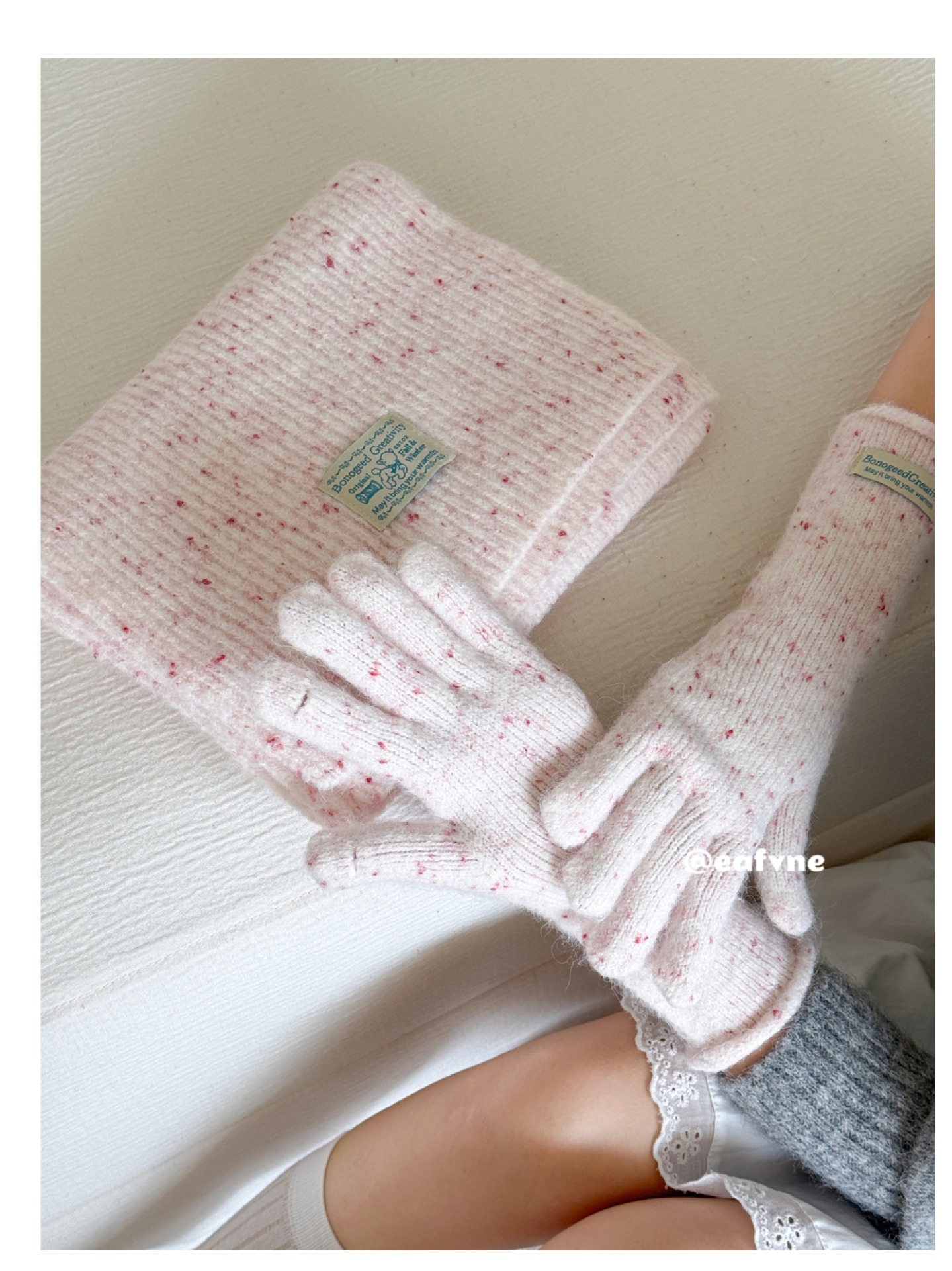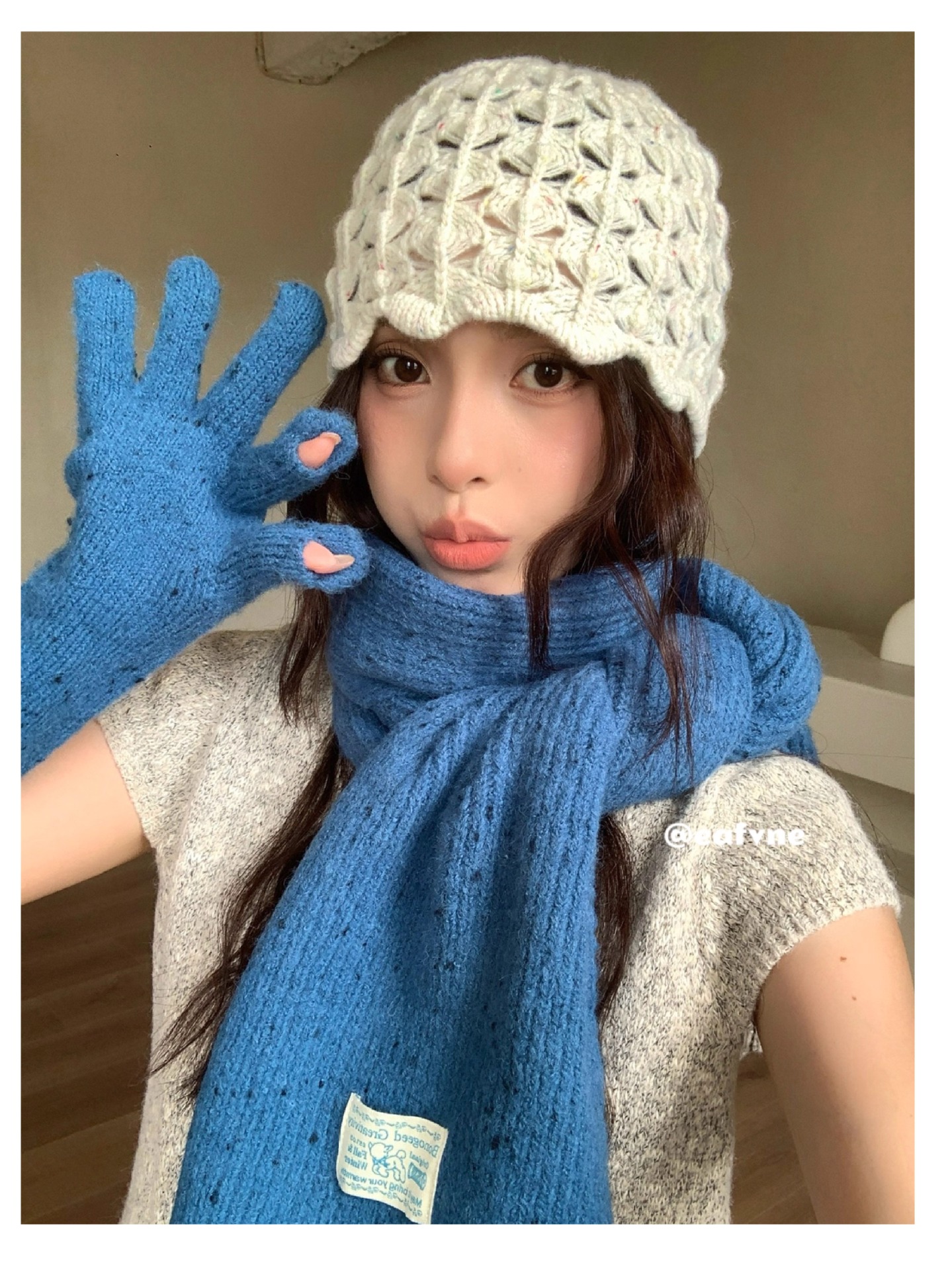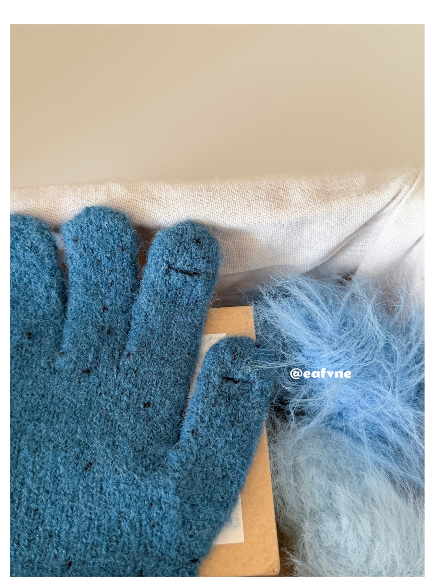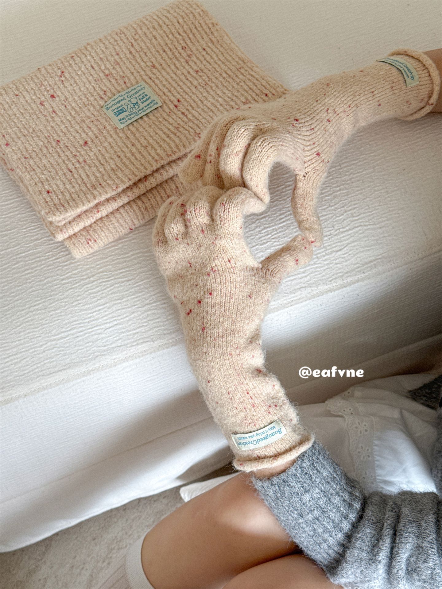 韩国订单东大门羊毛彩点手套女冬季加厚保暖纯色针织手套可触屏百