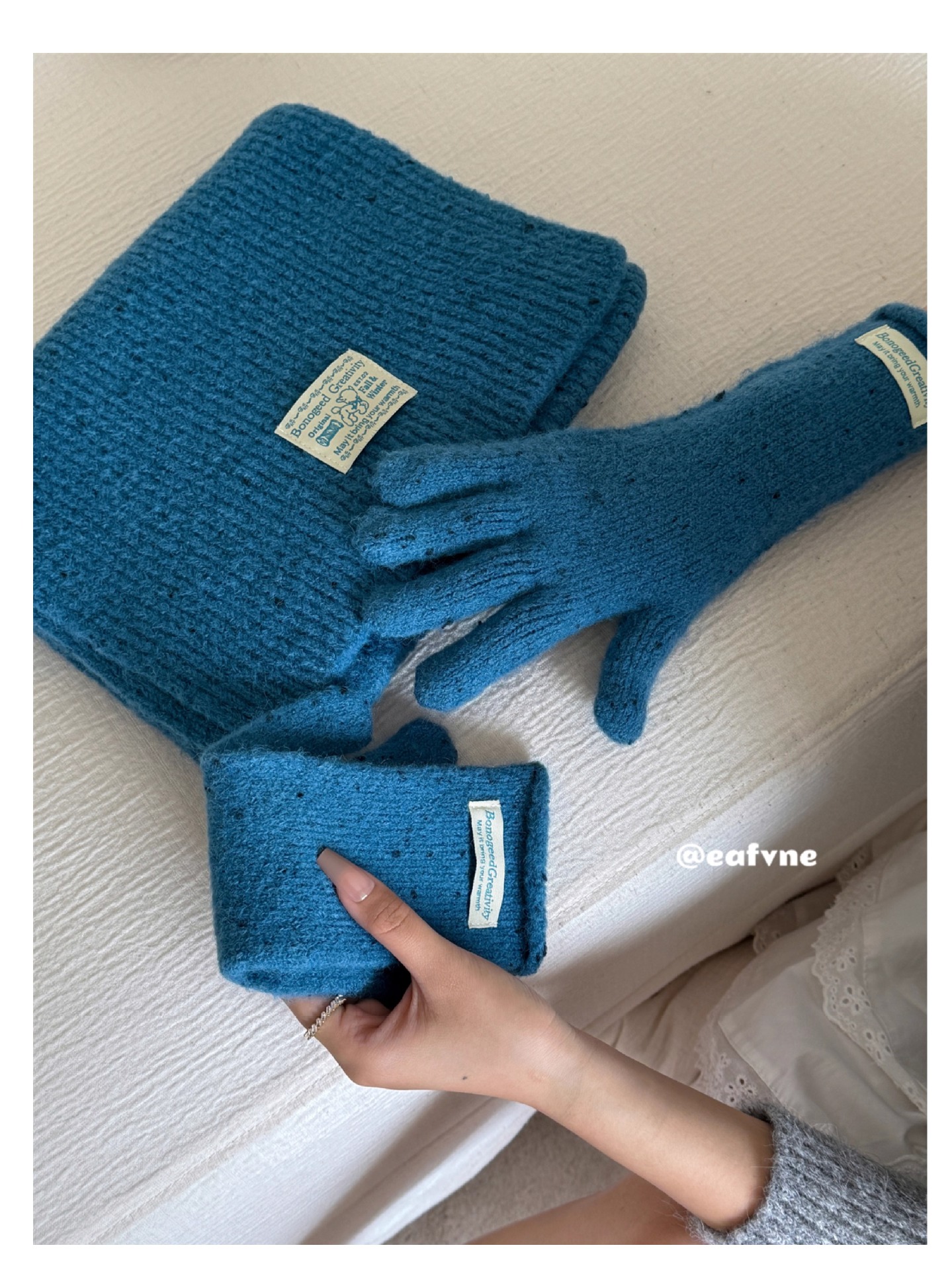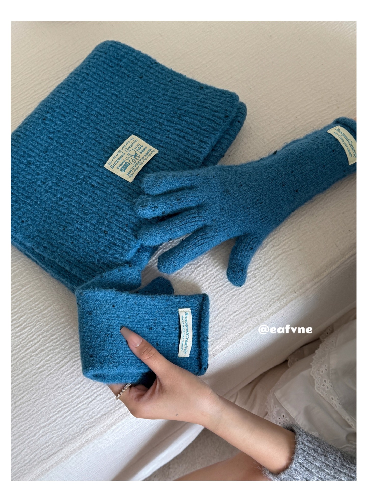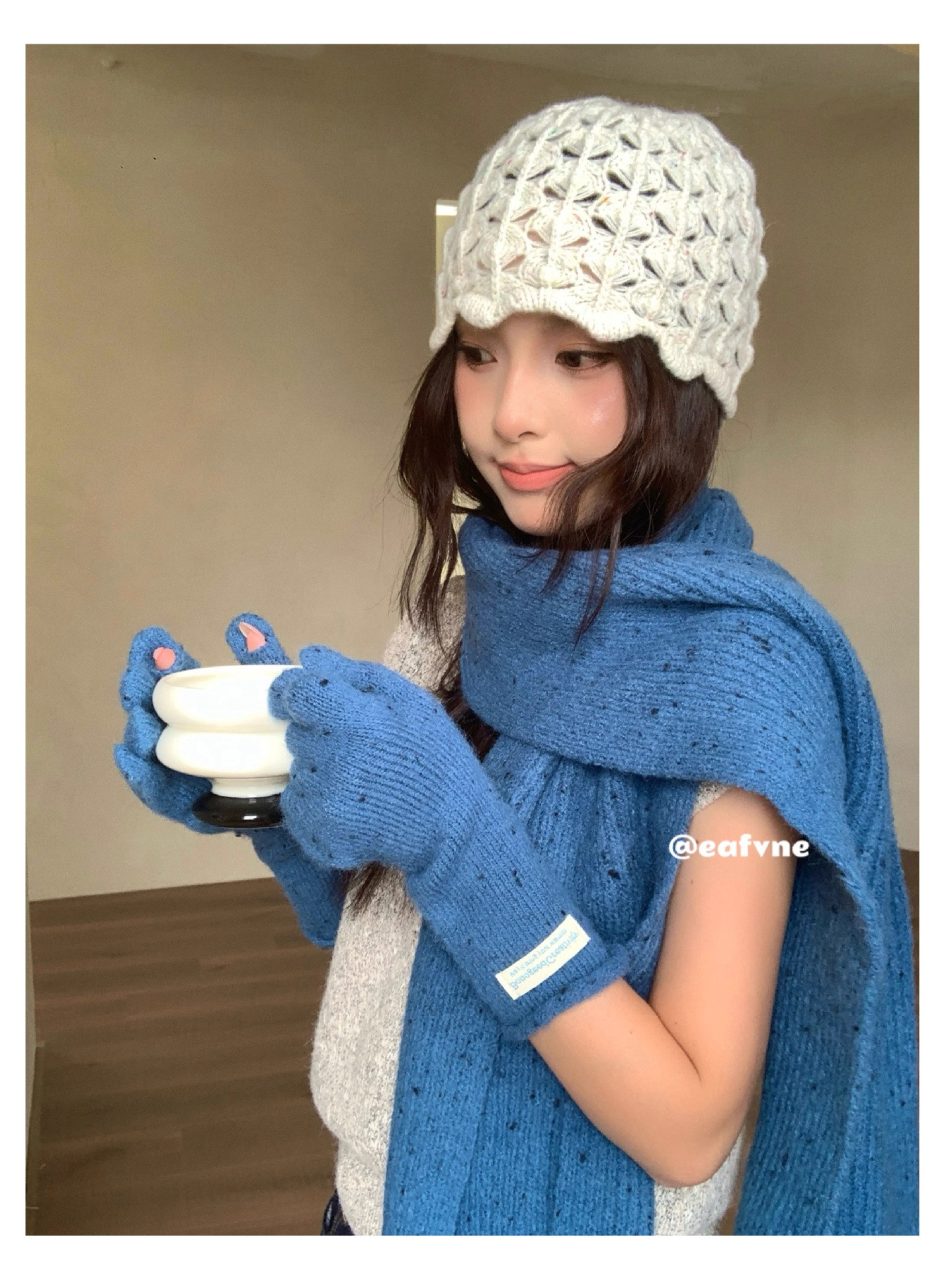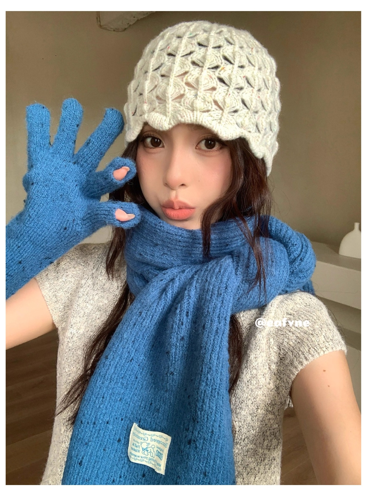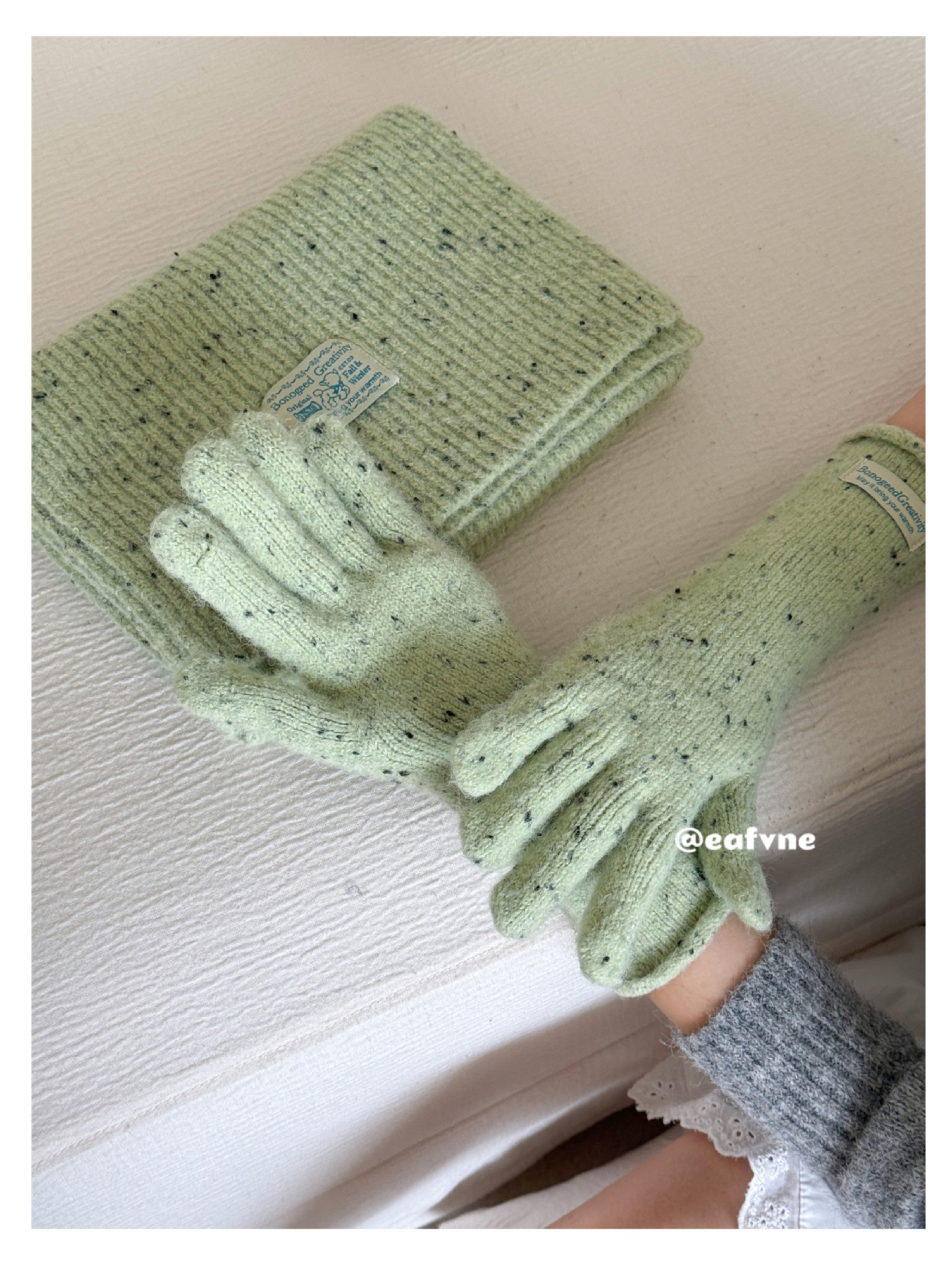 韩国订单东大门羊毛彩点手套女冬季加厚保暖纯色针织手套可触屏百