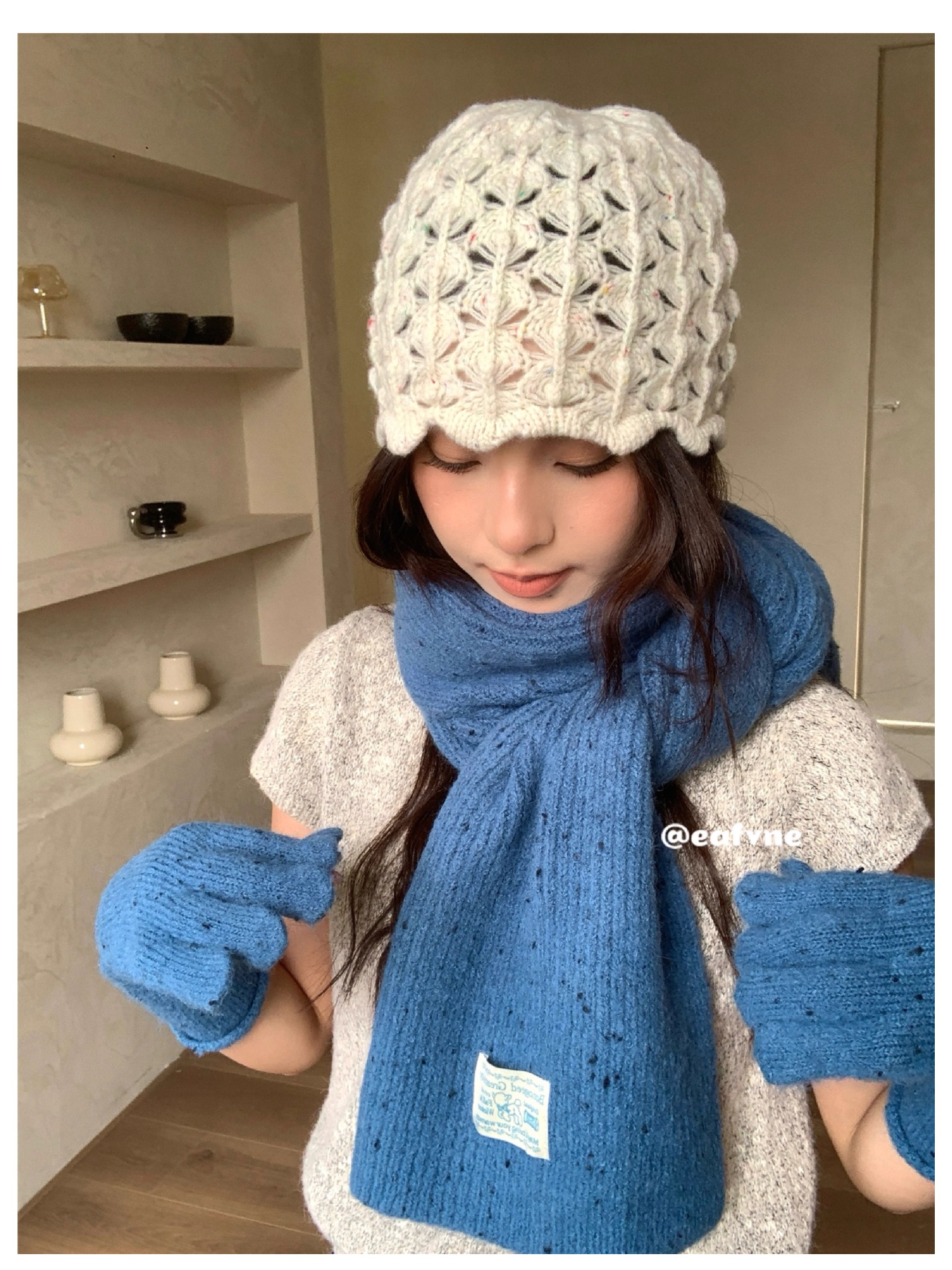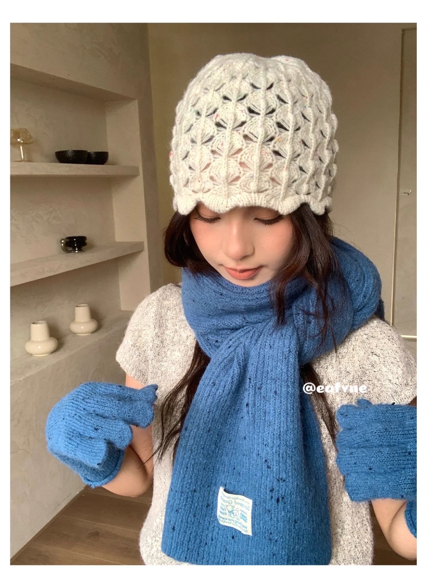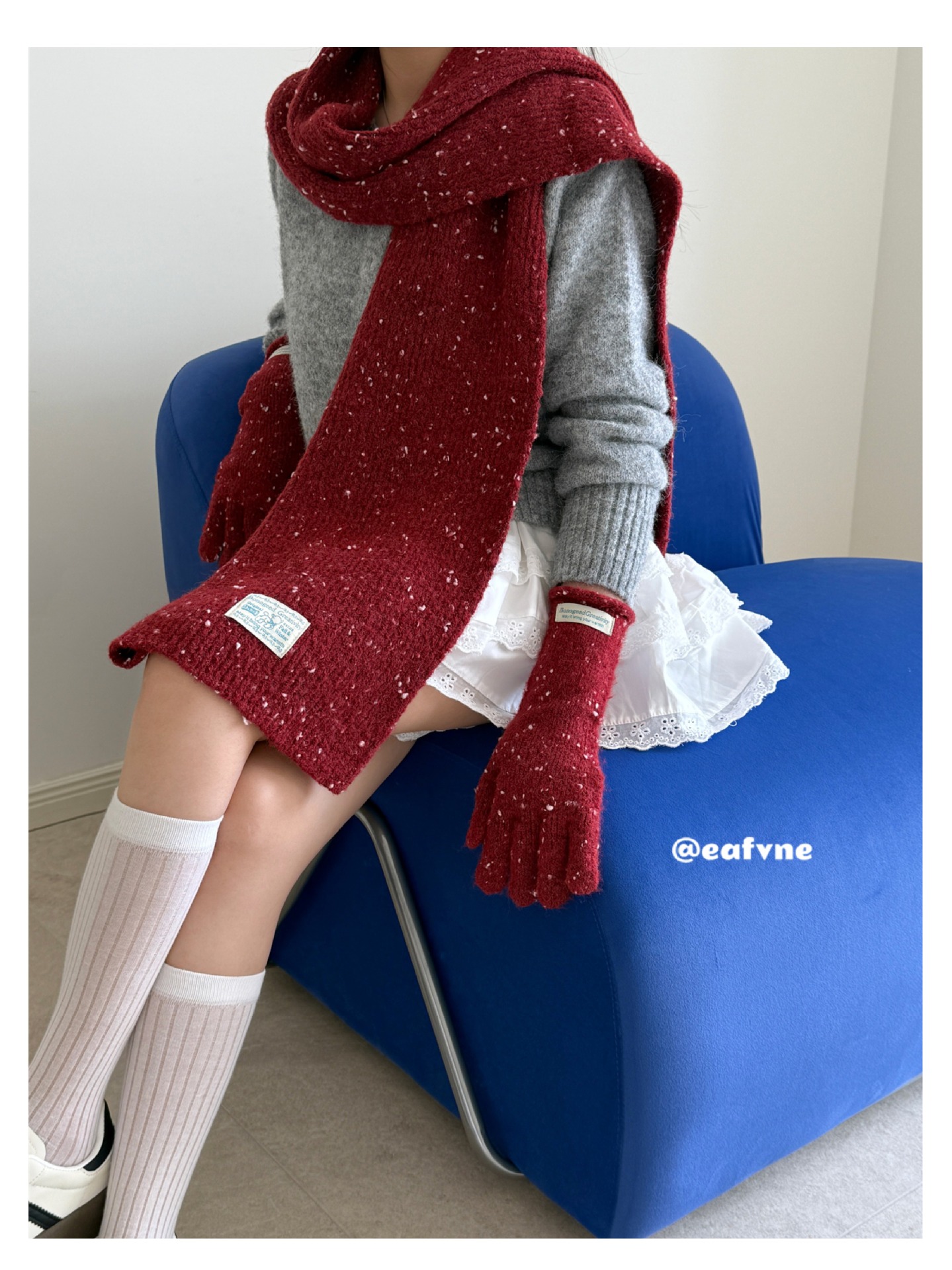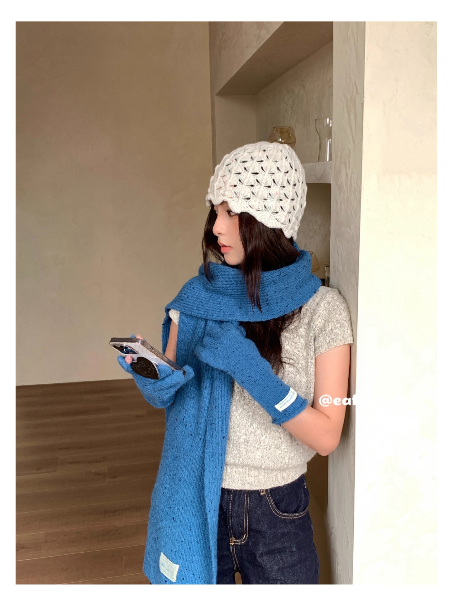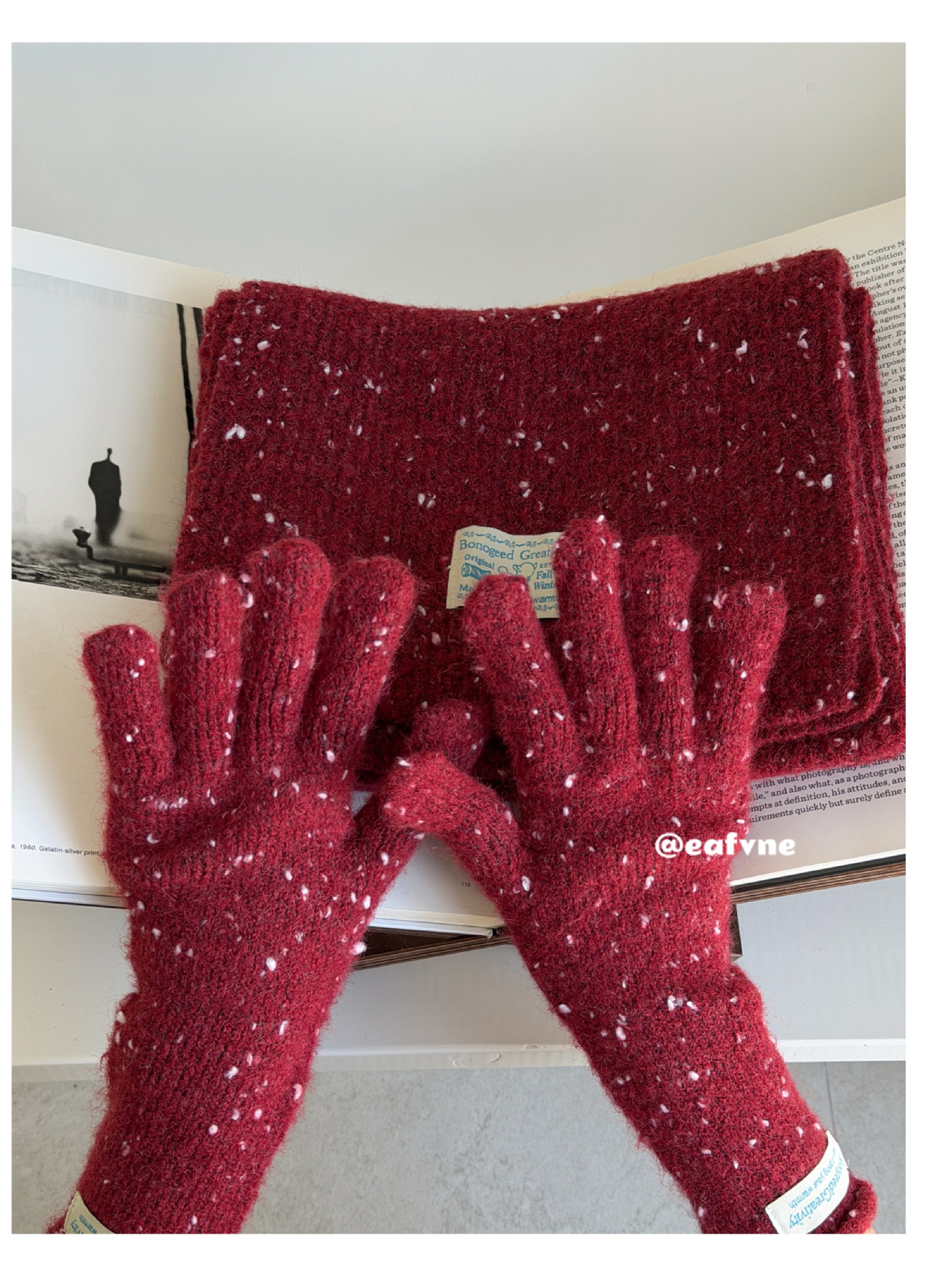 韩国订单东大门羊毛彩点手套女冬季加厚保暖纯色针织手套可触屏百
