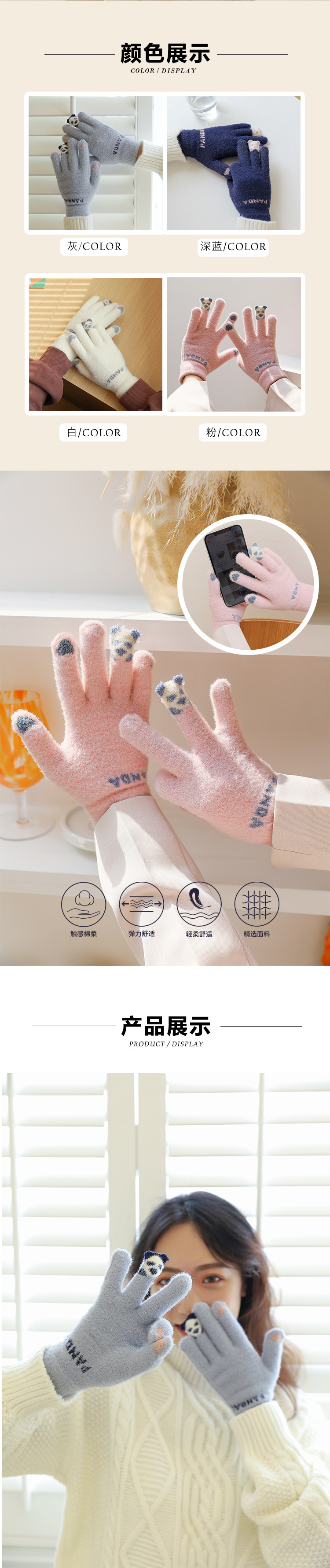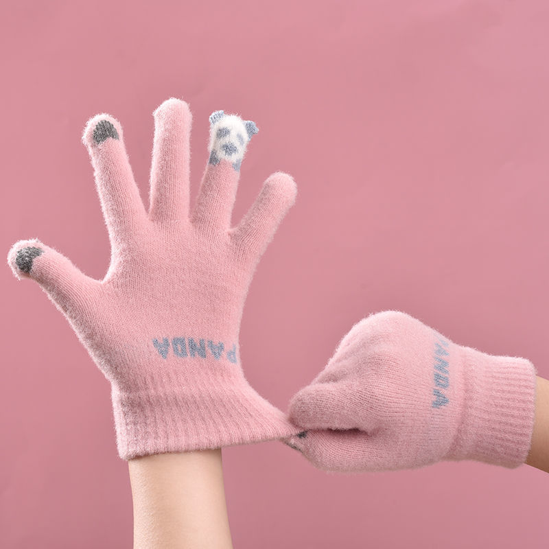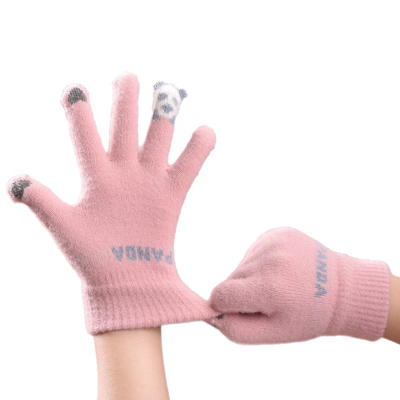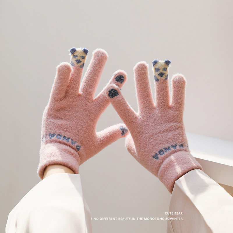 触屏手套女秋冬可爱韩版学生难骑车加绒加厚针织毛线五指户外防寒