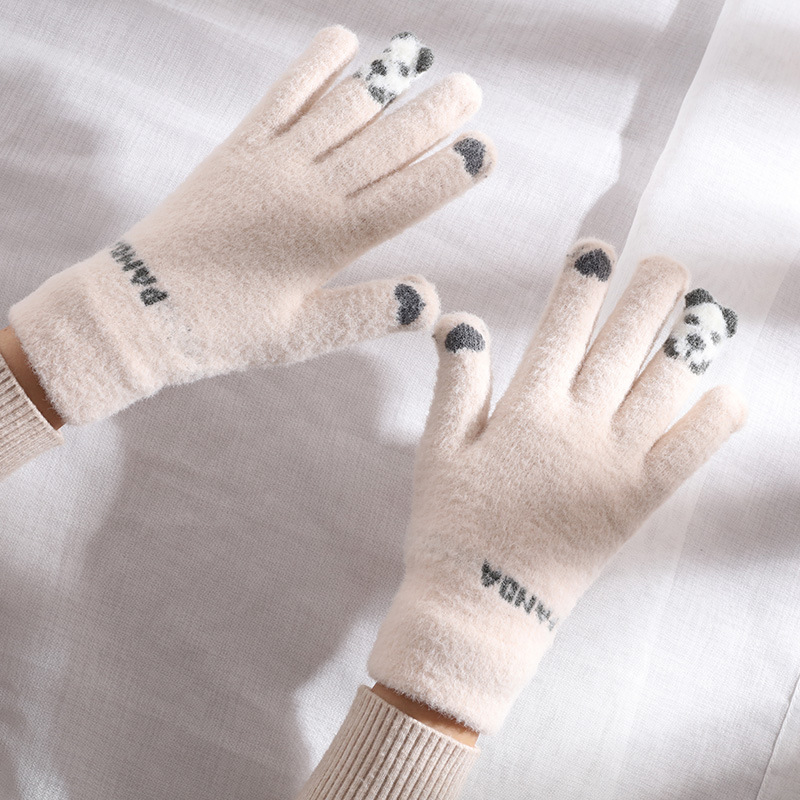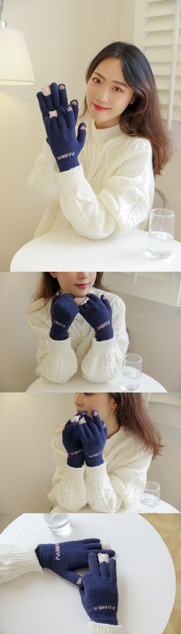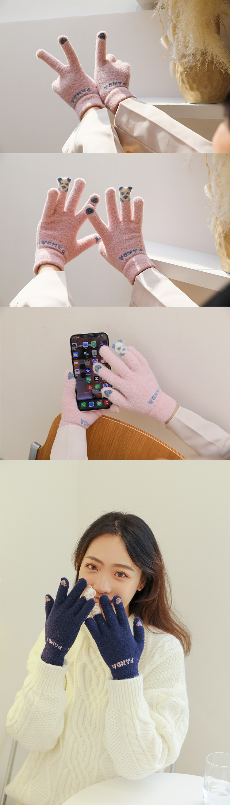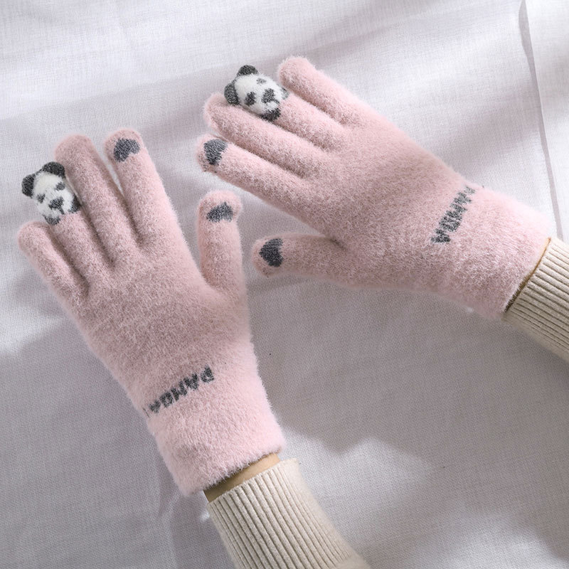 触屏手套女秋冬可爱韩版学生难骑车加绒加厚针织毛线五指户外防寒