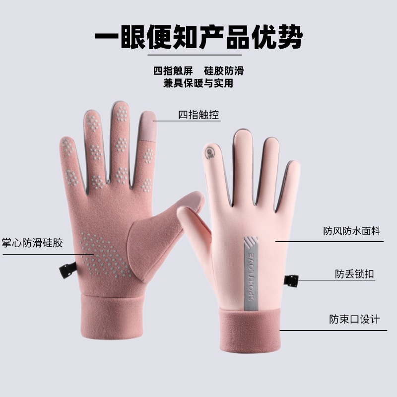 运动加绒保暖手套秋冬季男女款触屏滑雪自行车骑行开车户外手套