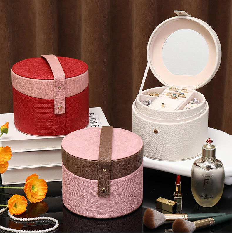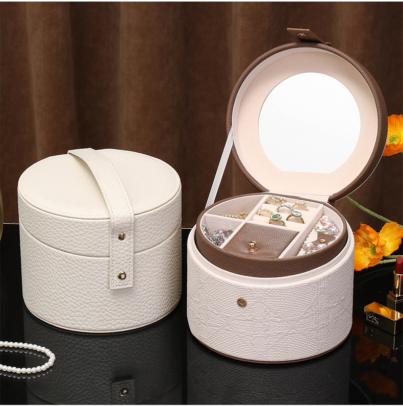 首饰盒家用戒指盒耳环项链耳钉收纳箱包装珠宝盒shein饰品盒圆形