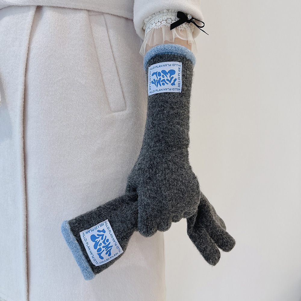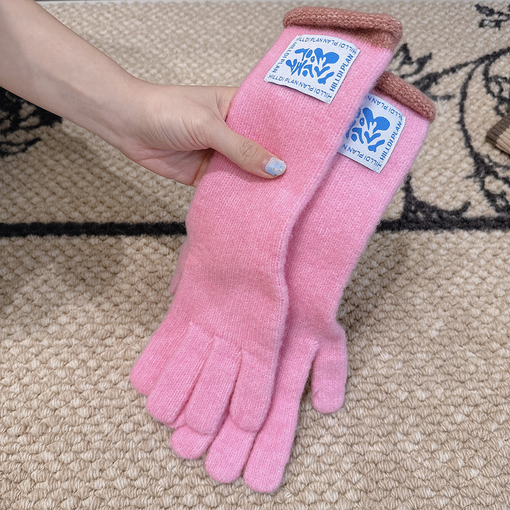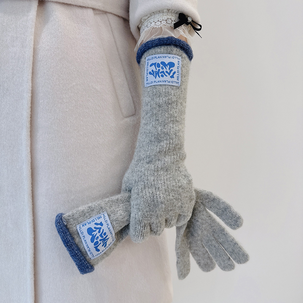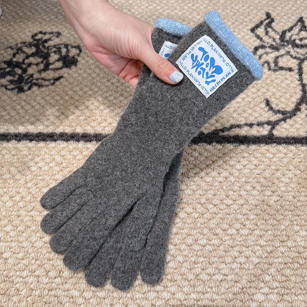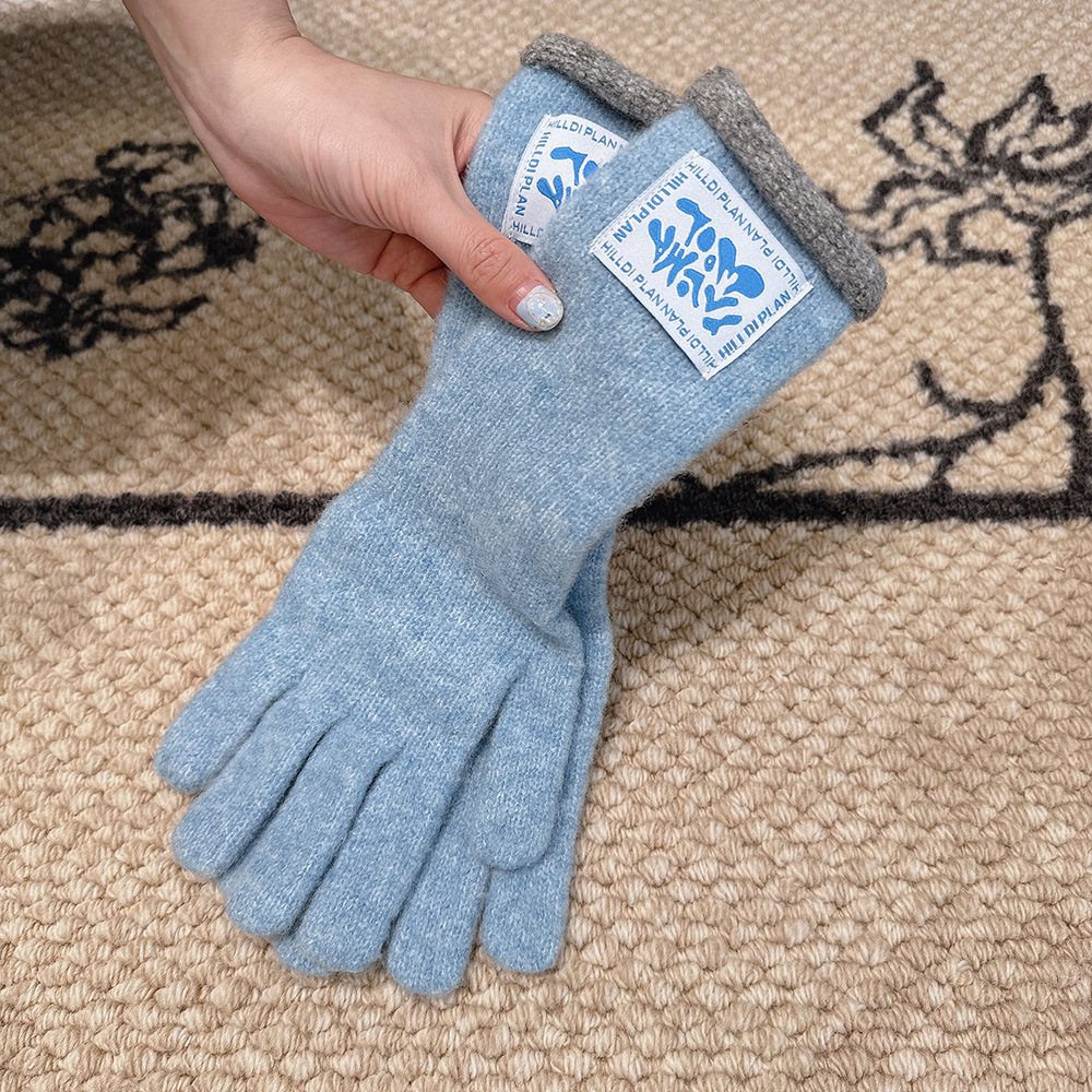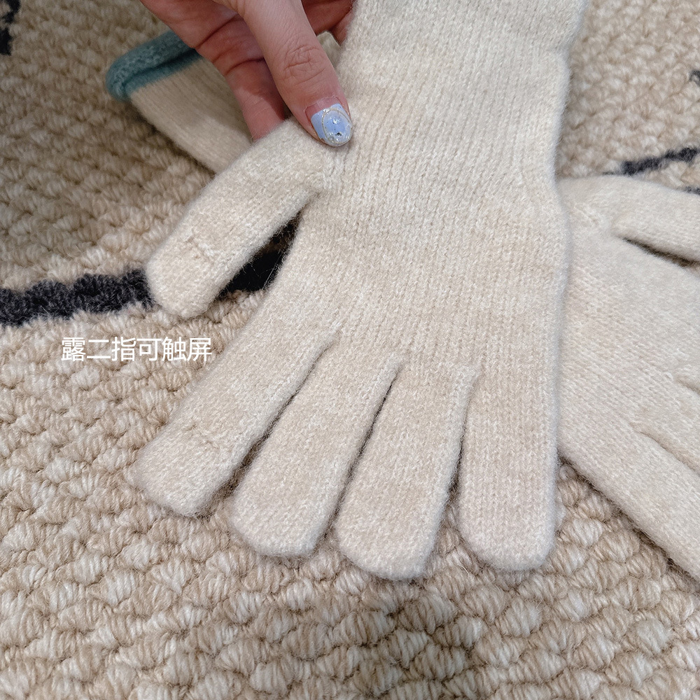 长款休闲百搭含羊毛冬季保暖手套女柔软露二指可触屏韩标ins风潮