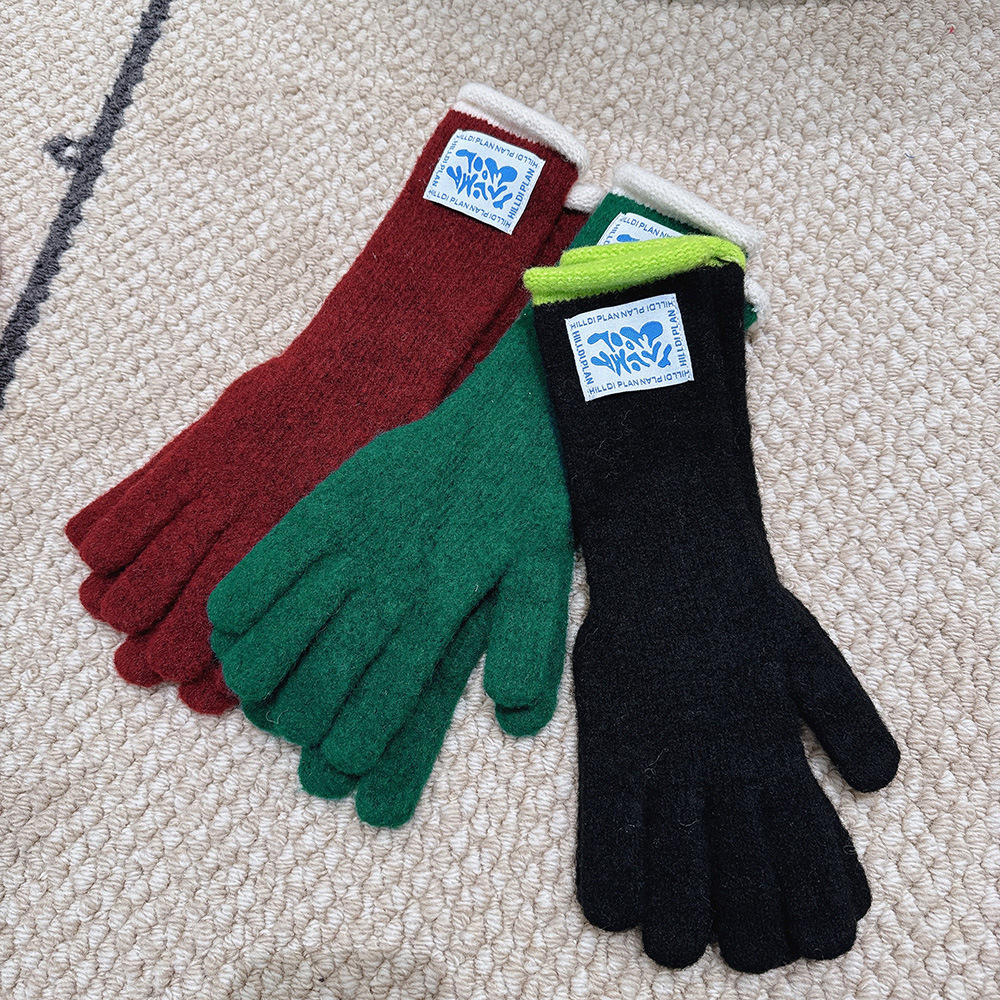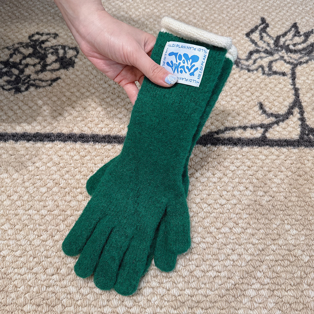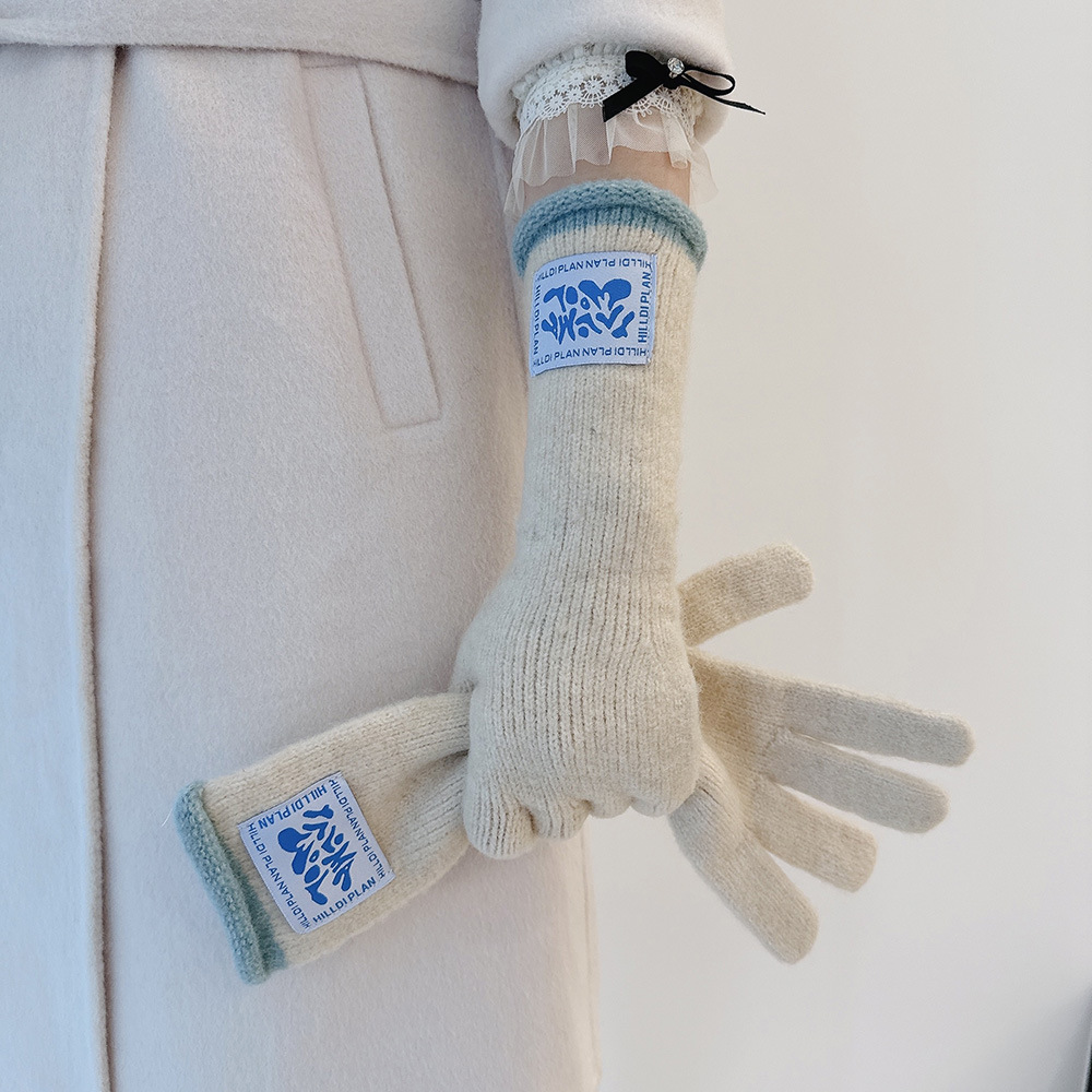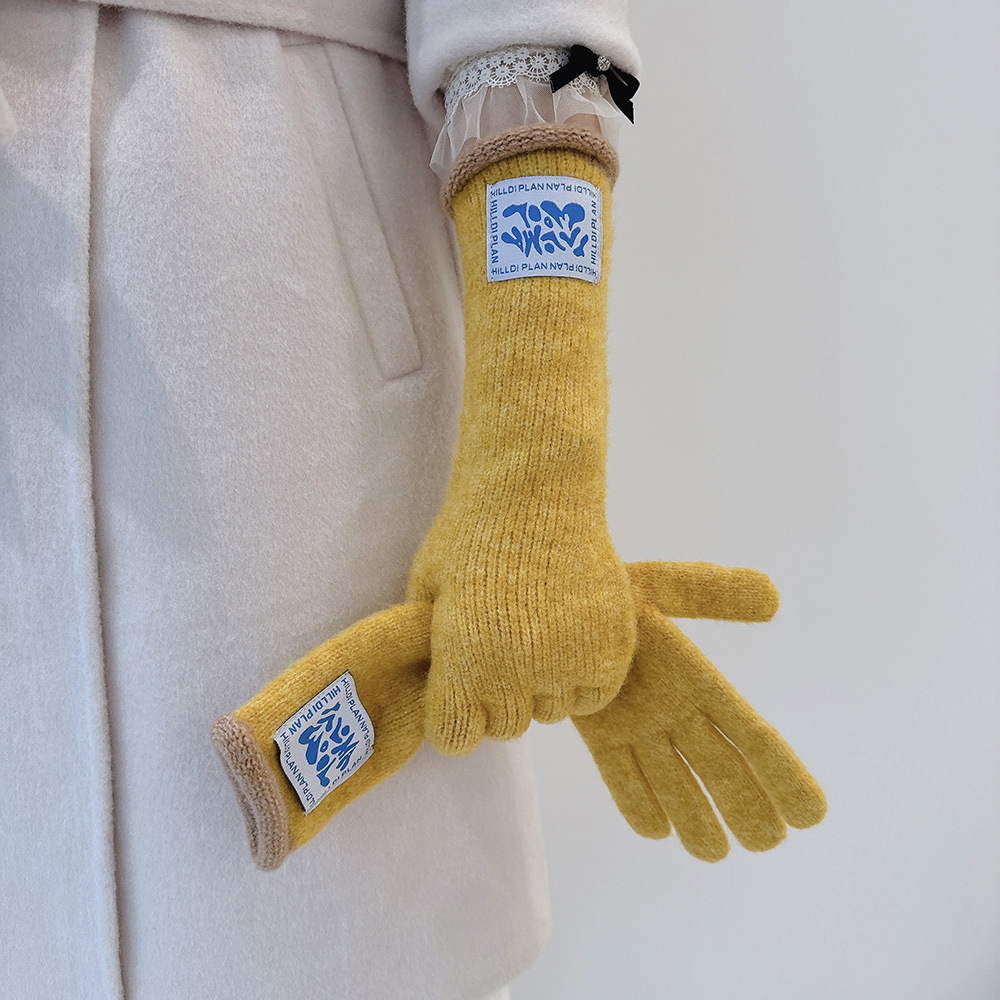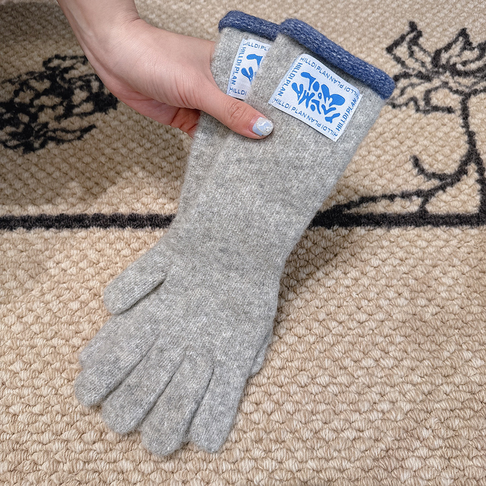 长款休闲百搭含羊毛冬季保暖手套女柔软露二指可触屏韩标ins风潮