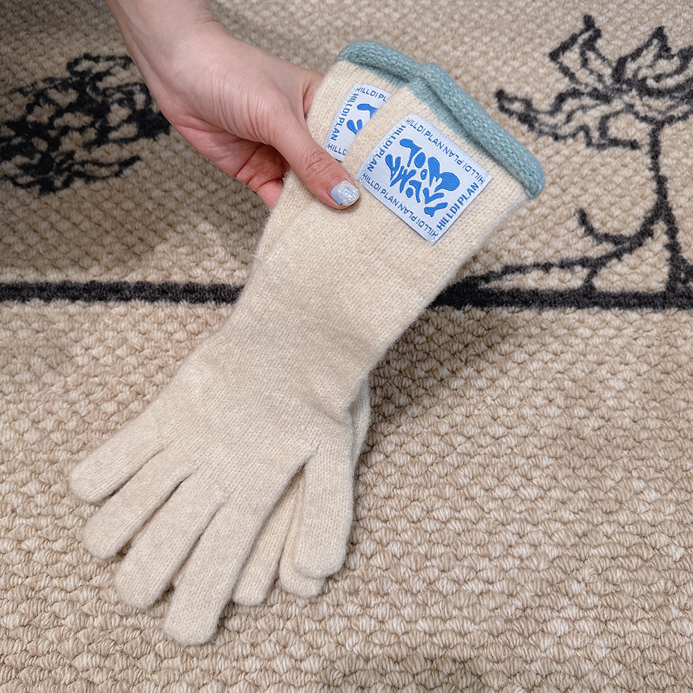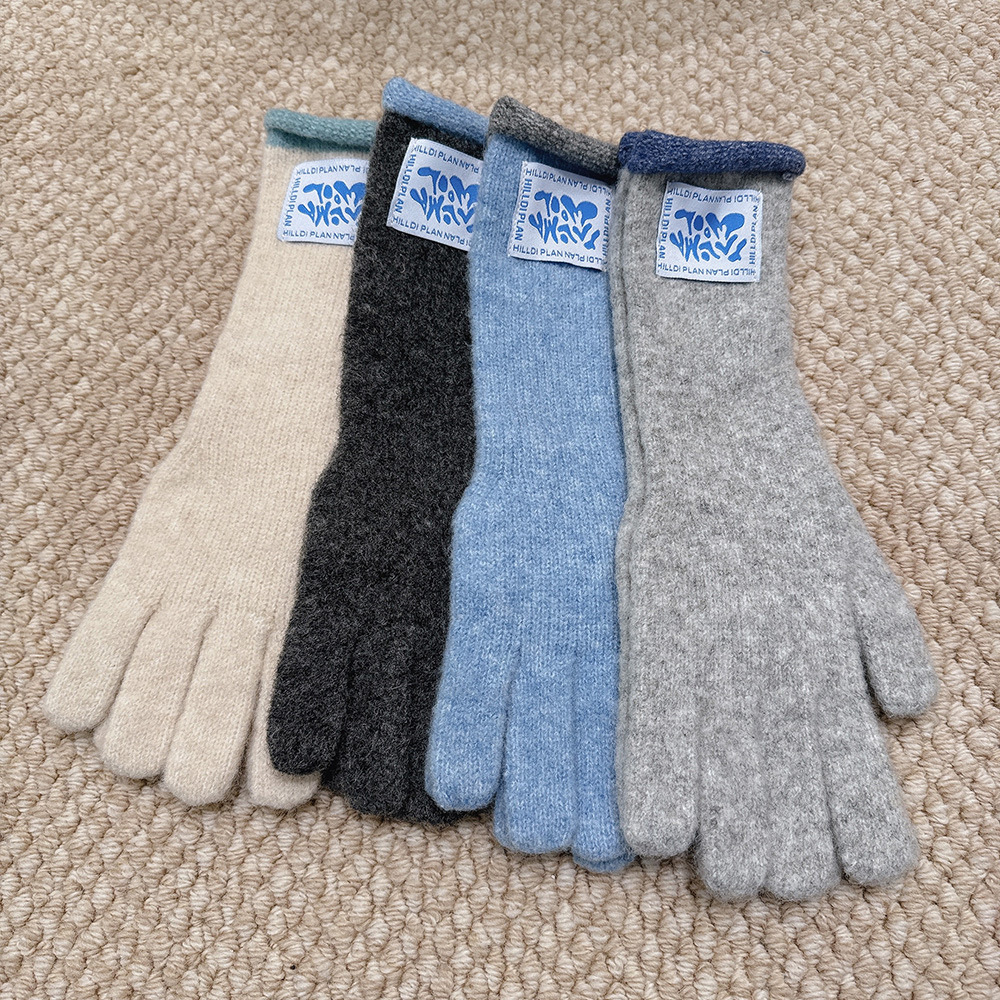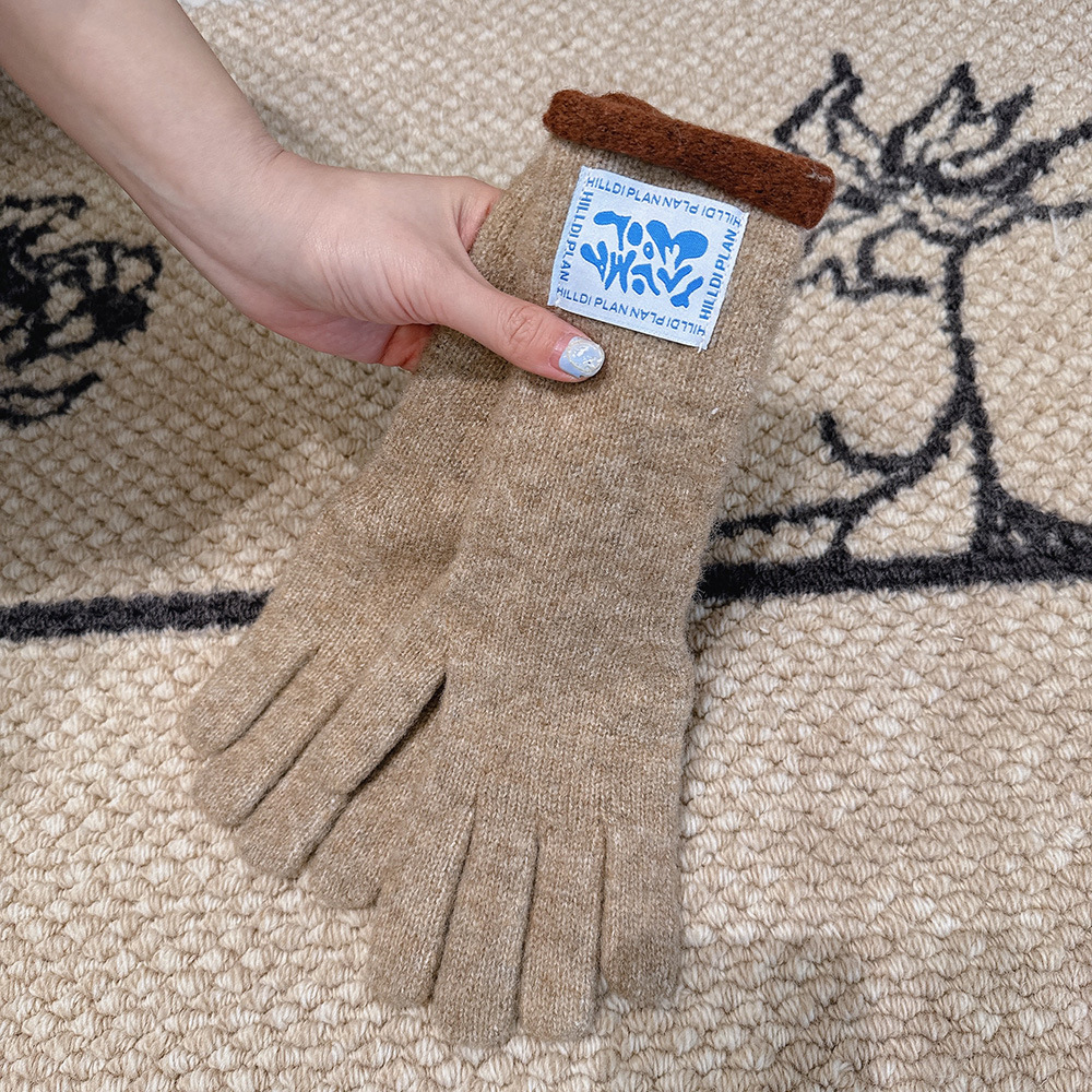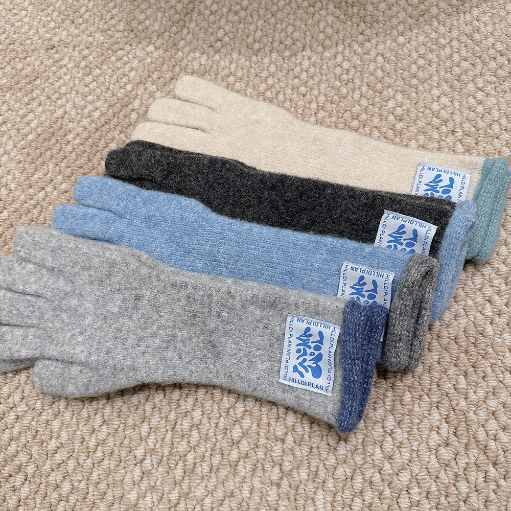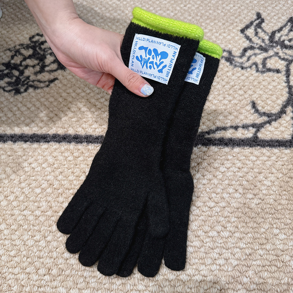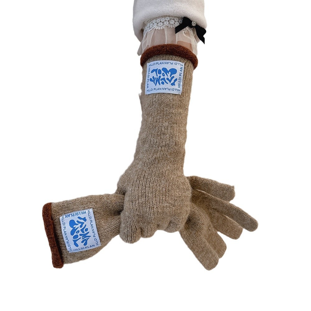 长款休闲百搭含羊毛冬季保暖手套女柔软露二指可触屏韩标ins风潮