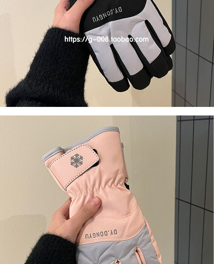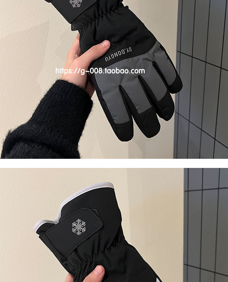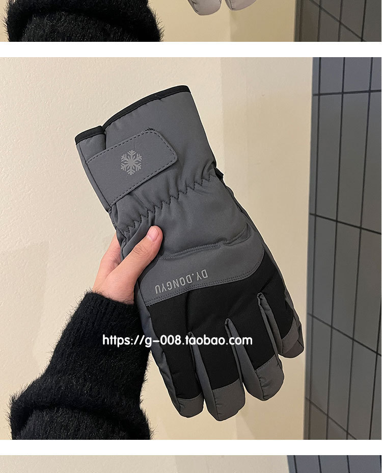 滑雪手套男女冬季骑行加绒加厚保暖防风防寒防水可触屏五指情侣款