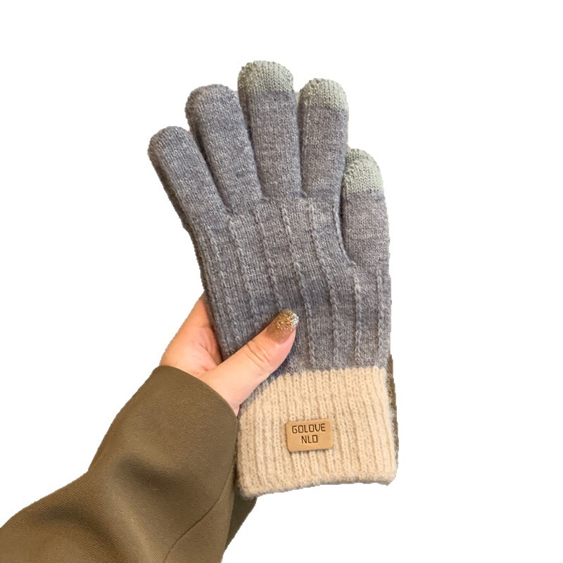 针织手套男女士冬天触屏保暖骑行手套加绒毛线秋冬季加厚防寒防风