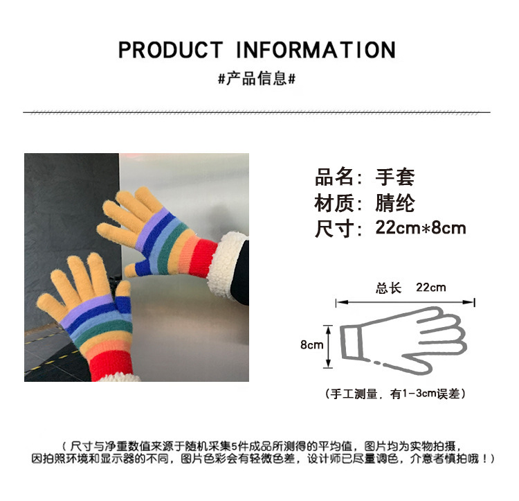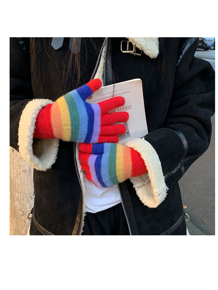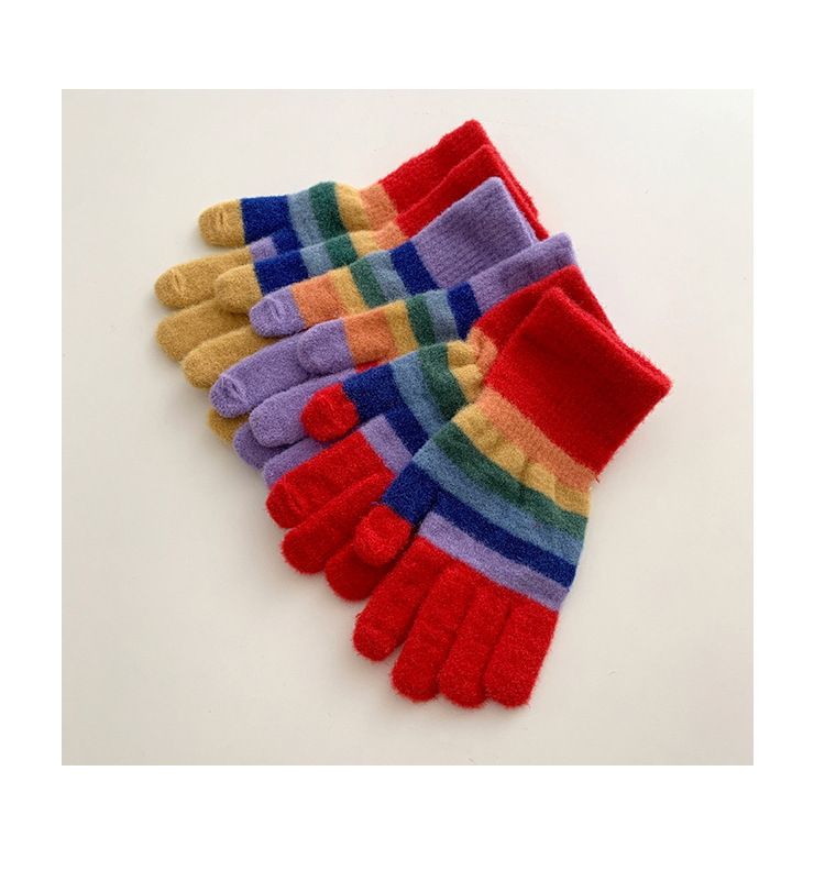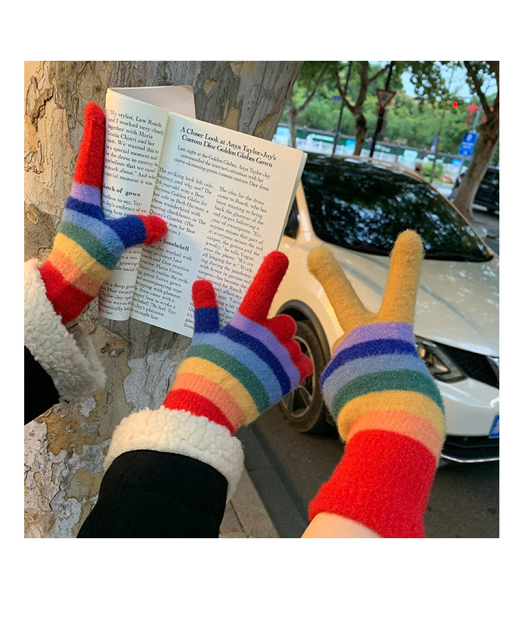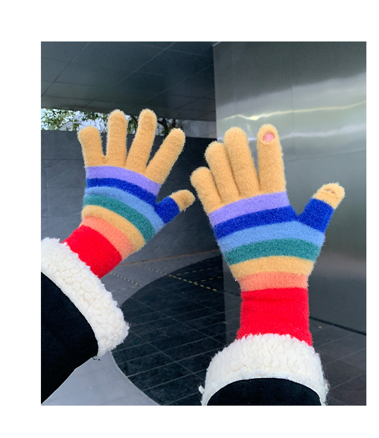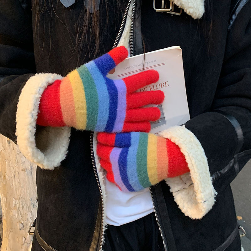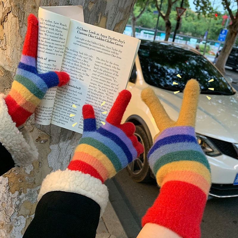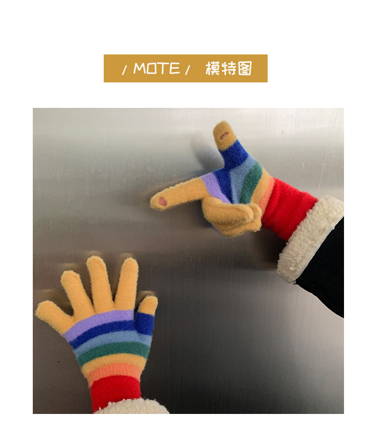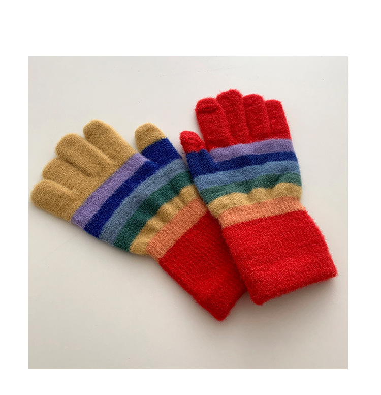 新款冬季彩色条纹手套女骑行滑雪保暖防风全包分指学生可触屏开车