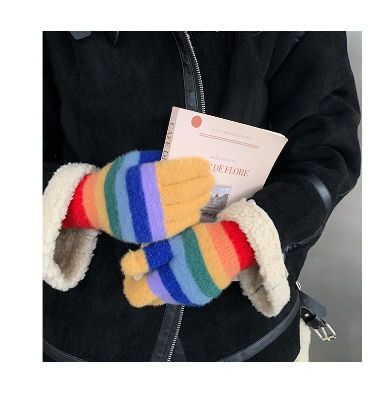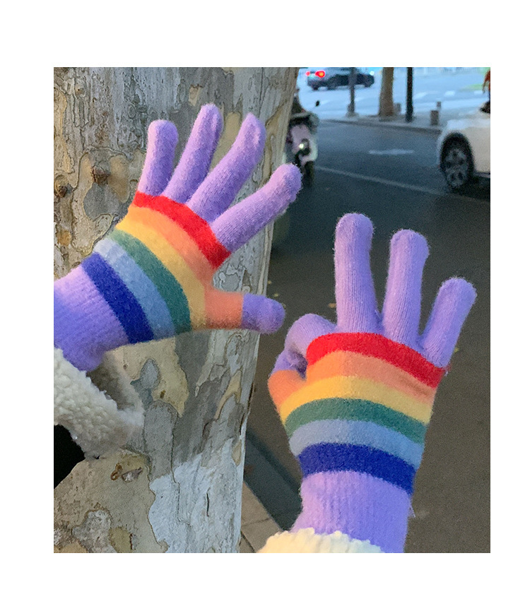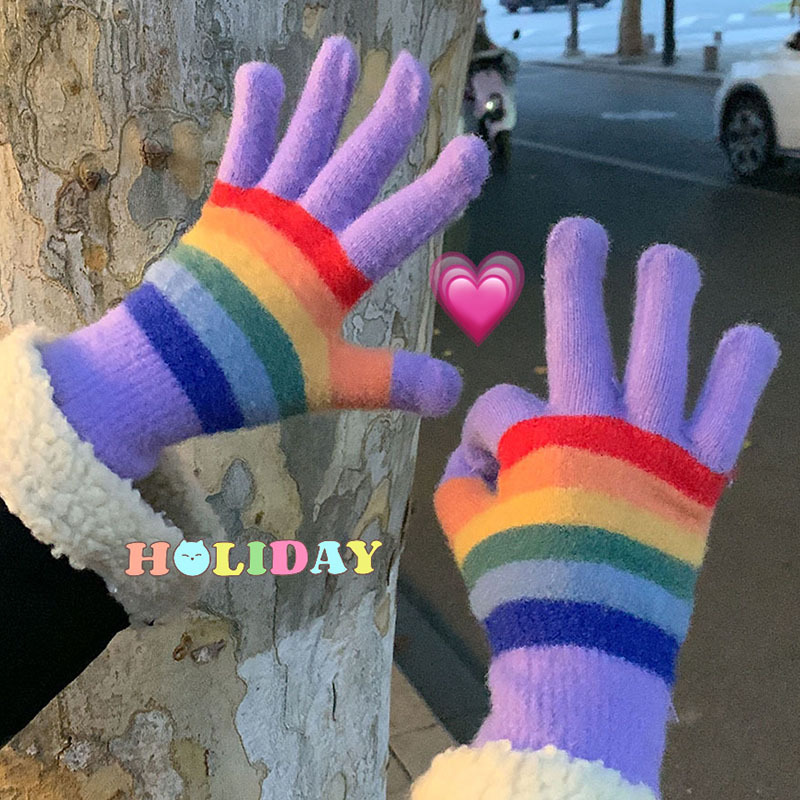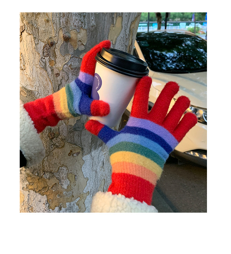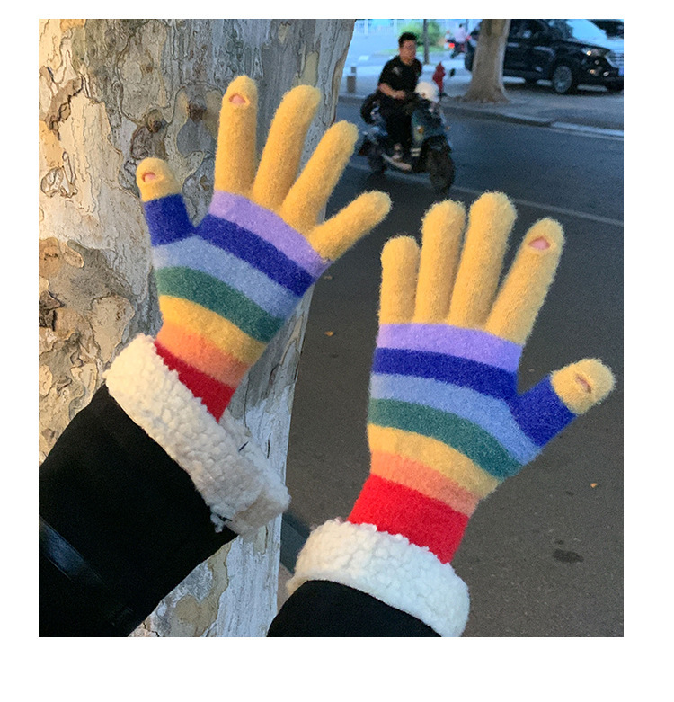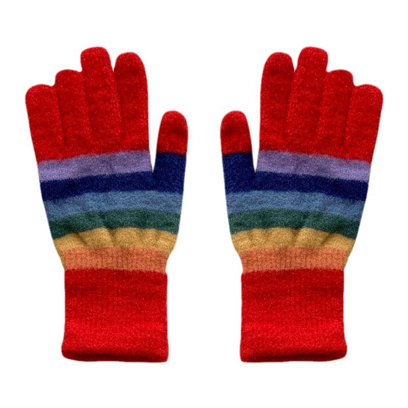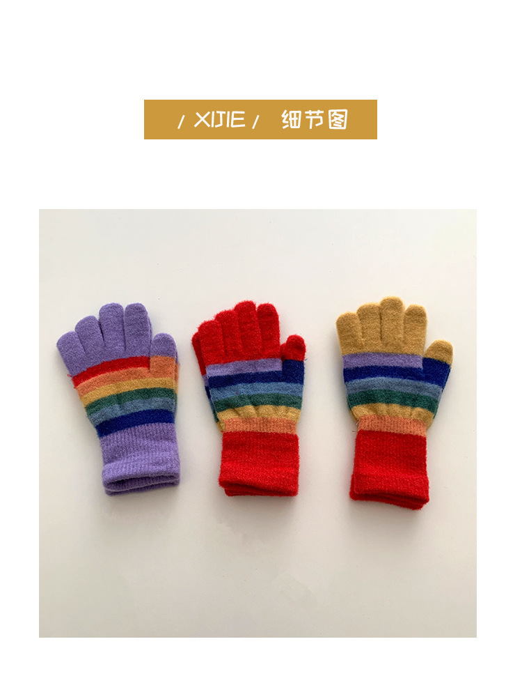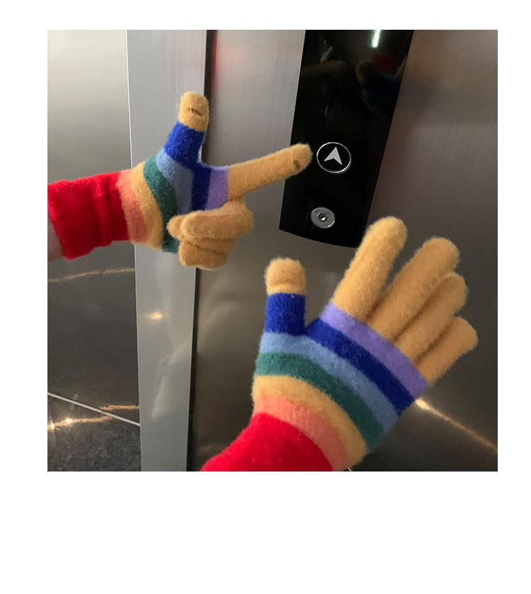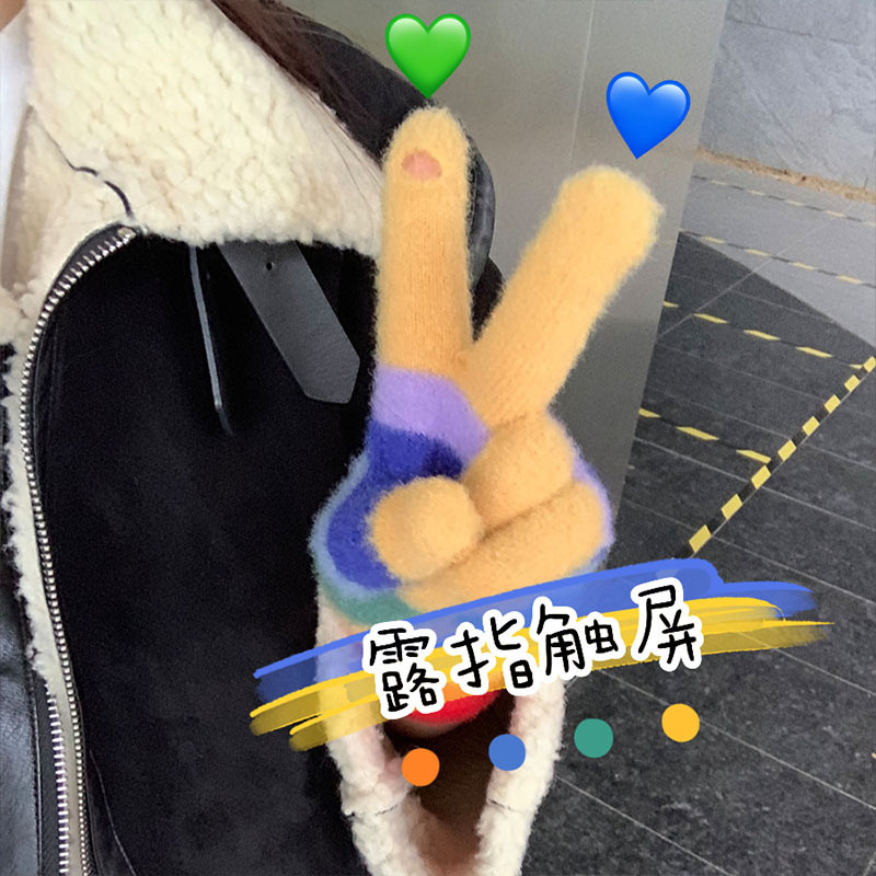 新款冬季彩色条纹手套女骑行滑雪保暖防风全包分指学生可触屏开车