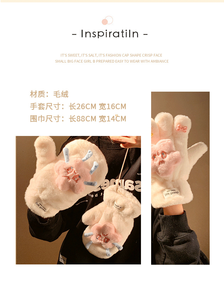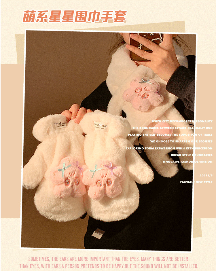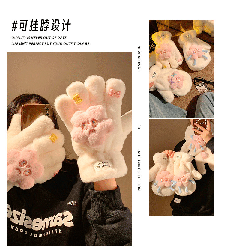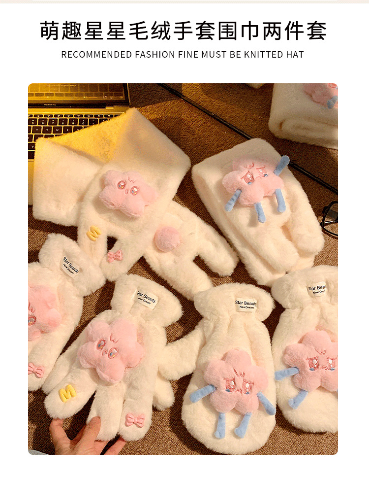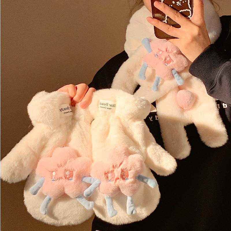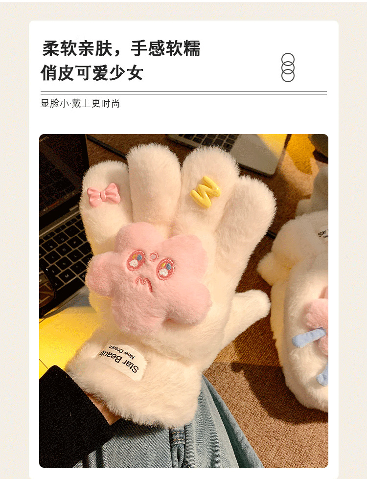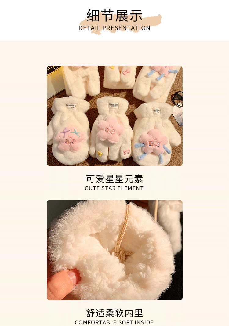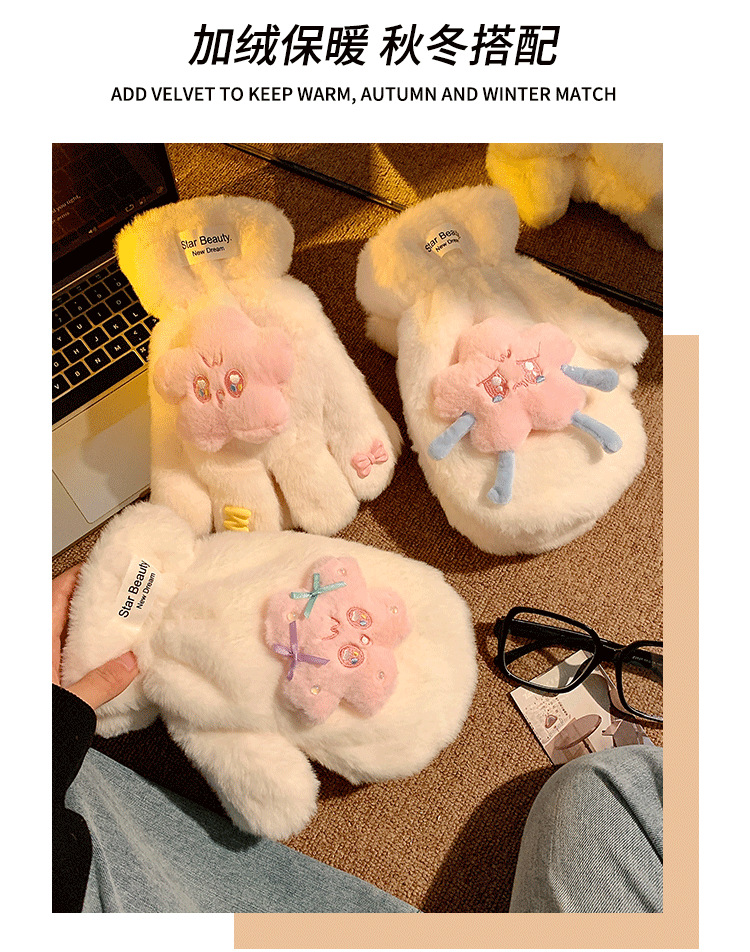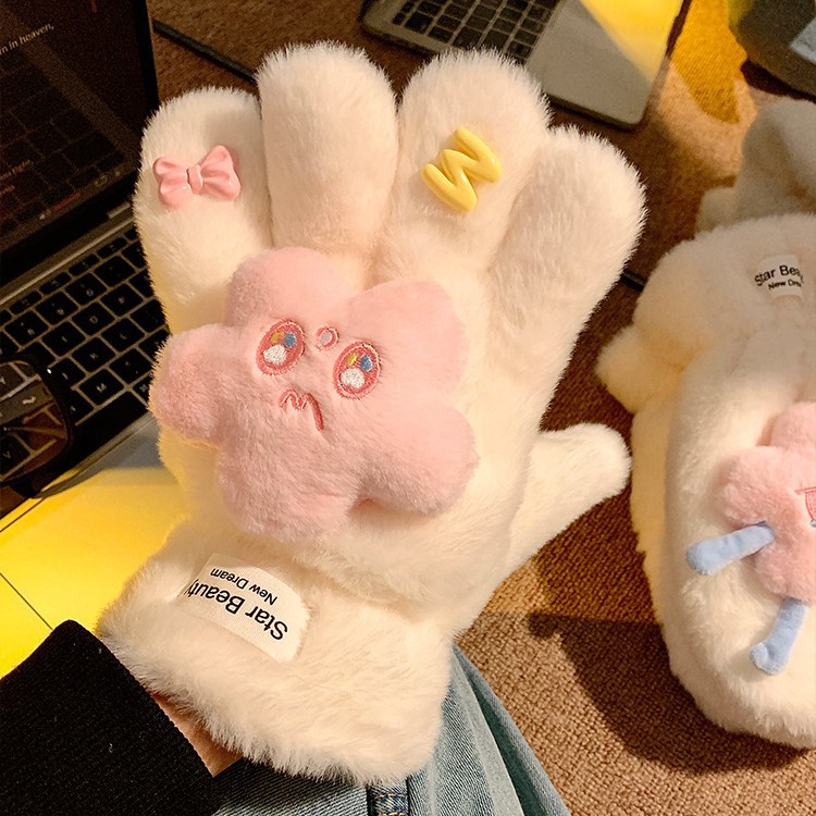 可爱星星毛绒分指手套女冬季加绒加厚保暖防寒毛茸茸骑行骑车学生