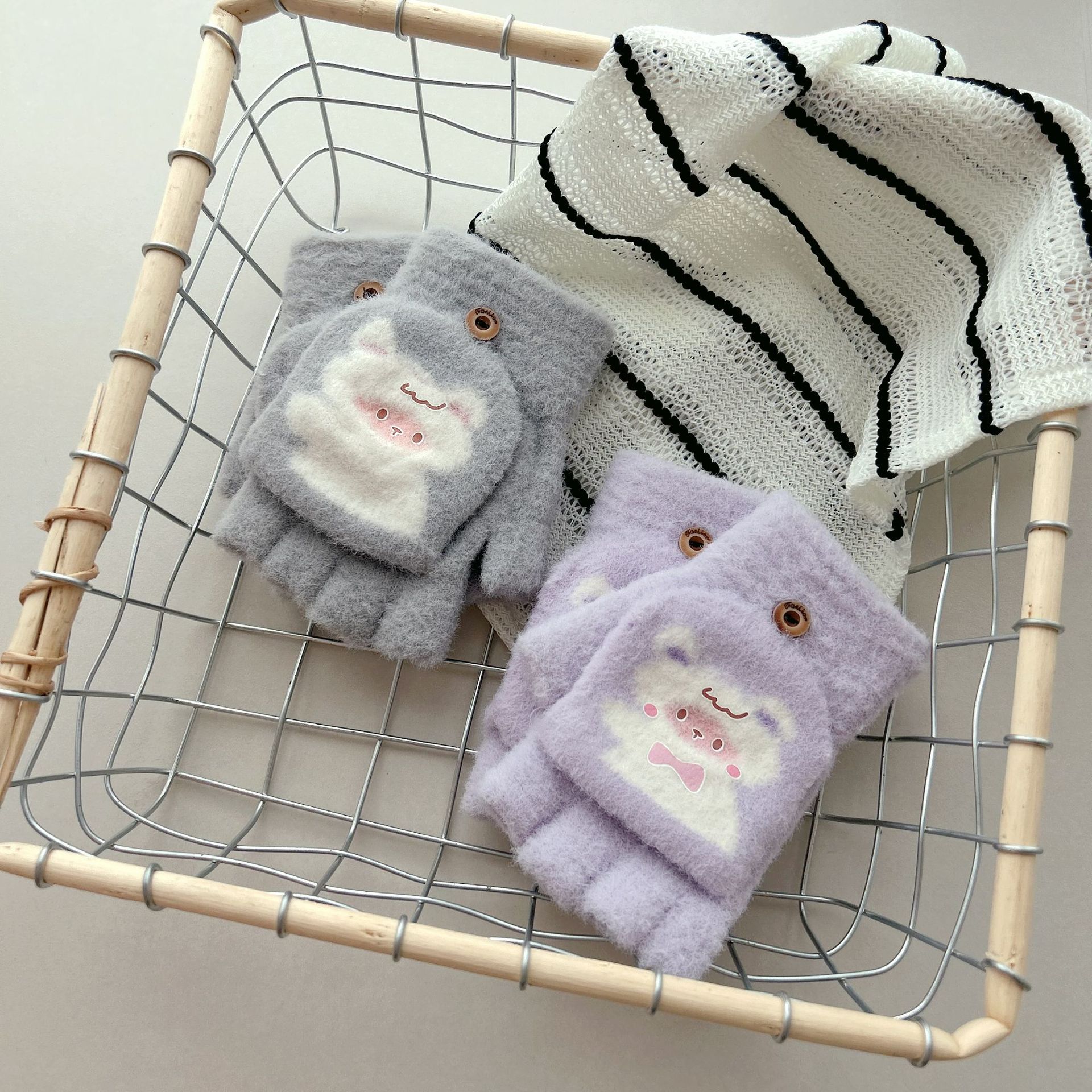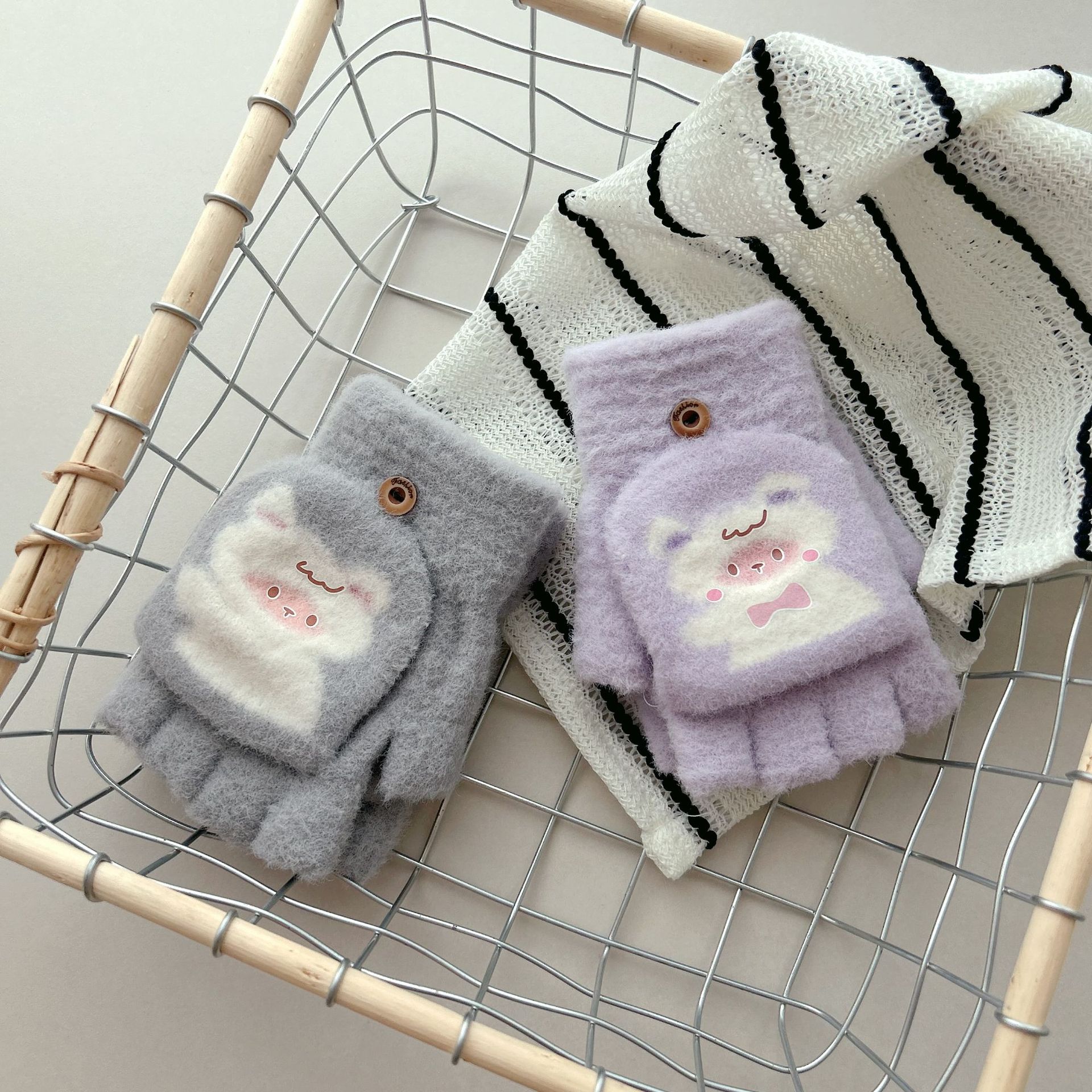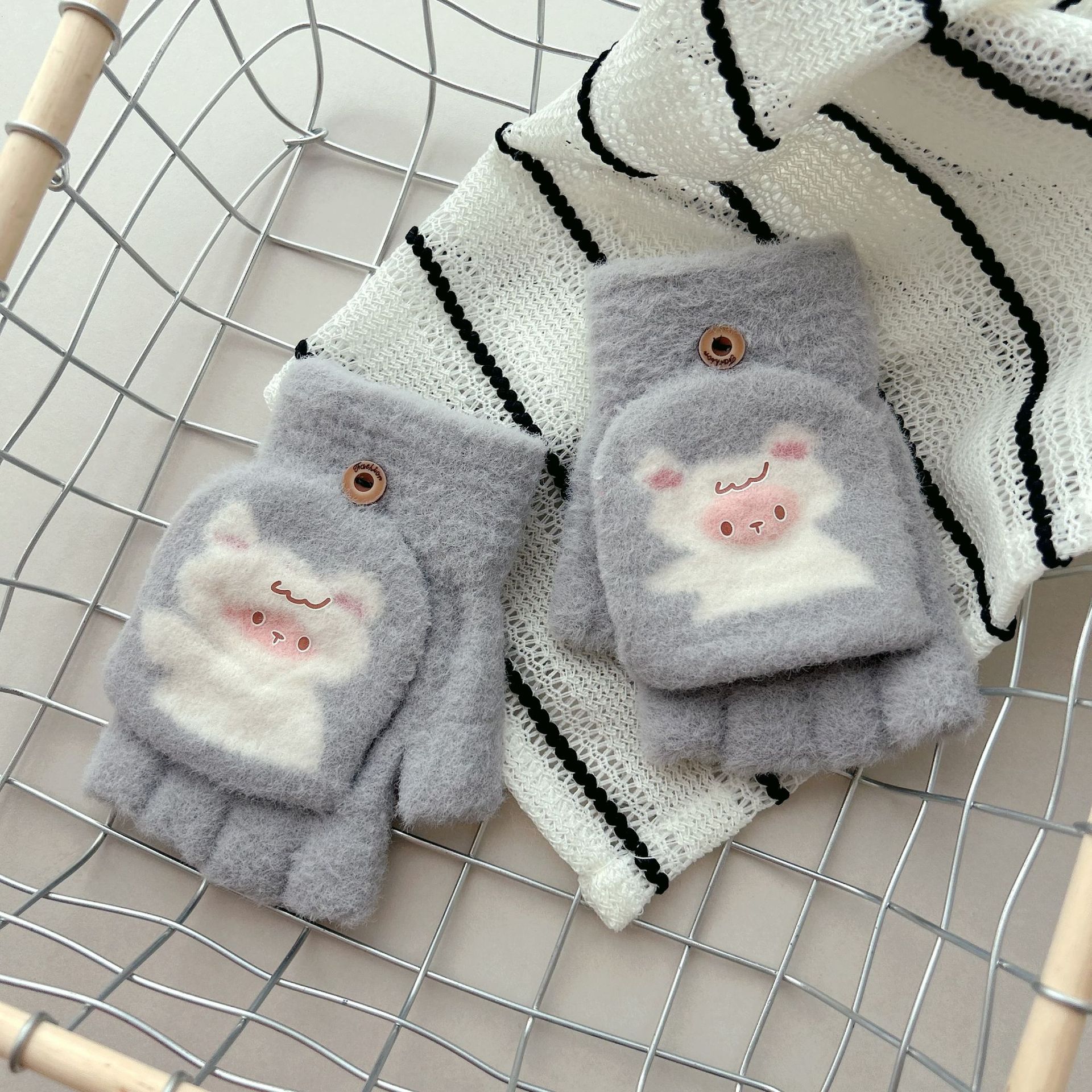 8-15岁儿童翻盖手套25秋冬新款防寒保暖加厚五指翻盖手套卡通可爱