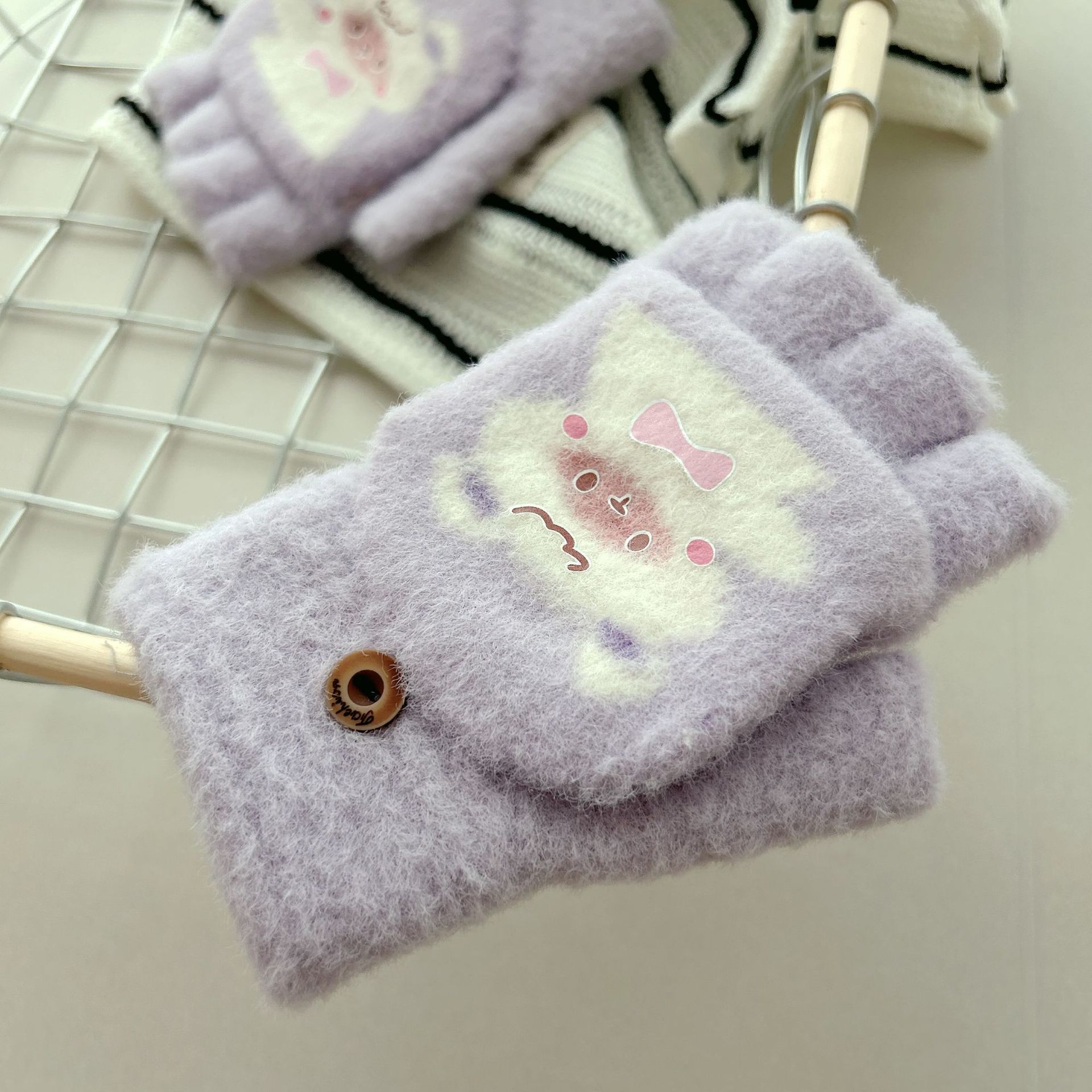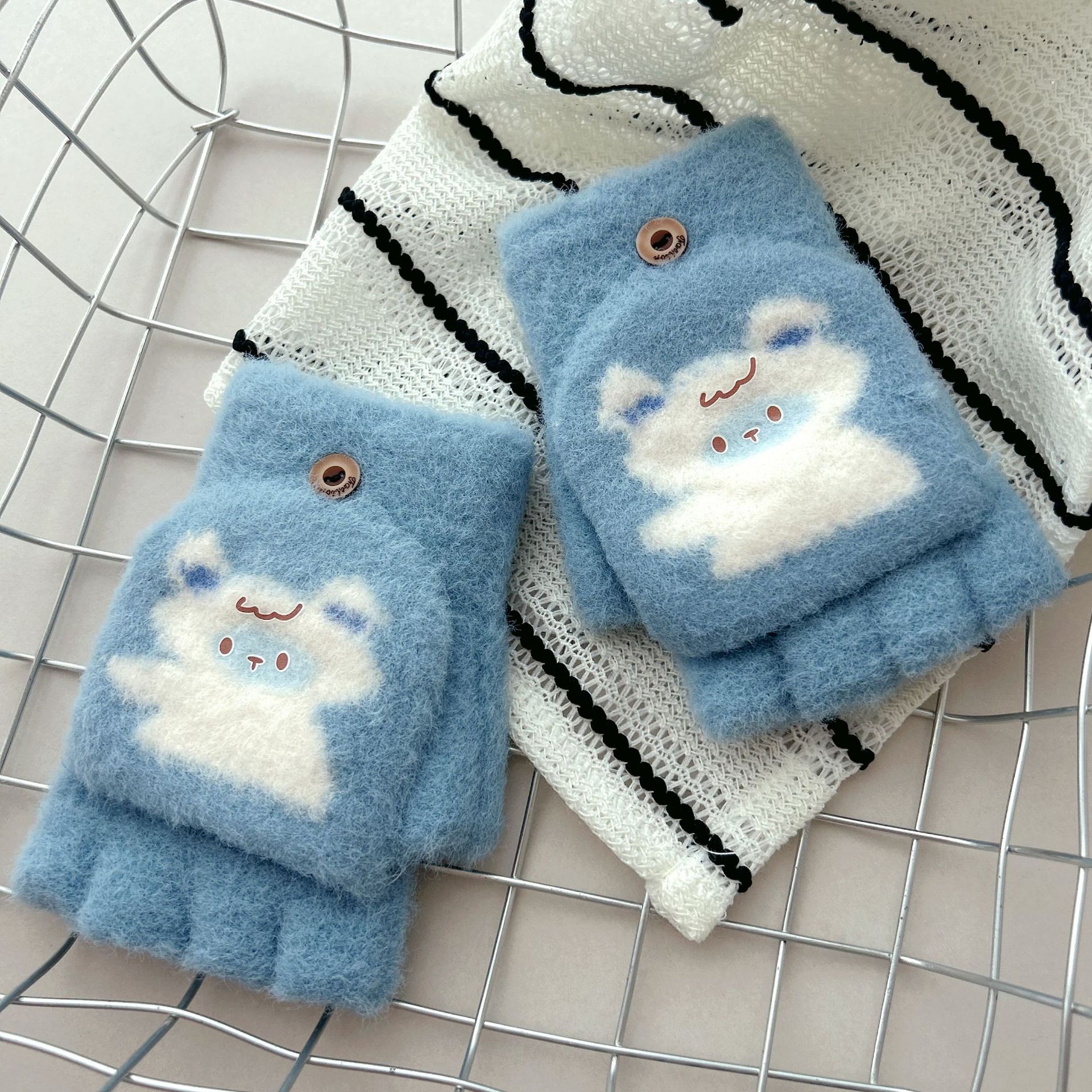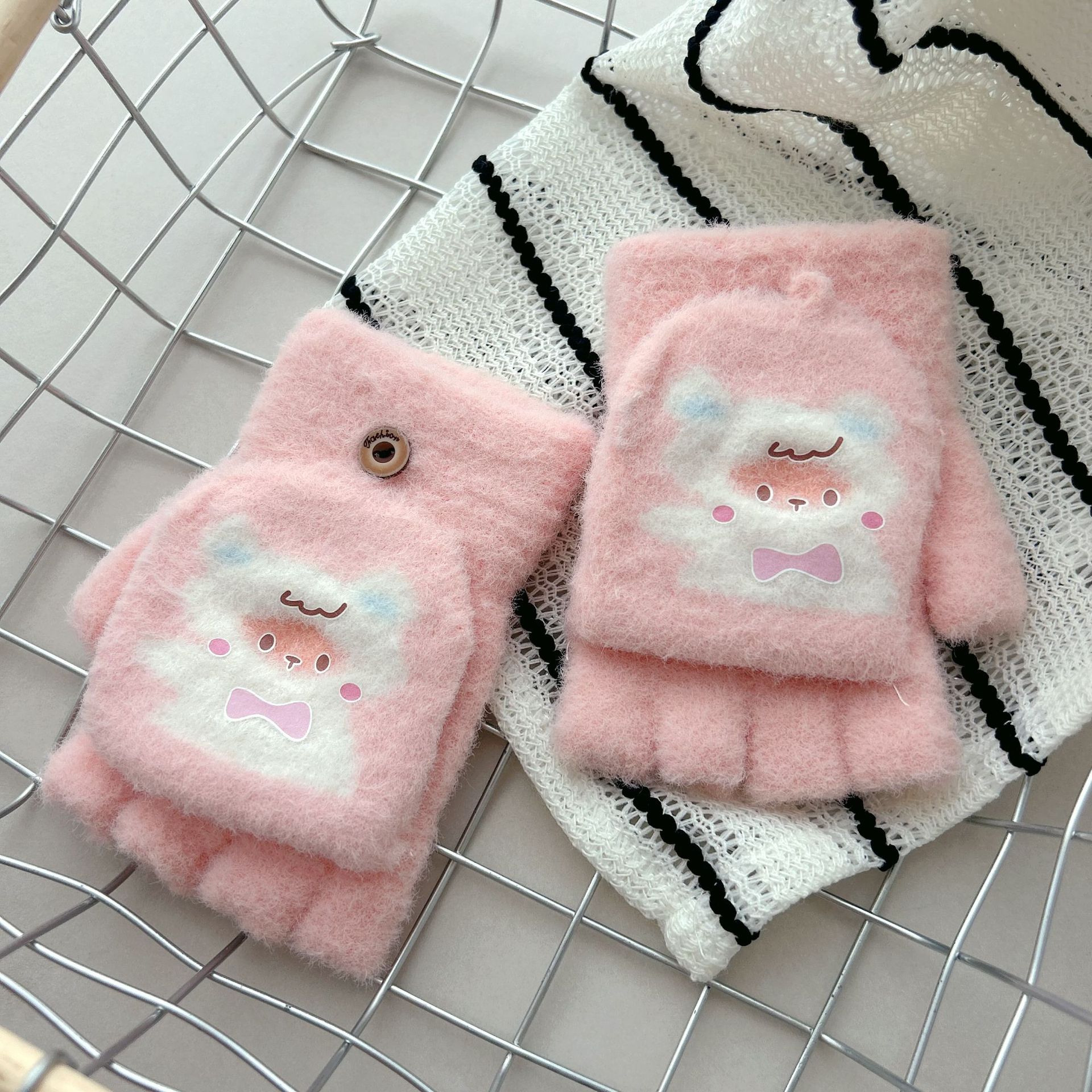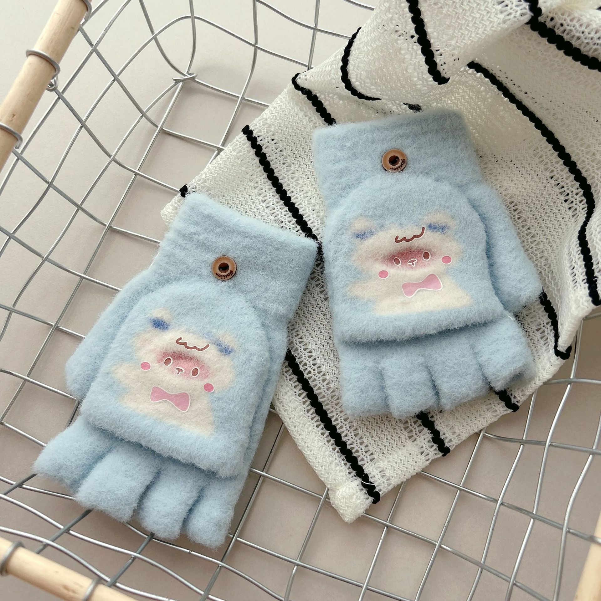 8-15岁儿童翻盖手套25秋冬新款防寒保暖加厚五指翻盖手套卡通可爱