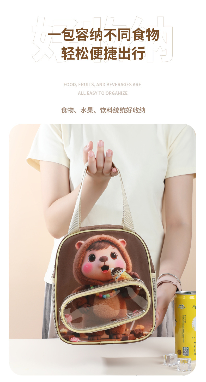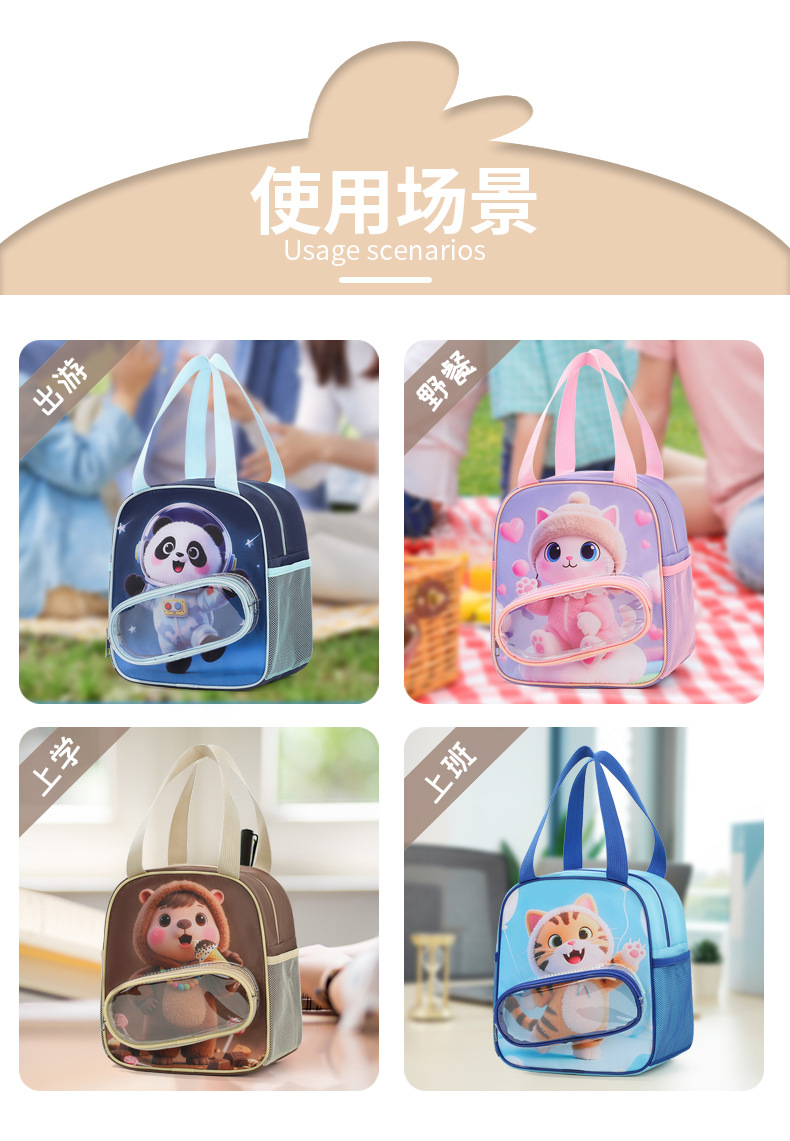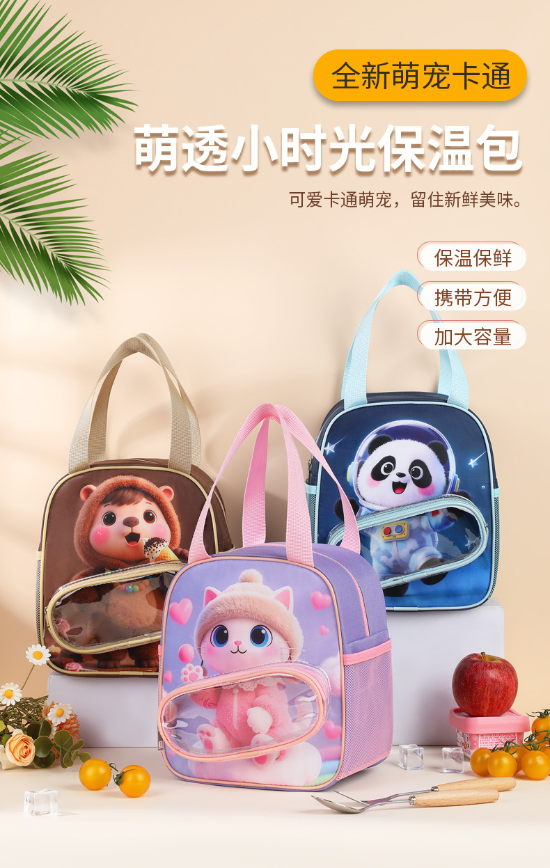 卡通趣味宠物便当包学生多功能便当包户外手提包上班族保温饭盒袋