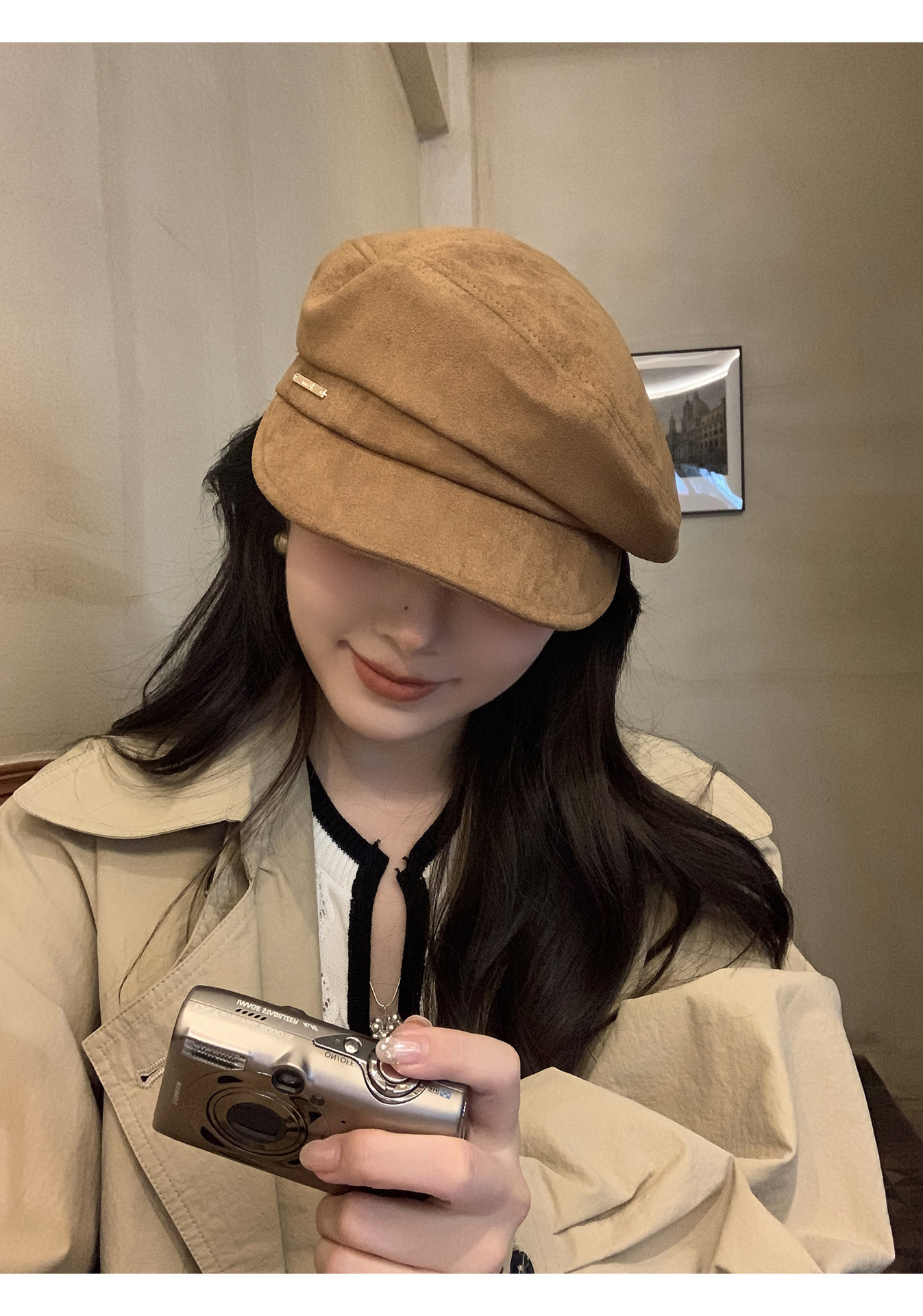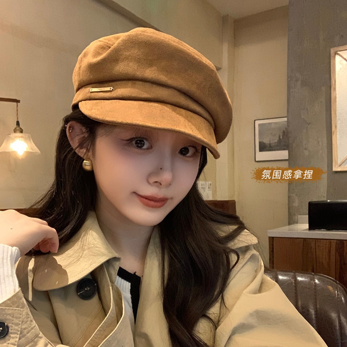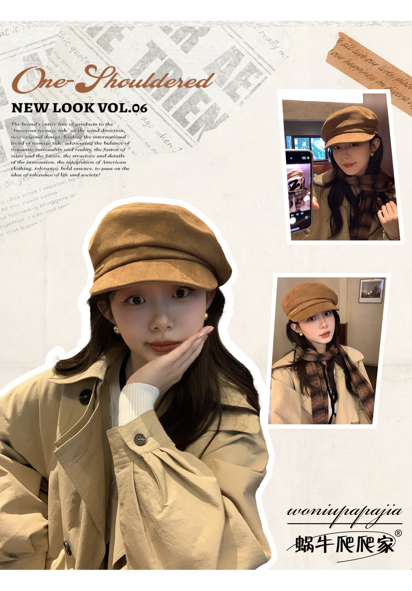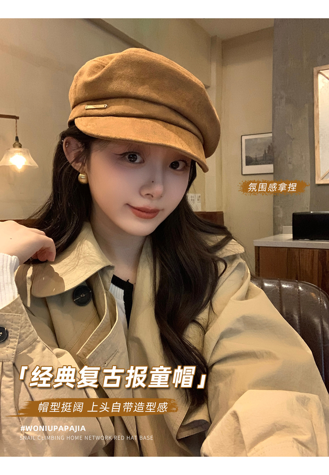 日系复古贝雷帽女春秋chic风~氛围感大头围显脸小画家帽报童帽潮