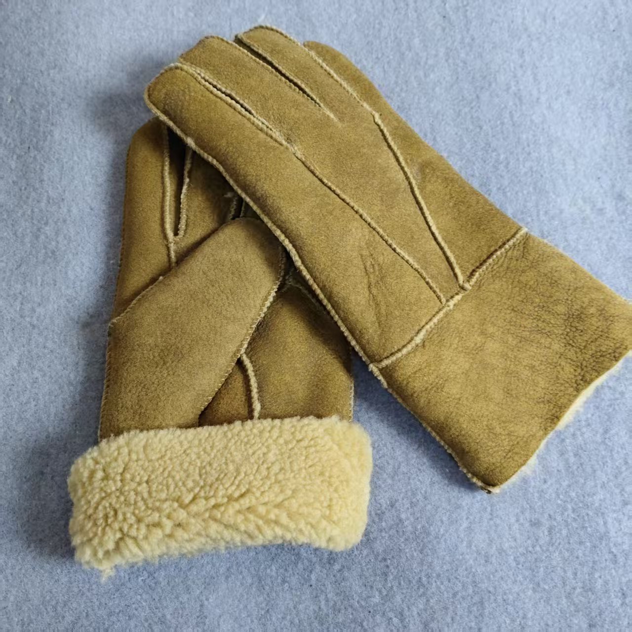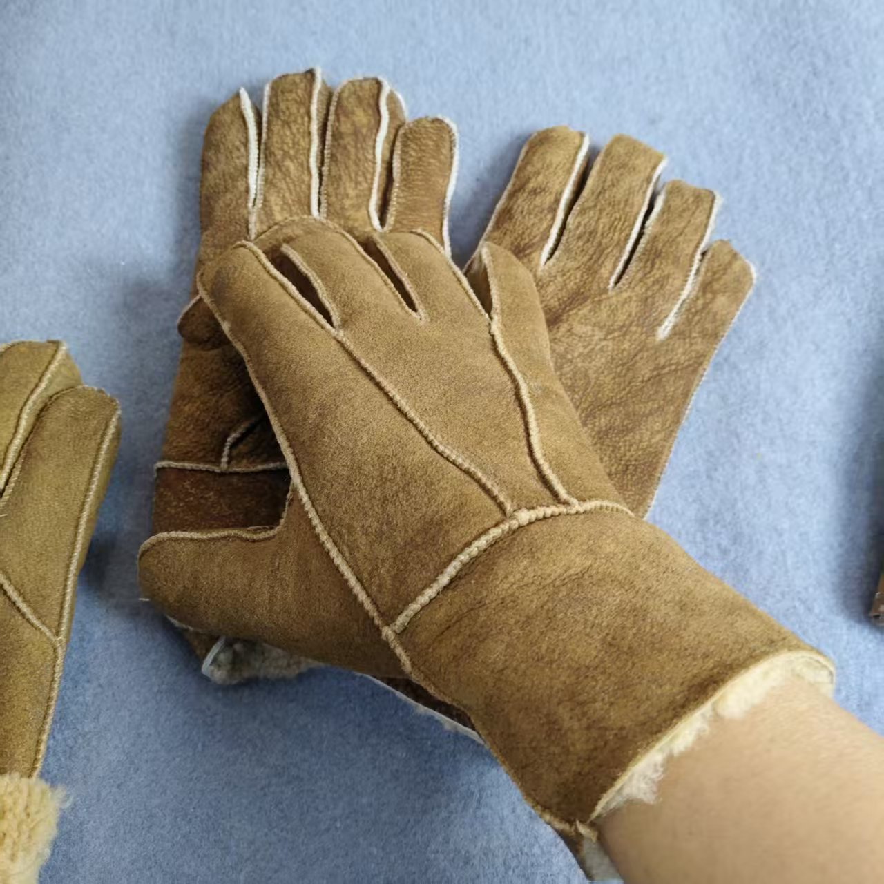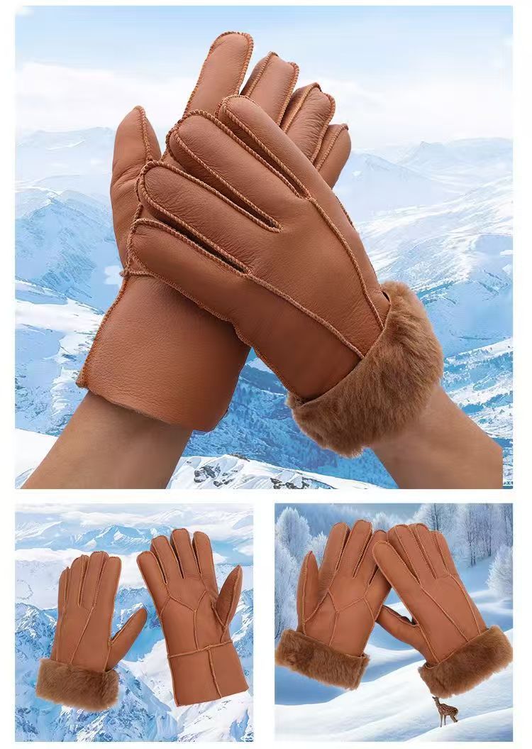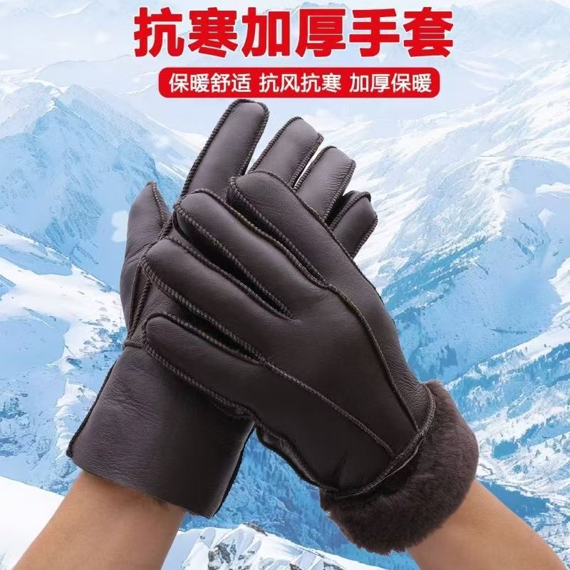 真羊皮毛一体手套磨砂皮面户外骑车手套男士加厚冬季分指手套
