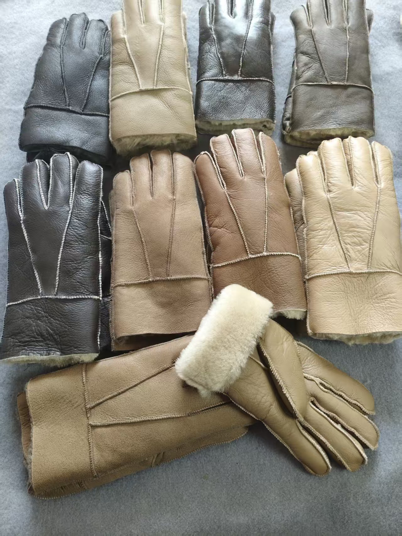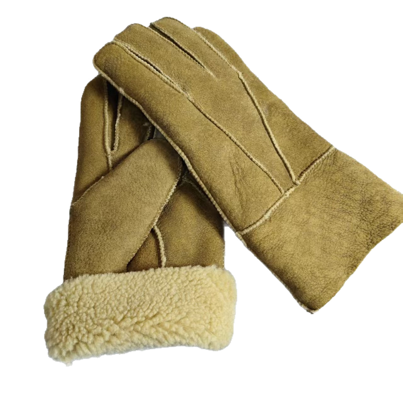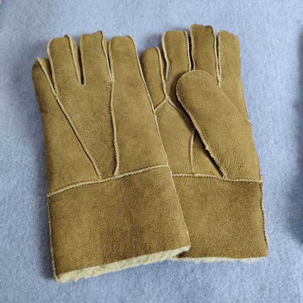 真羊皮毛一体手套磨砂皮面户外骑车手套男士加厚冬季分指手套