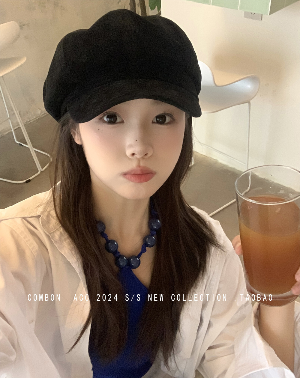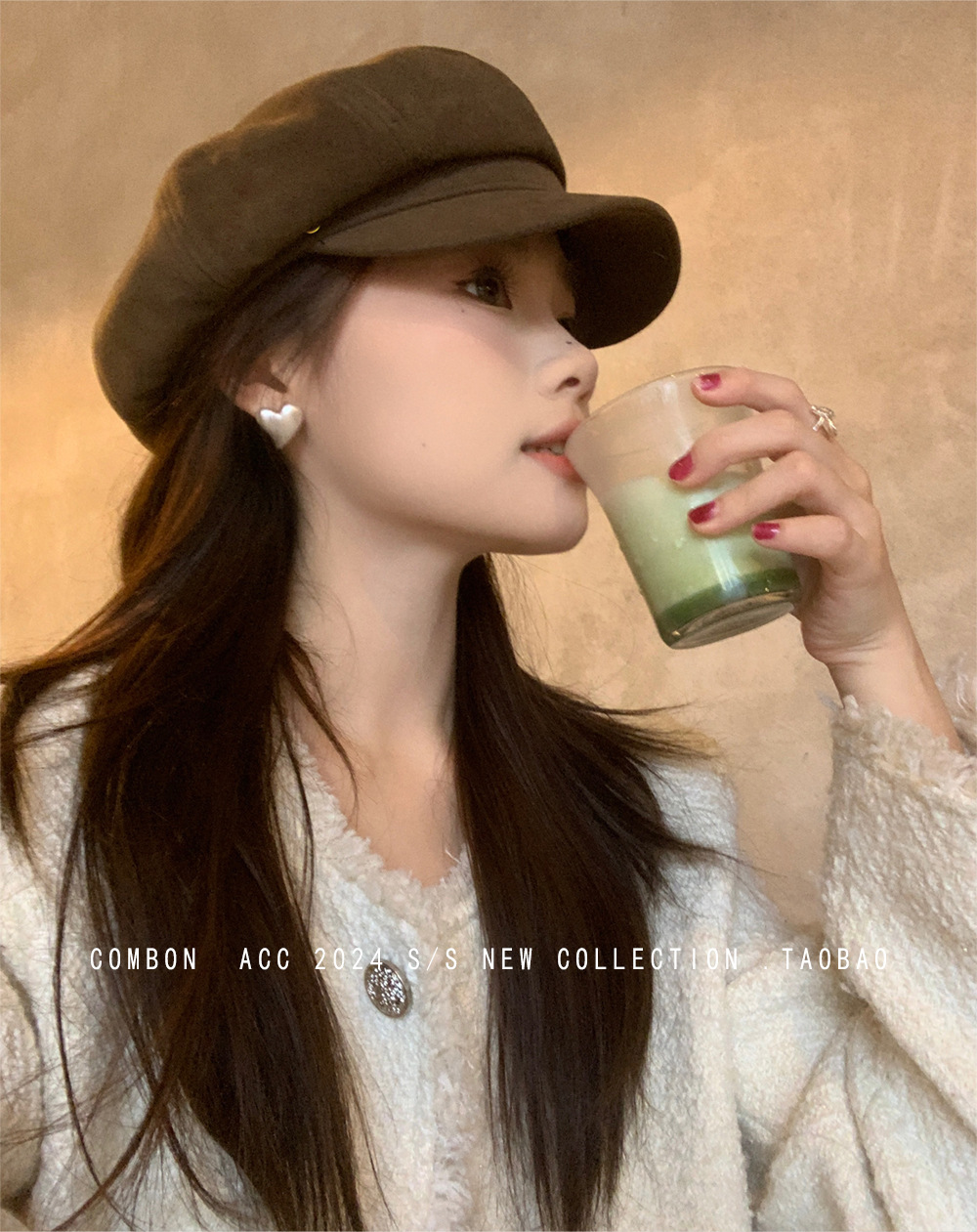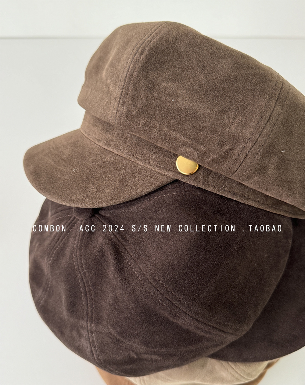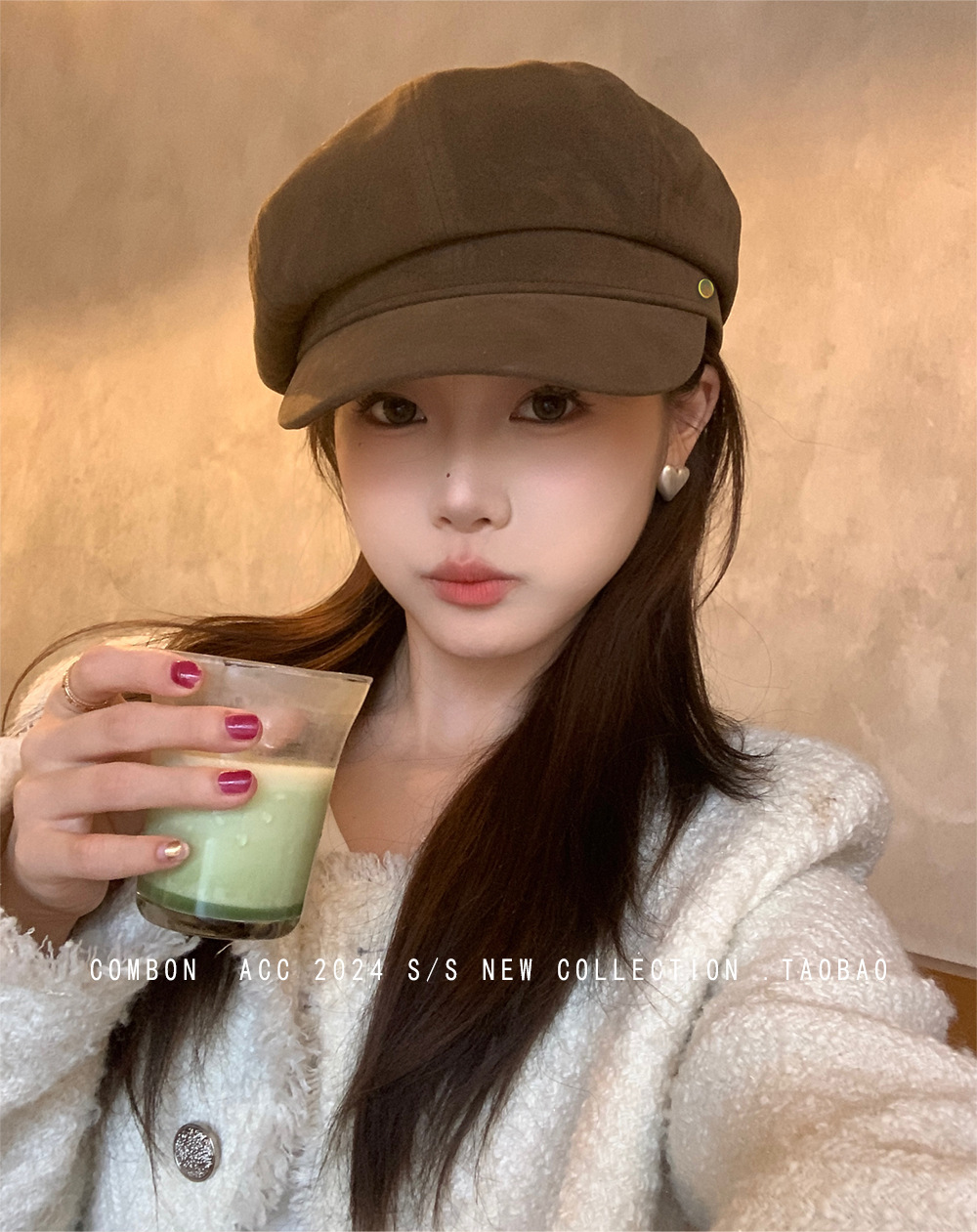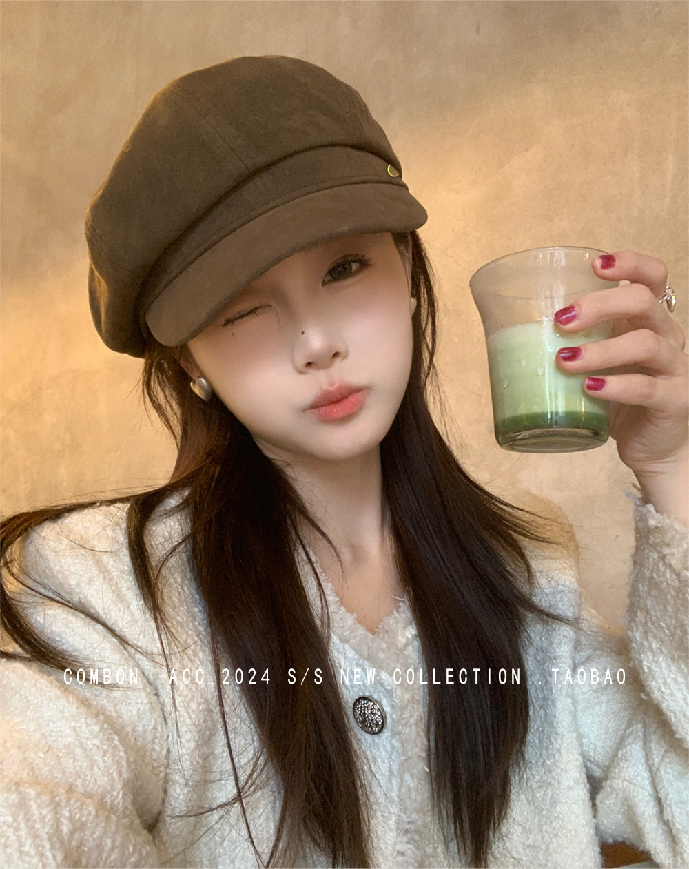 贝雷帽子女秋季日系棕色皮质文艺画家帽复古报童帽显瘦英伦八角帽