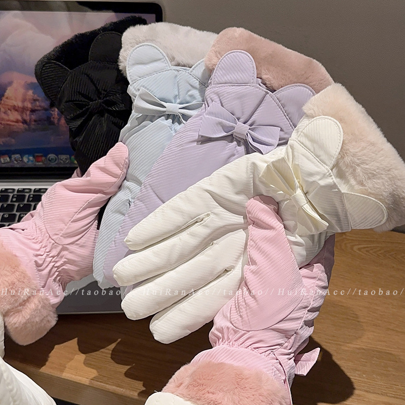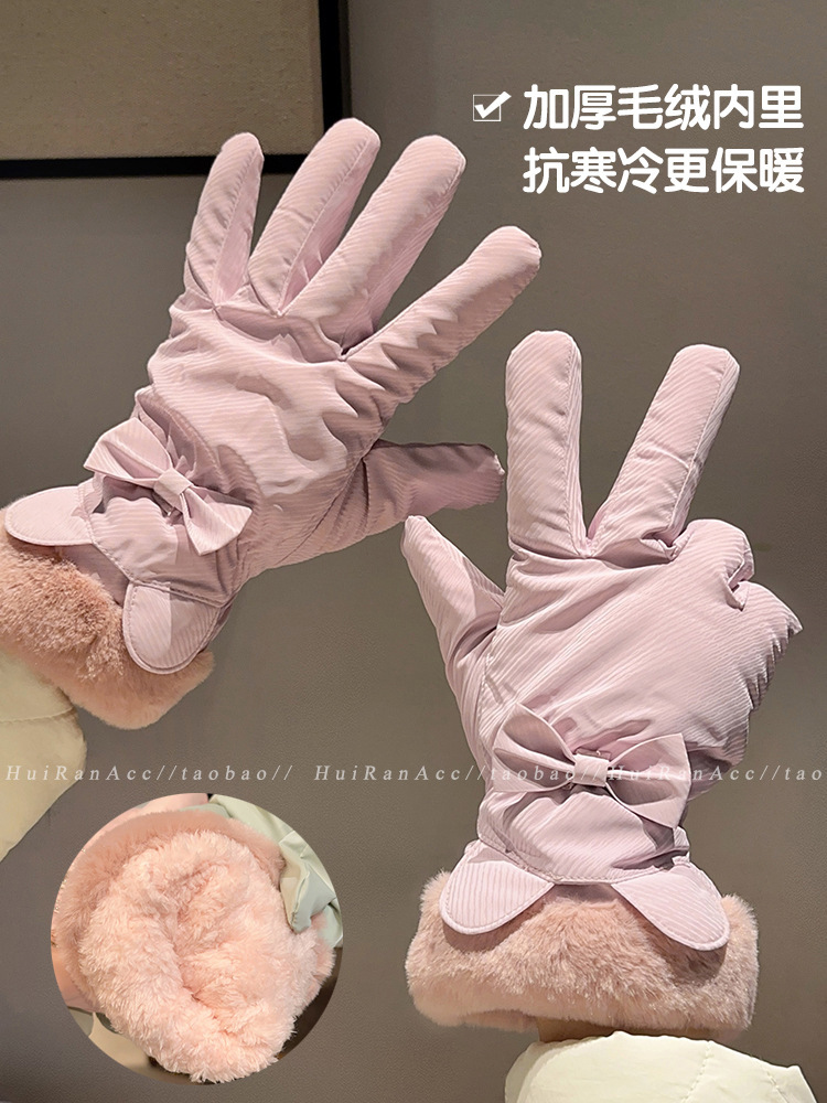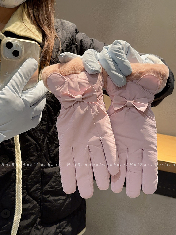 冬季骑行手套女款可爱防水可触屏加绒加厚防风冬天保暖防寒电动车