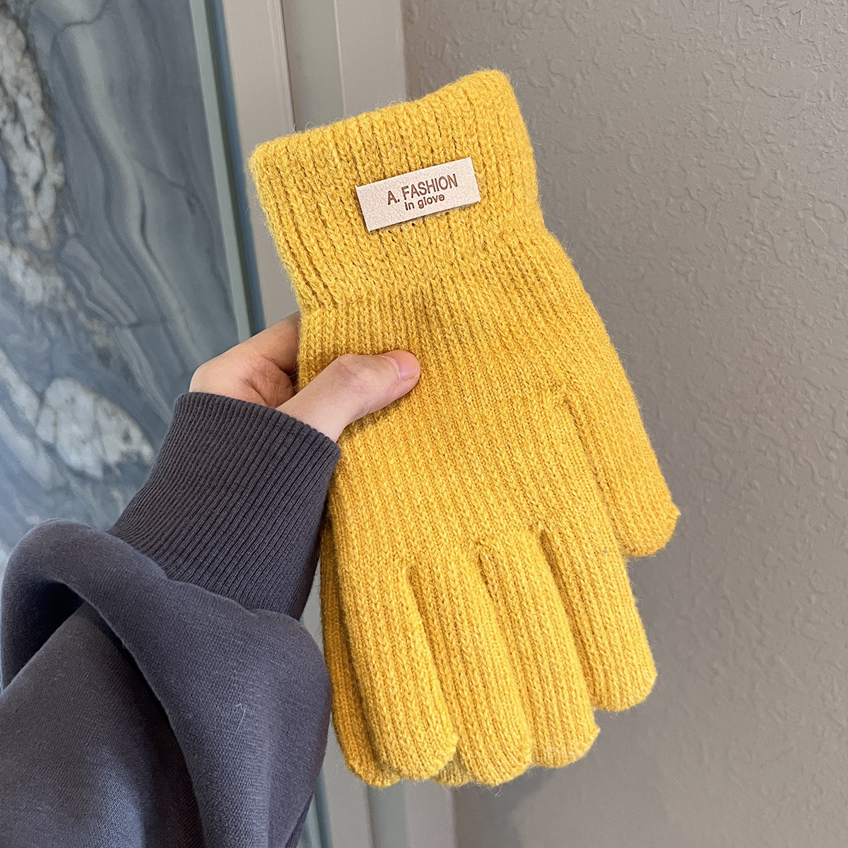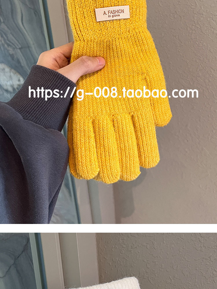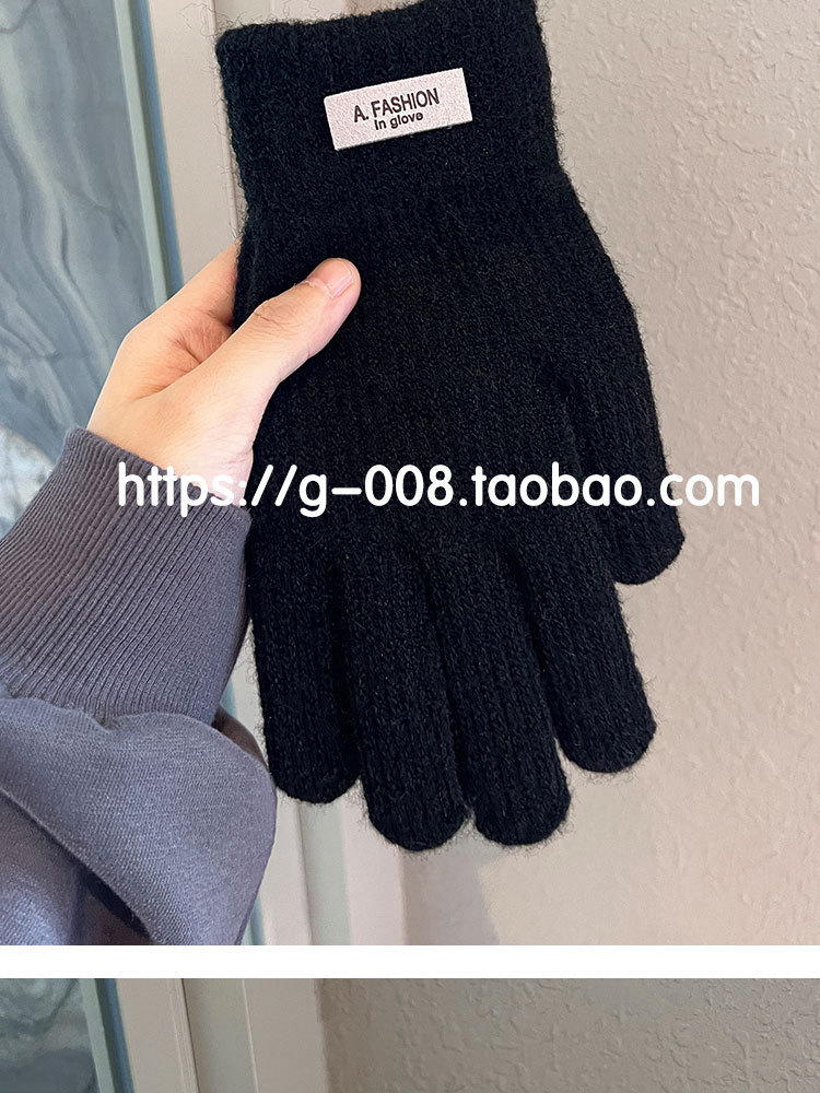 纯色针织毛线手套冬季男女情侣款加厚保暖防寒学生户外骑行可触屏