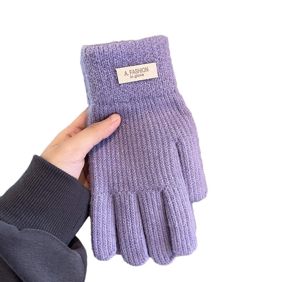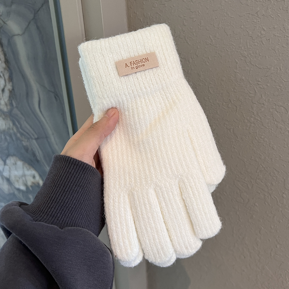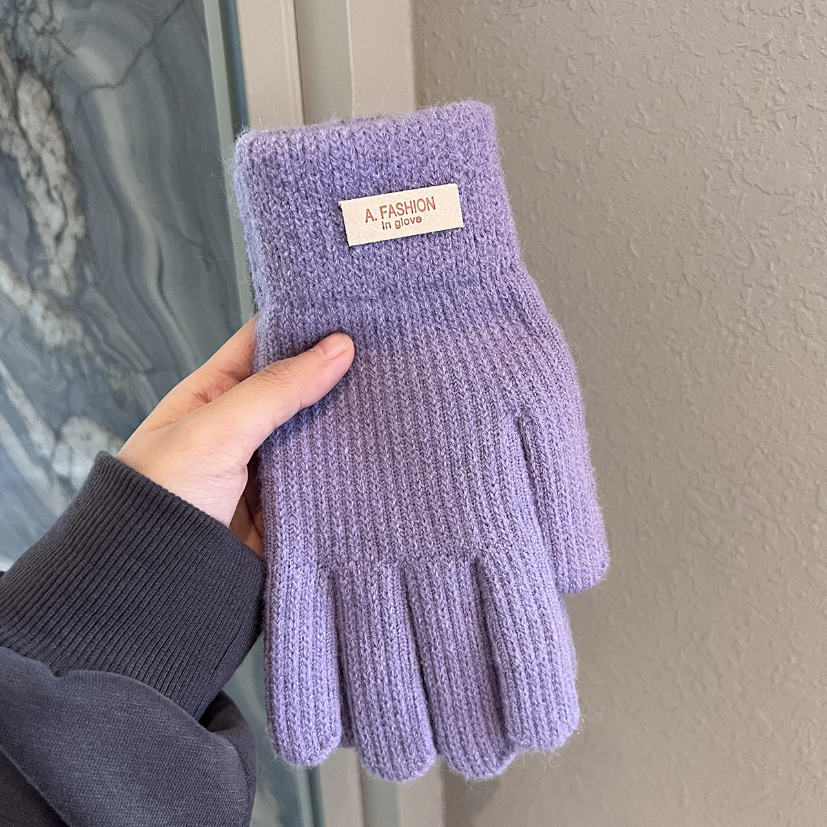 纯色针织毛线手套冬季男女情侣款加厚保暖防寒学生户外骑行可触屏