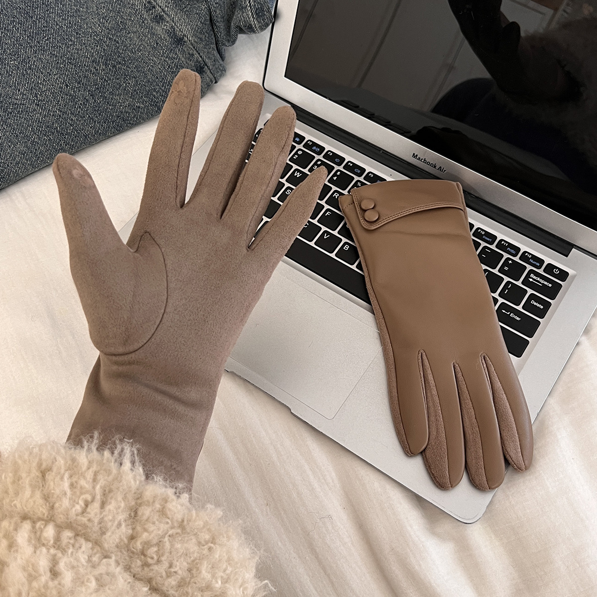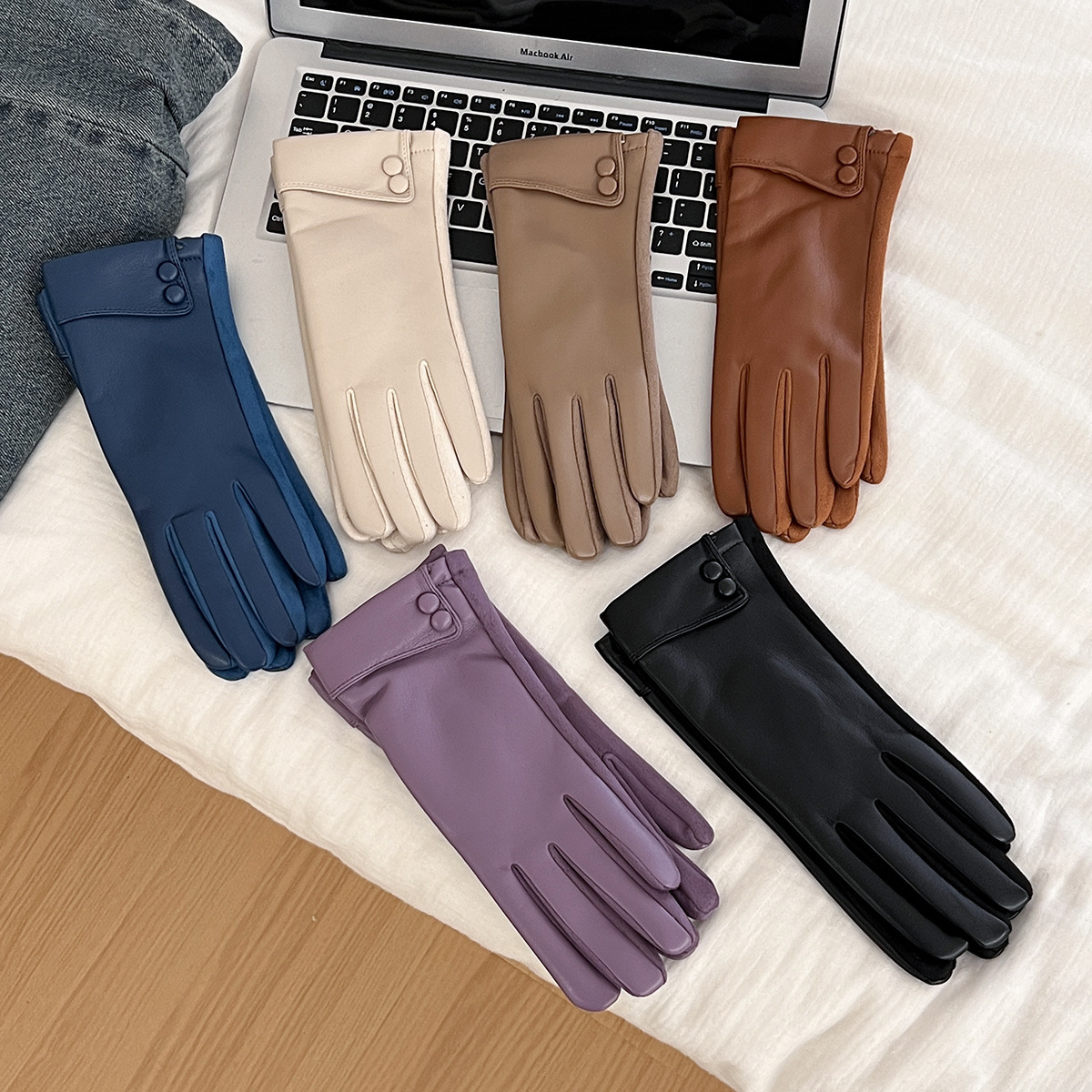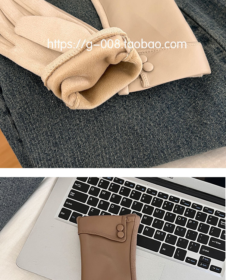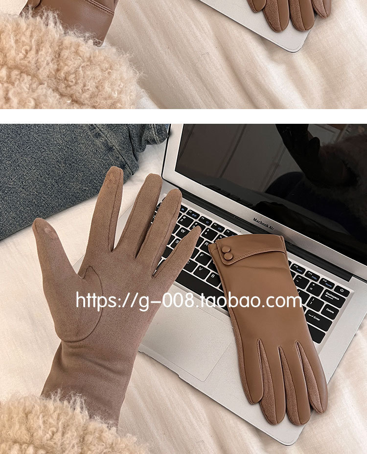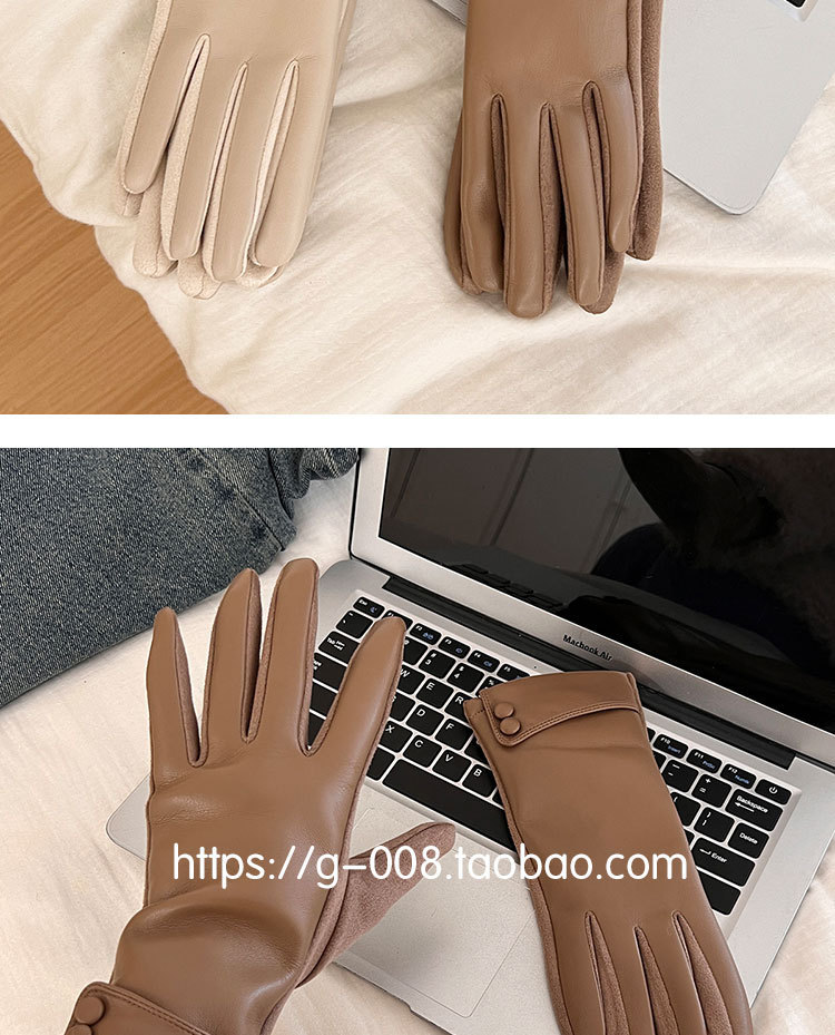 2025新款皮手套冬季女加绒加厚保暖防风防寒户外骑行开车五指触屏