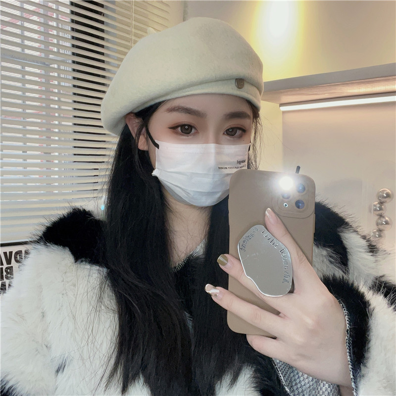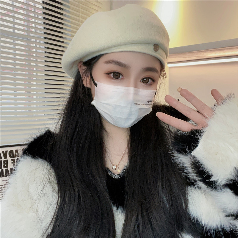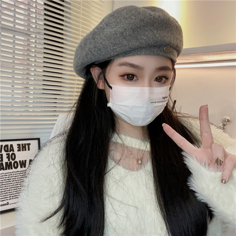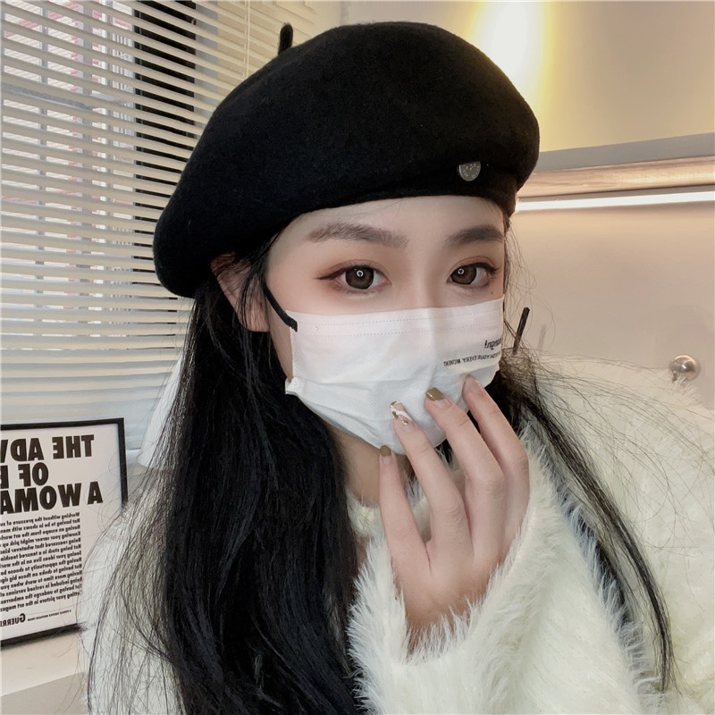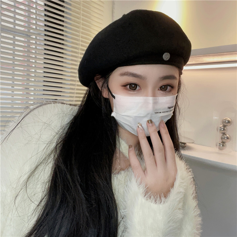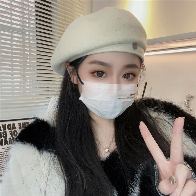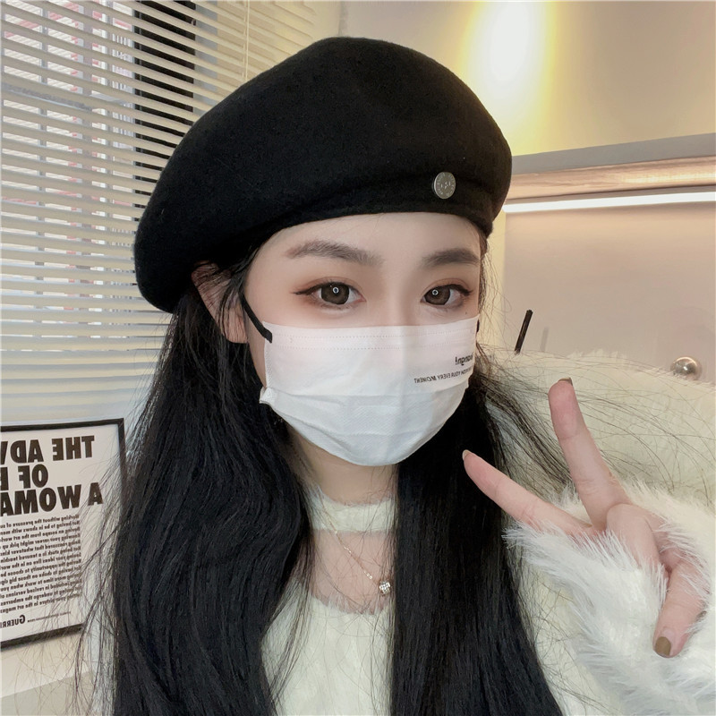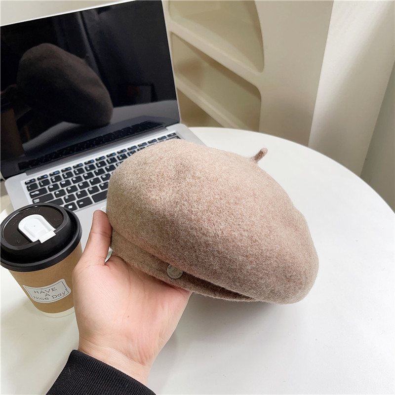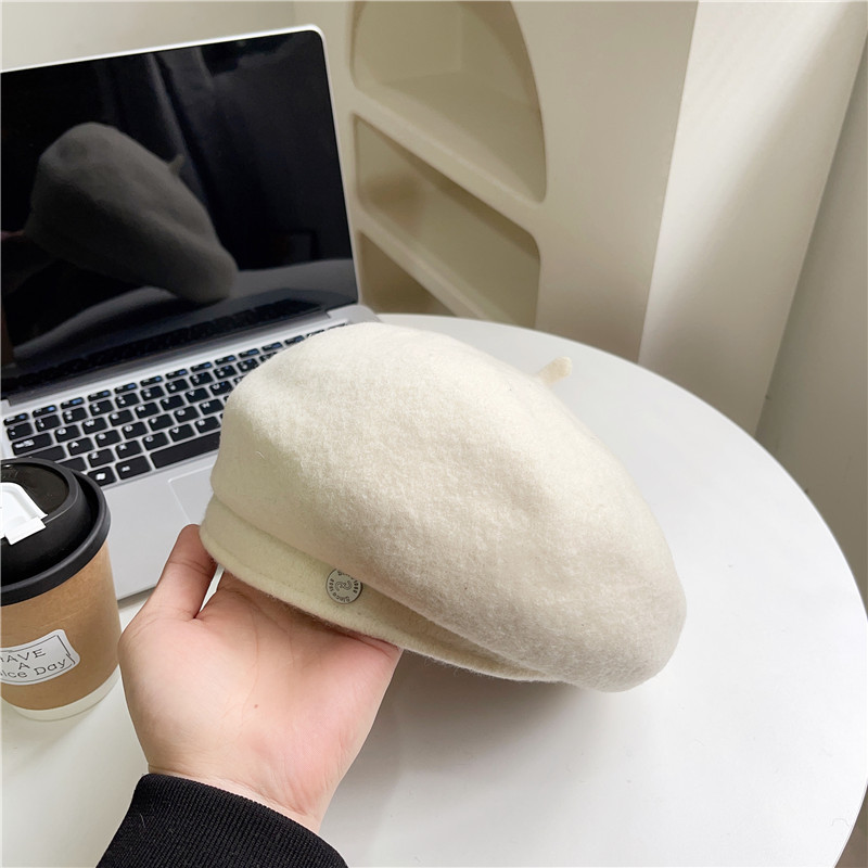 羊毛贝雷帽女网红时髦小圆标气质显脸小秋冬高品质优雅保暖画家帽