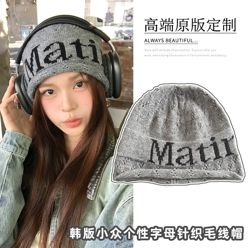 韩版毛线帽街头冷帽小众个性潮流matin字母帽子男女ins潮流针织帽