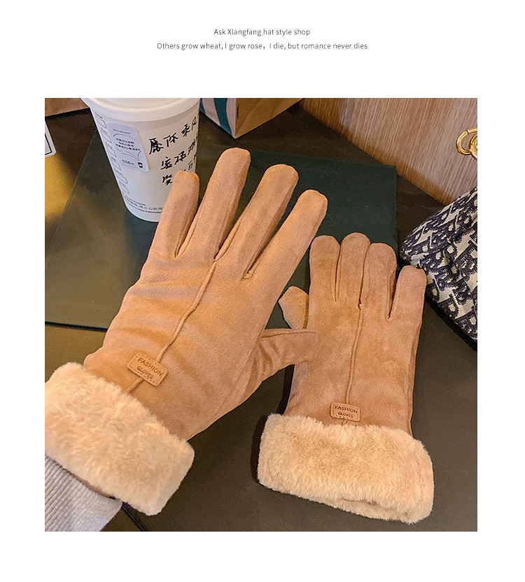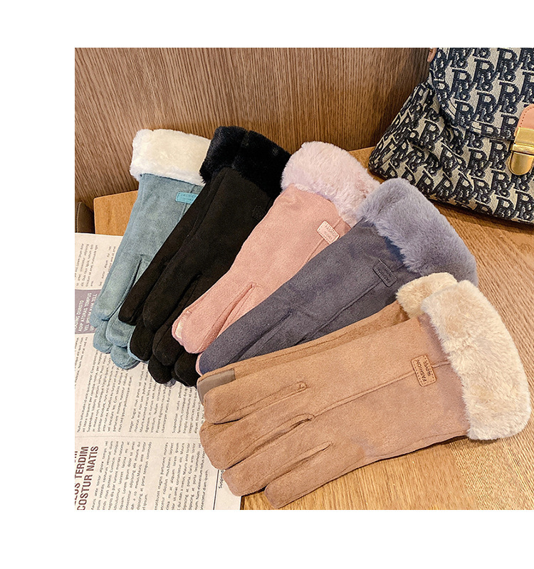 手套女冬天骑行骑车加绒加厚保暖防寒防风学生冬季麂皮绒五指触屏