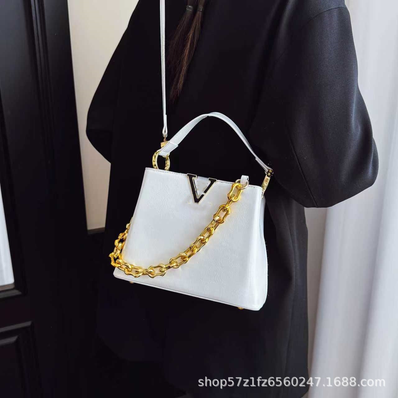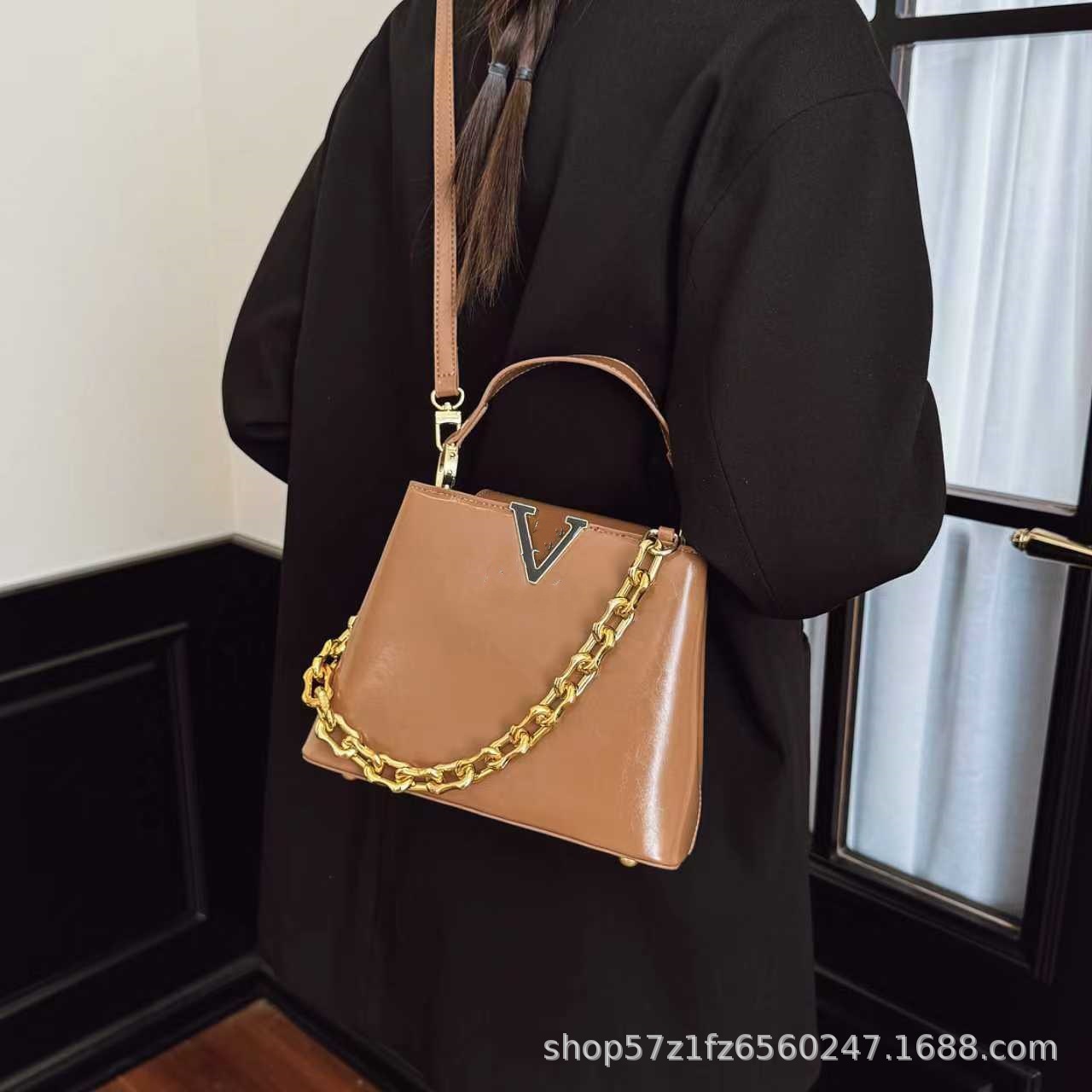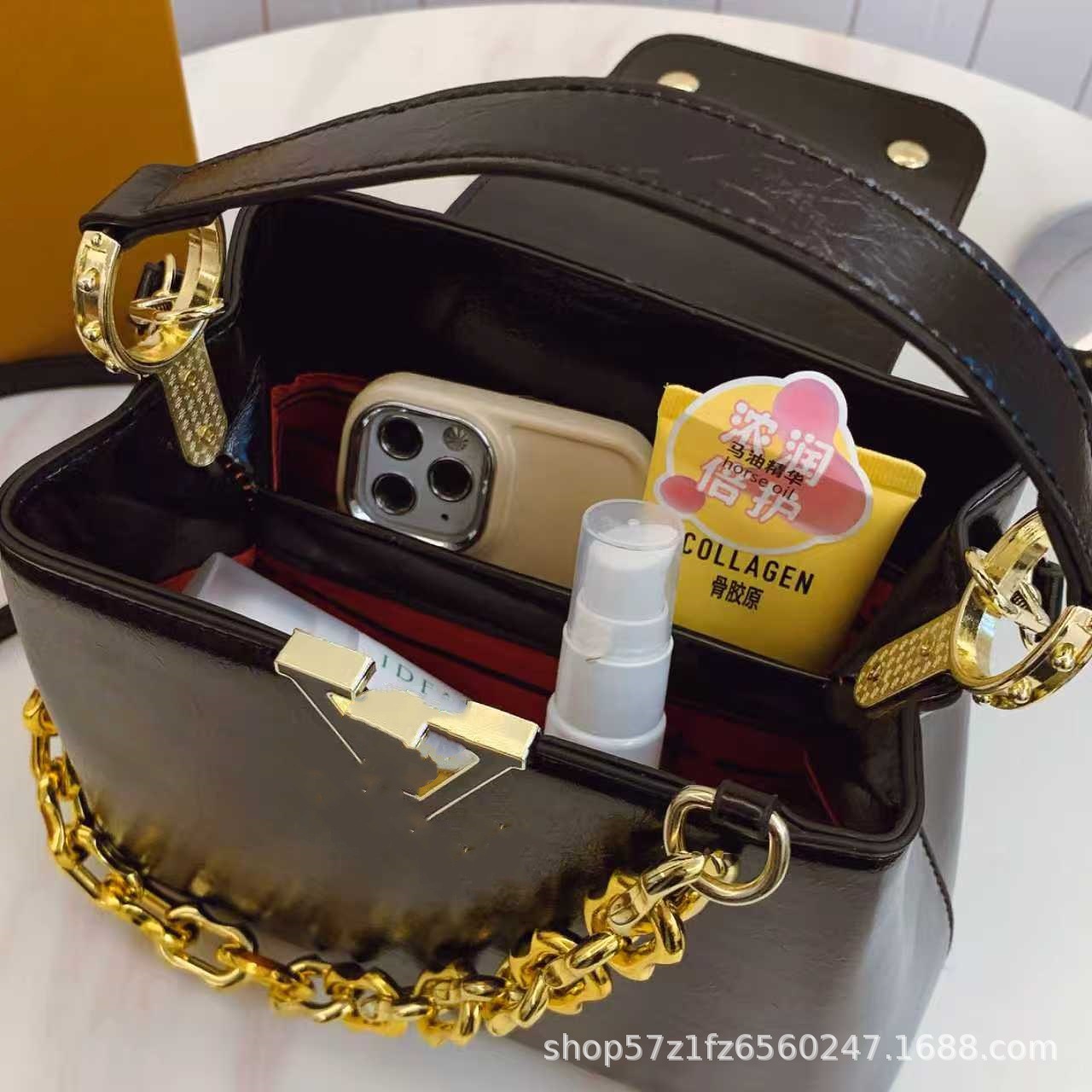 跨境25新款女包链条肩带单肩斜挎包荔枝纹手提包杀手包贵妇包