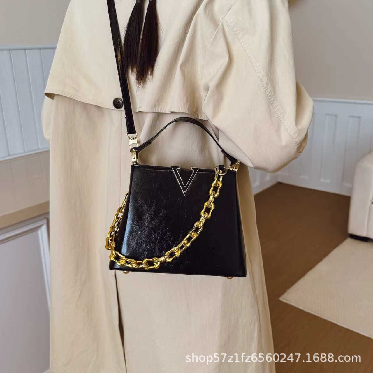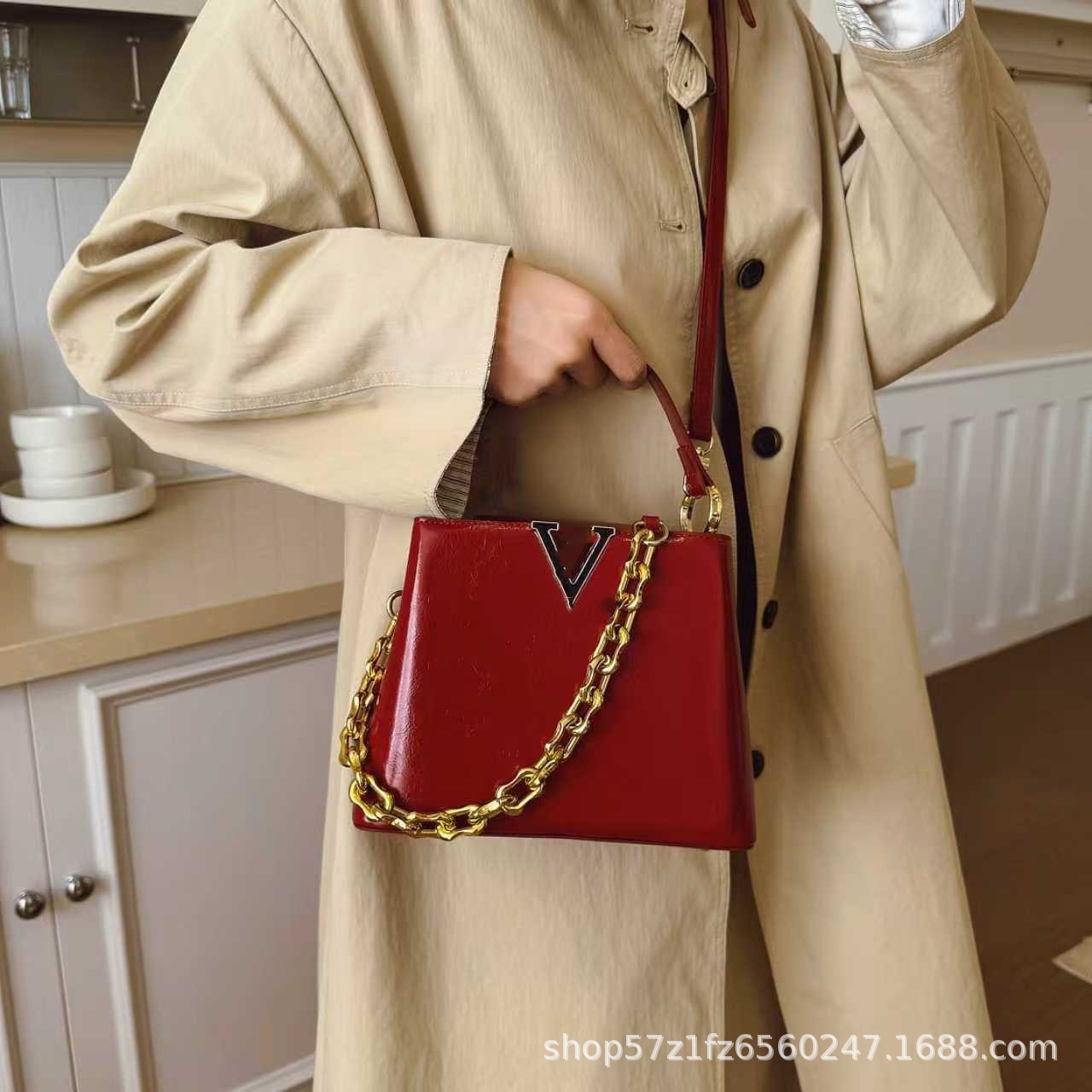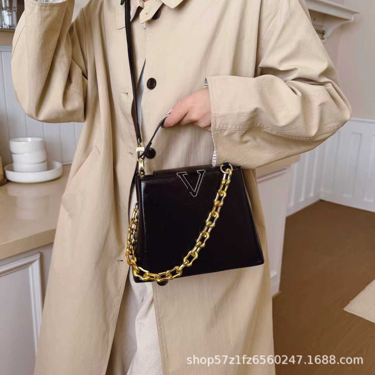 跨境25新款女包链条肩带单肩斜挎包荔枝纹手提包杀手包贵妇包