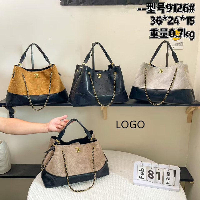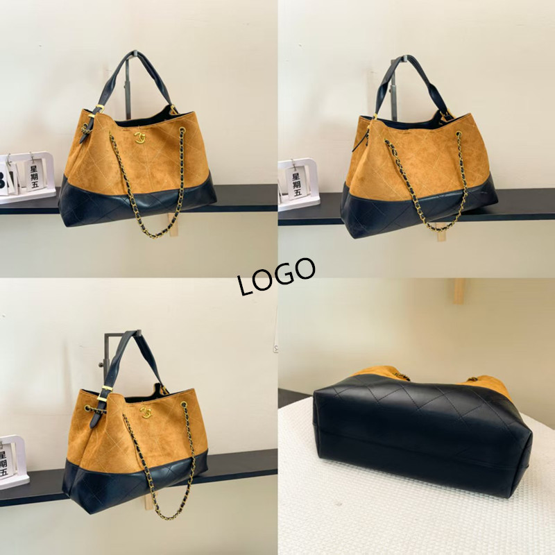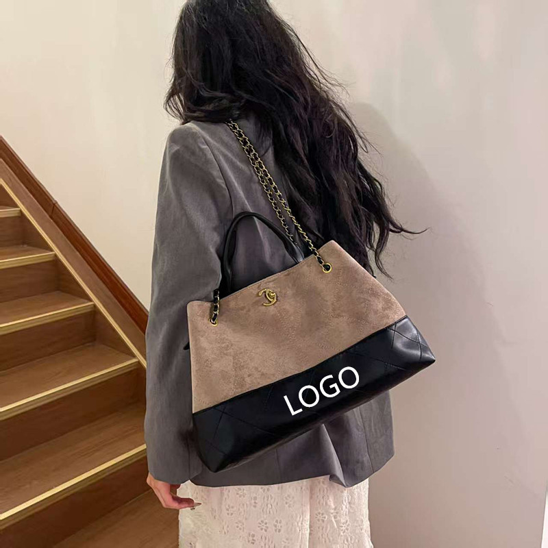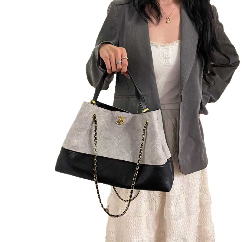 外贸25款小香A麂皮拼色托特包大容量链条腋下包单肩斜挎包 代批发