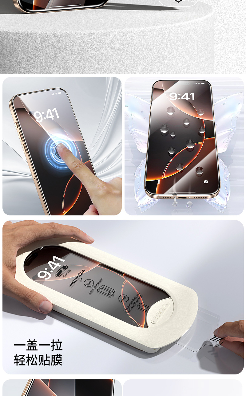工厂批发无尘仓高清钢化膜适用16promax苹果15iPhone秒贴手机贴膜