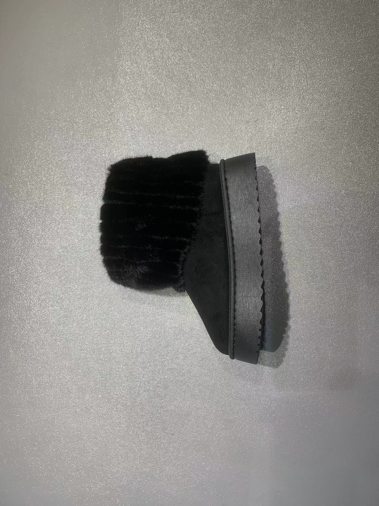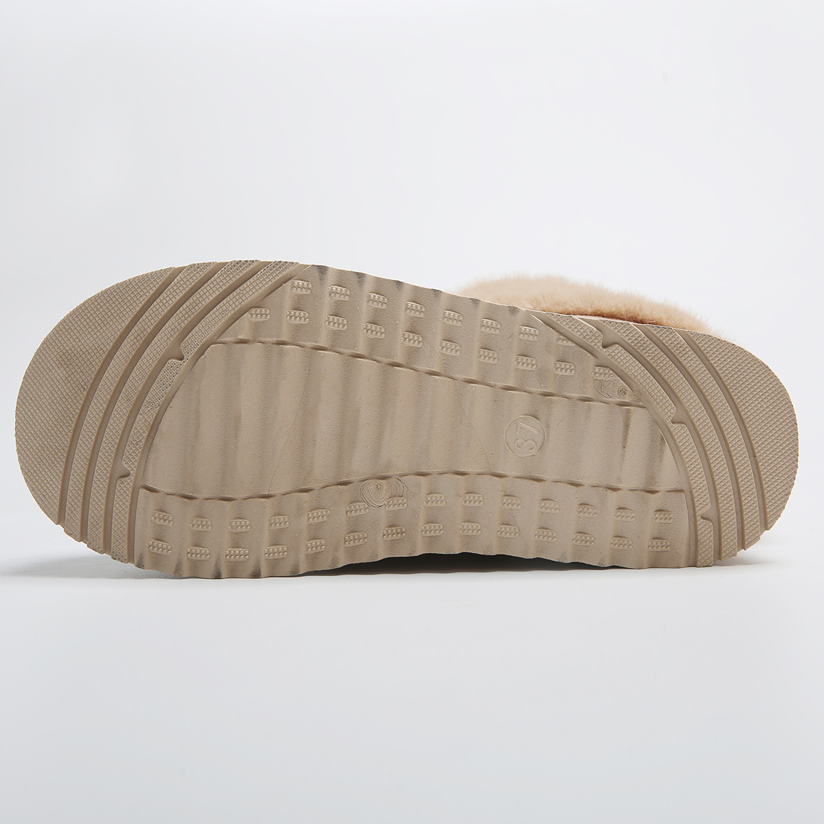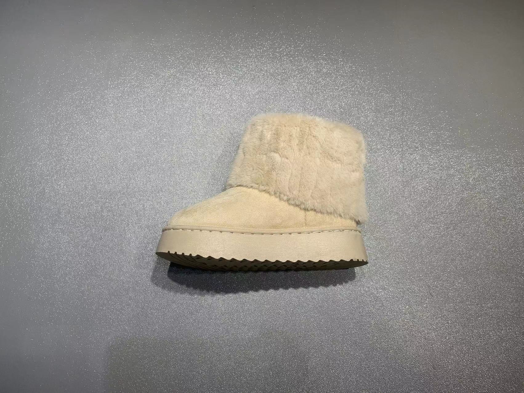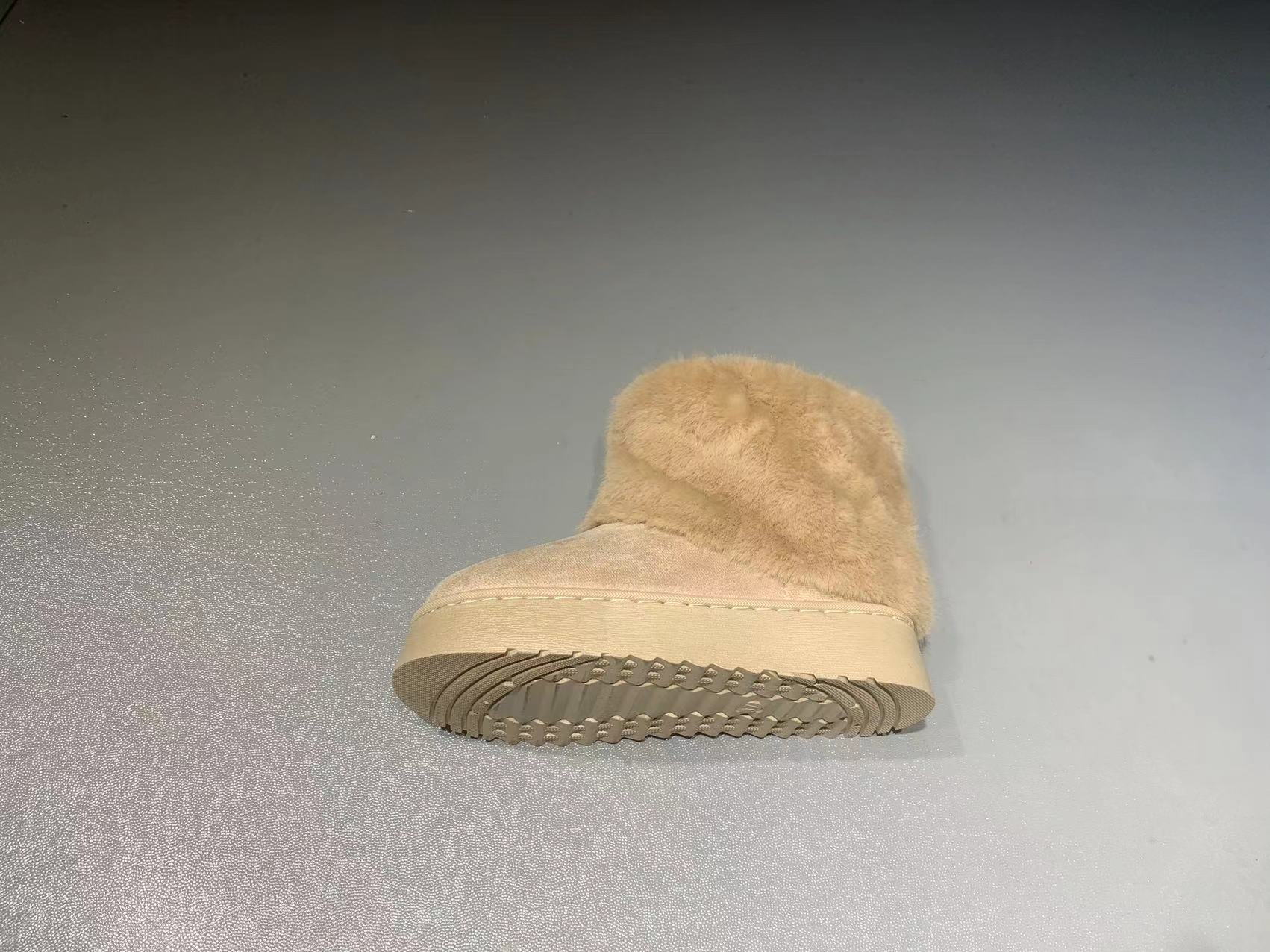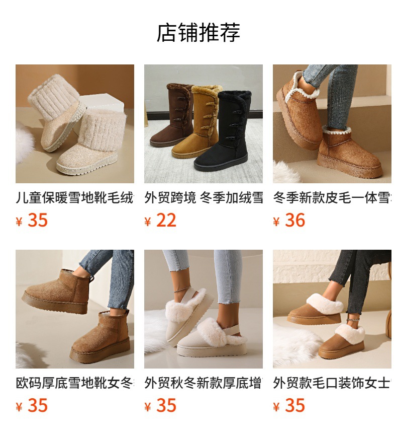 毛口条纹装饰女士雪地靴绒面秋冬休闲厚底中筒保暖舒适棉鞋