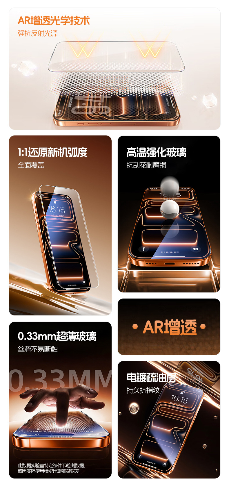 适用于iPhone17系列AR增透钢化膜苹果17Pro Max系列AR增透保护膜