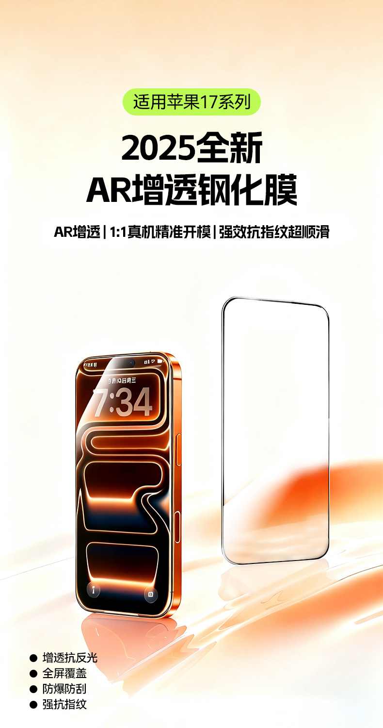 AR增透膜适用iPhone17高清钢化膜苹果17promax全屏手机屏幕保护膜