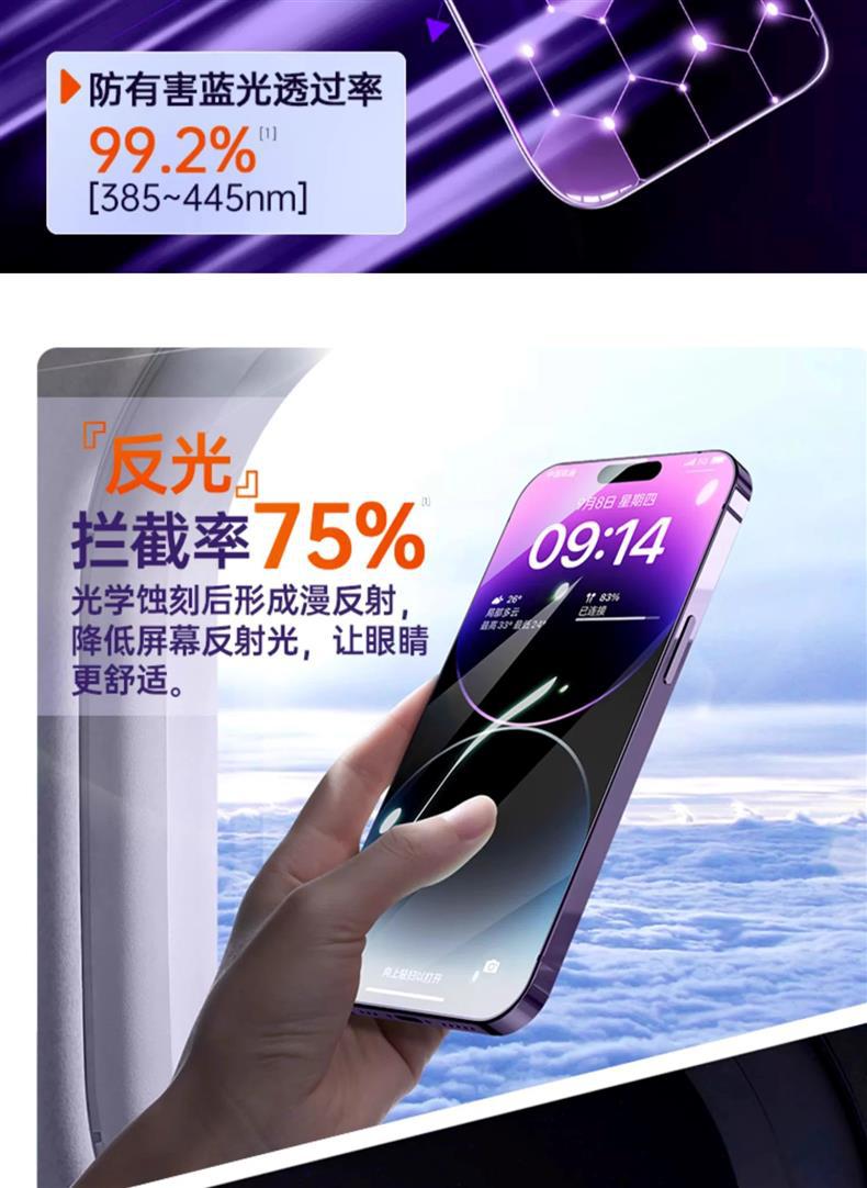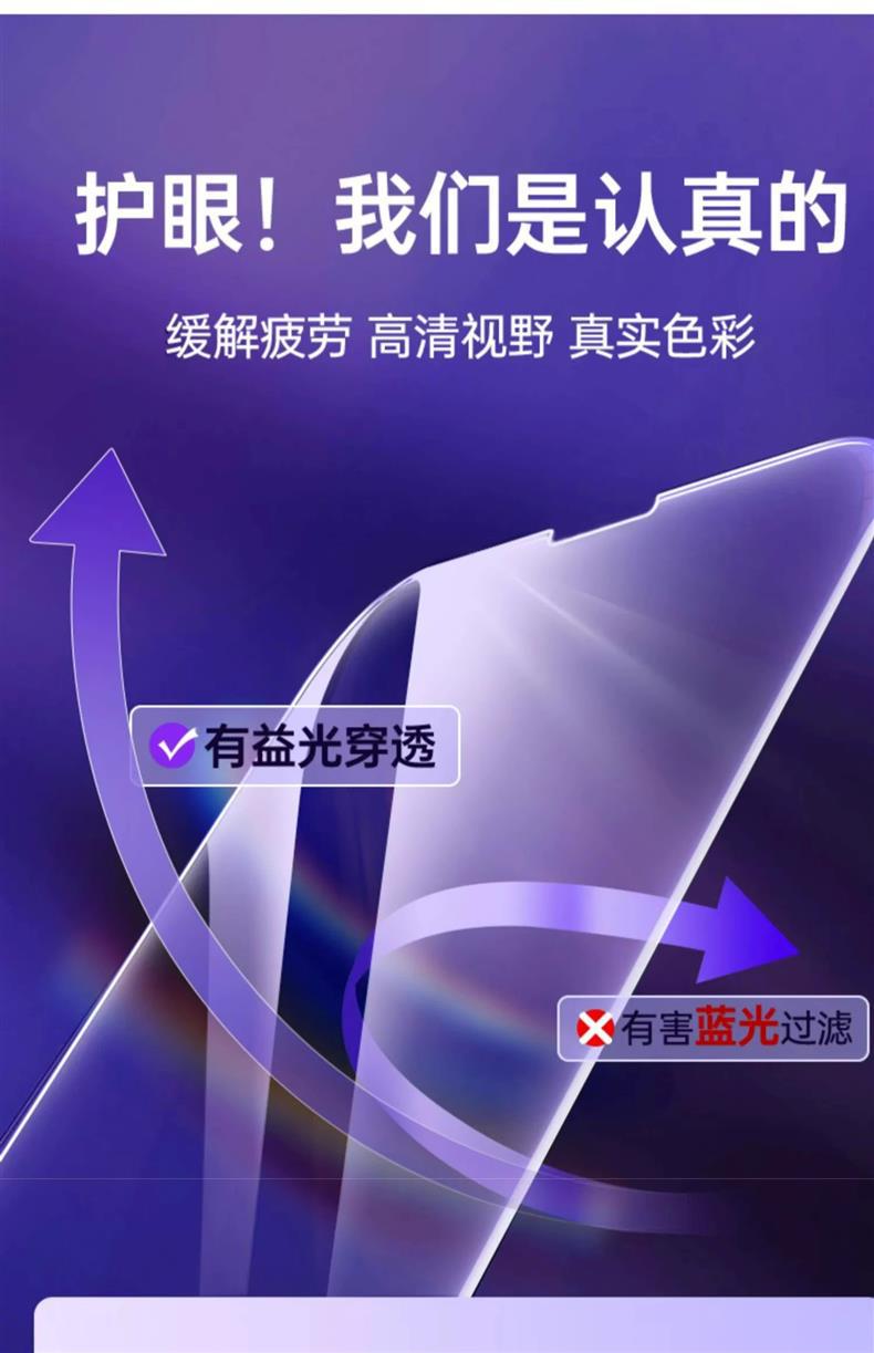 紫光护眼适用iphone16钢化膜promax苹果全屏手机防窥膜15保护