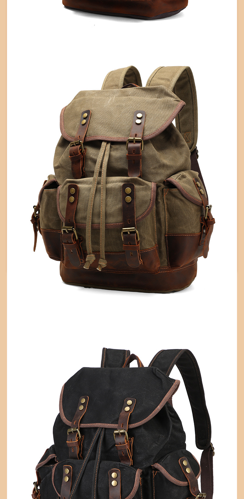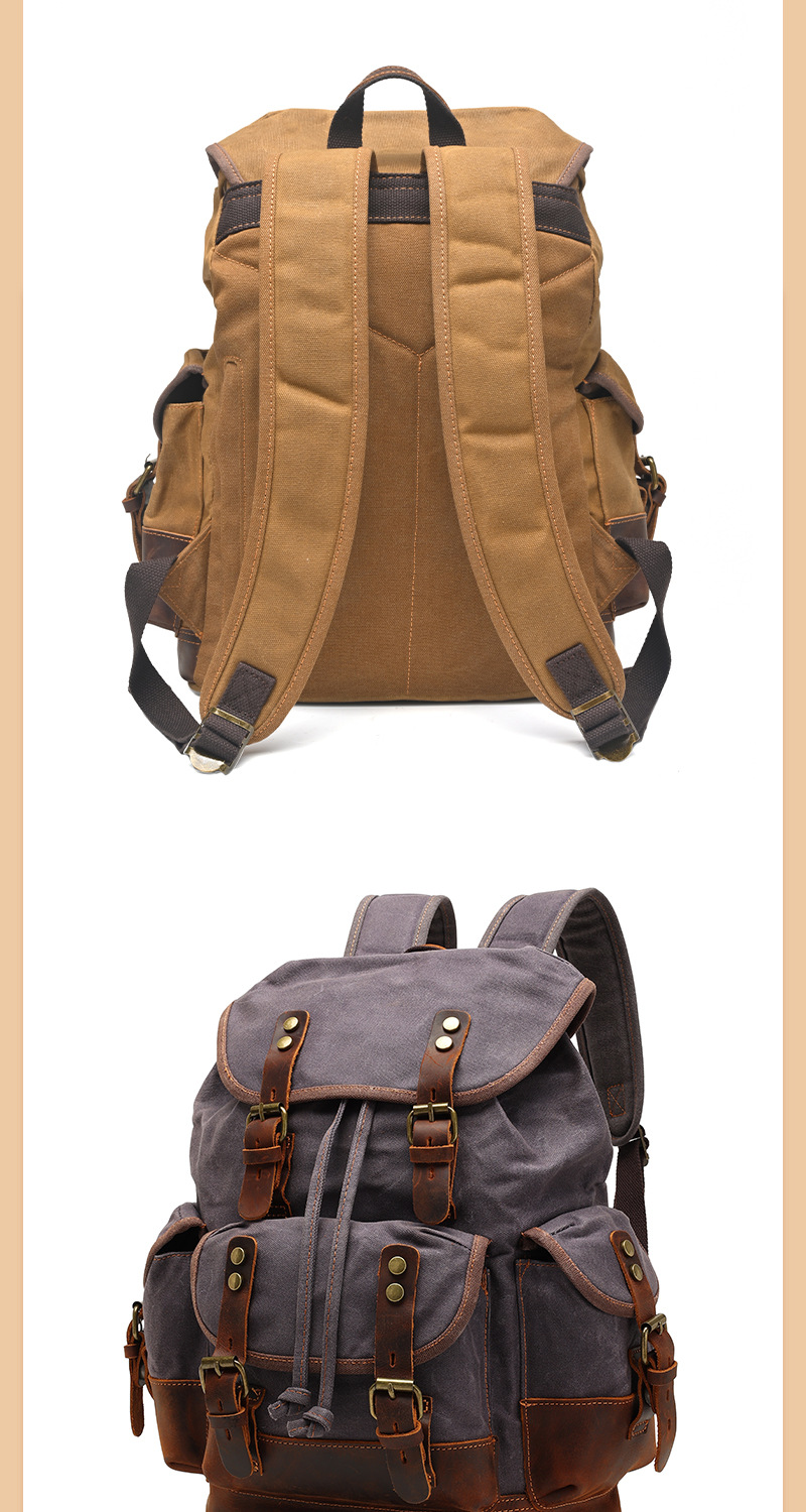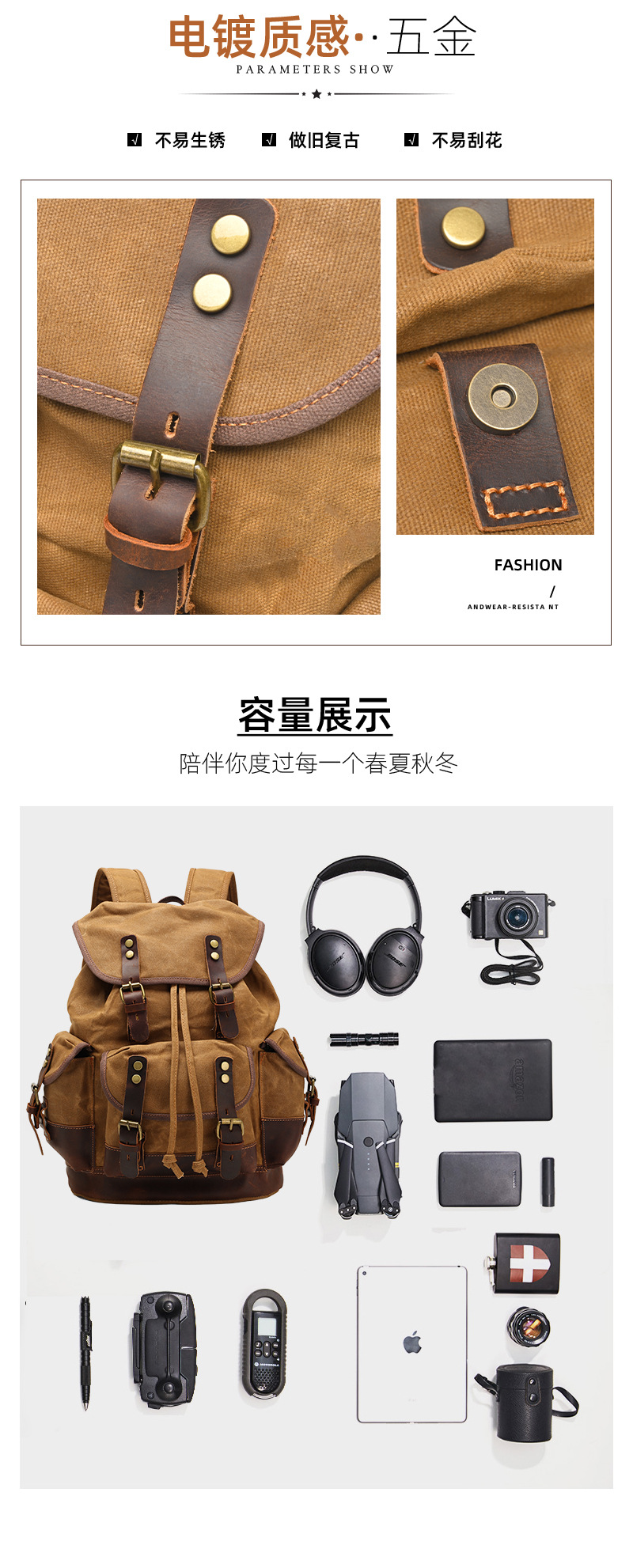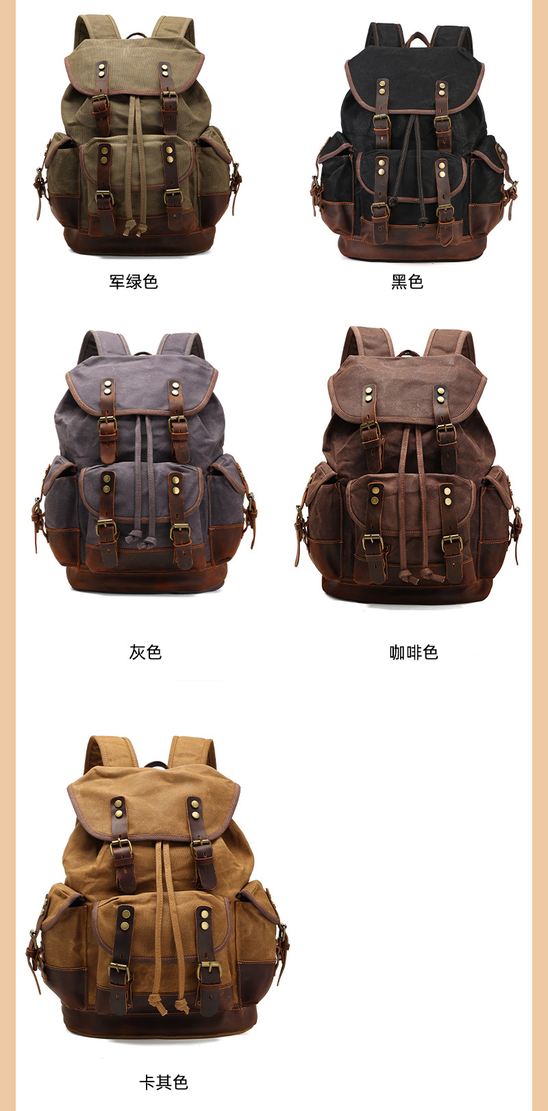 欧美复古防水油蜡帆布背包 户外旅行登山包 防水帆布多口袋背包