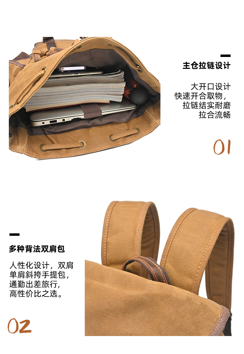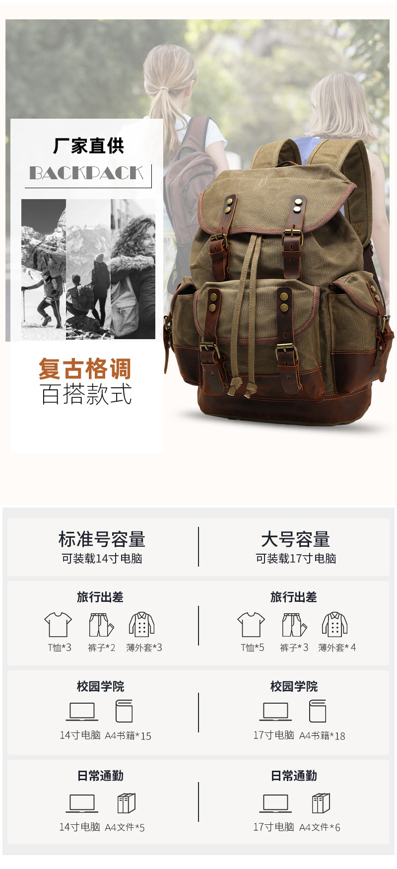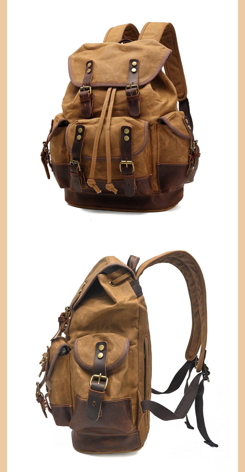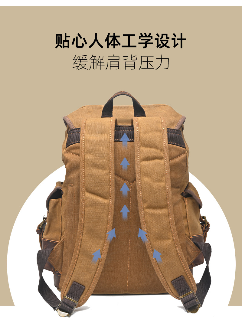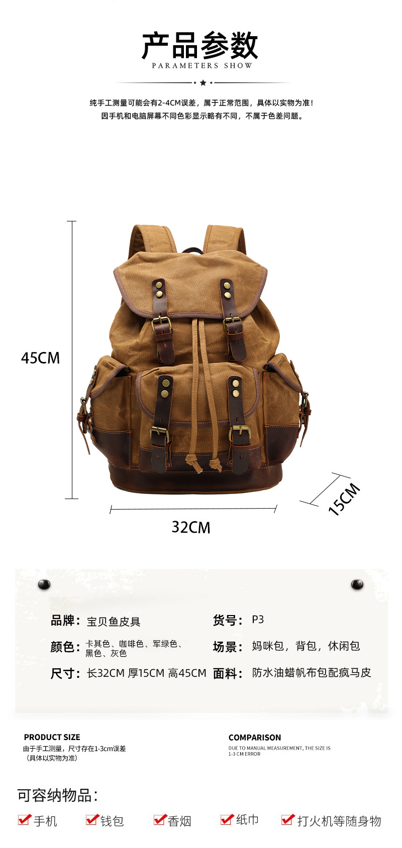 欧美复古防水油蜡帆布背包 户外旅行登山包 防水帆布多口袋背包