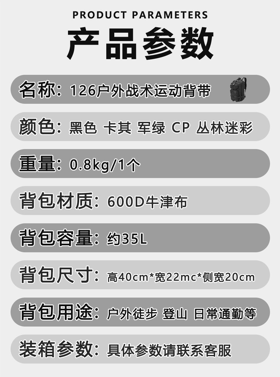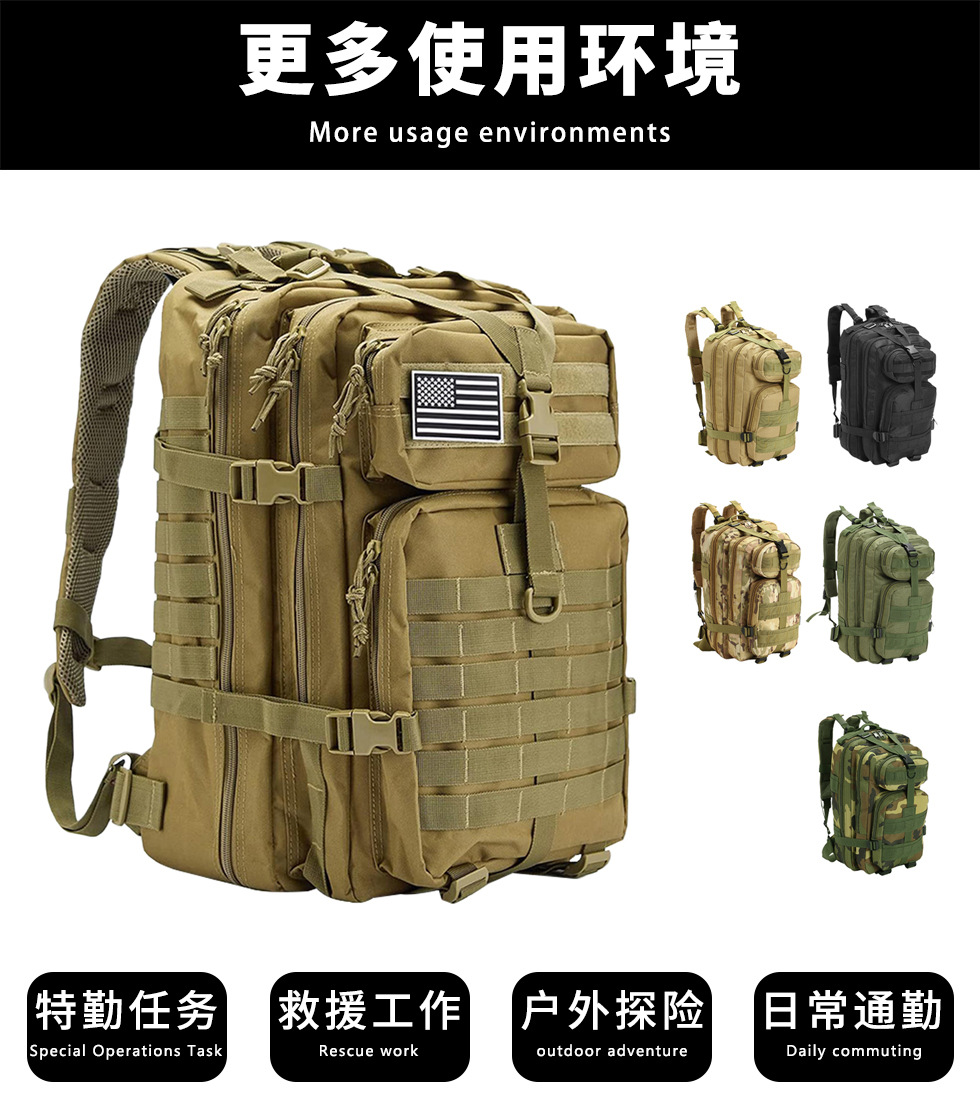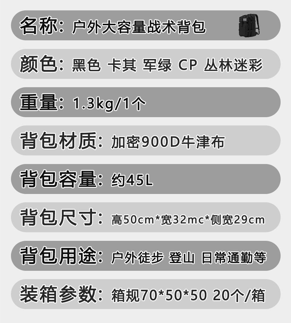 跨境大容量3P战术背包户外军迷作战双肩包登山骑行运动露营背包