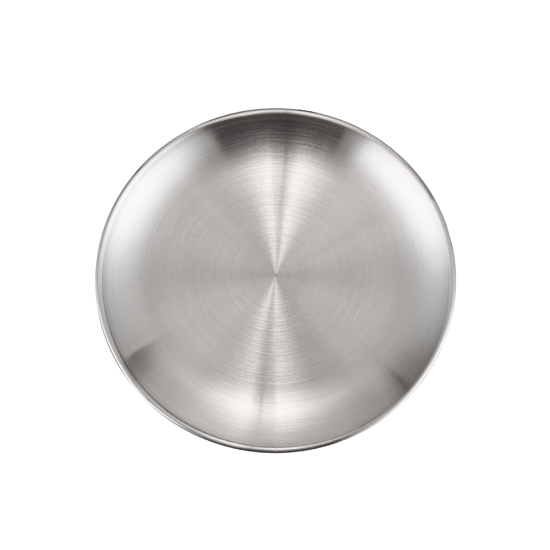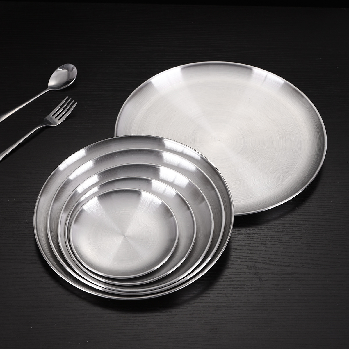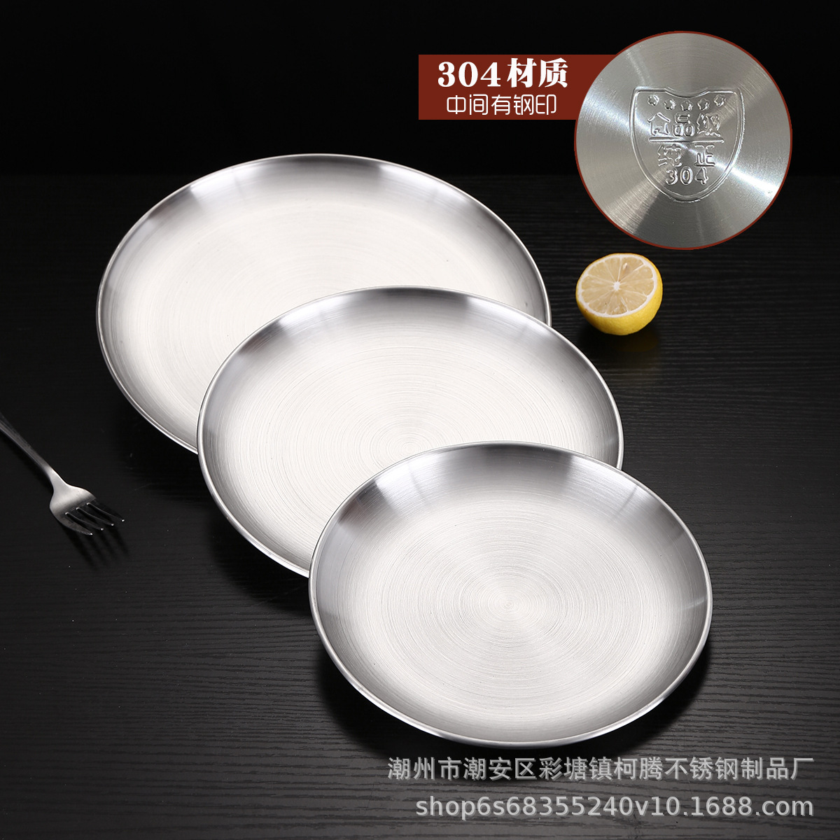 304不锈钢烤盘韩式圆盘金色托盘牛排烤肉盘双层加厚自助点心餐盘