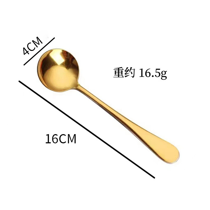 不锈钢勺子家用儿童吃饭圆头勺子长柄网红调羹西瓜勺圆勺可印LOGO