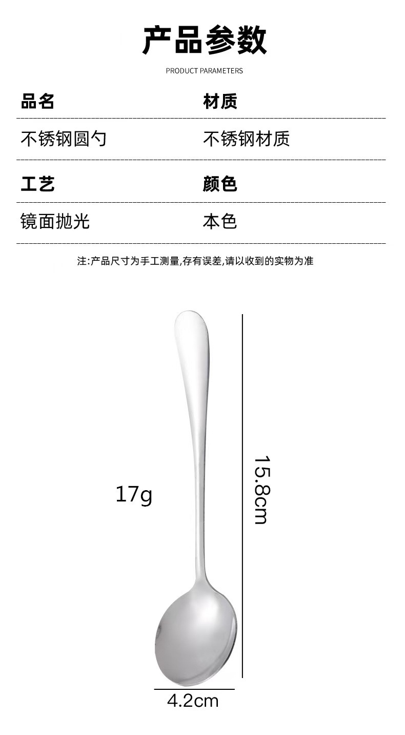 加厚不锈钢勺子水果勺西瓜勺成人儿童汤勺吃饭勺中长柄家用汤匙
