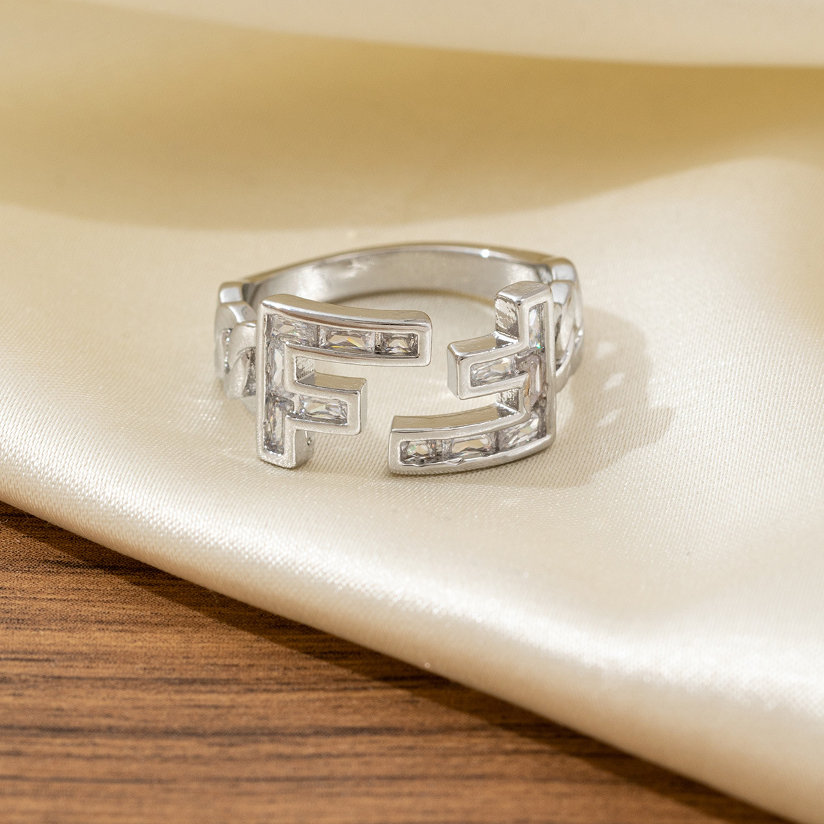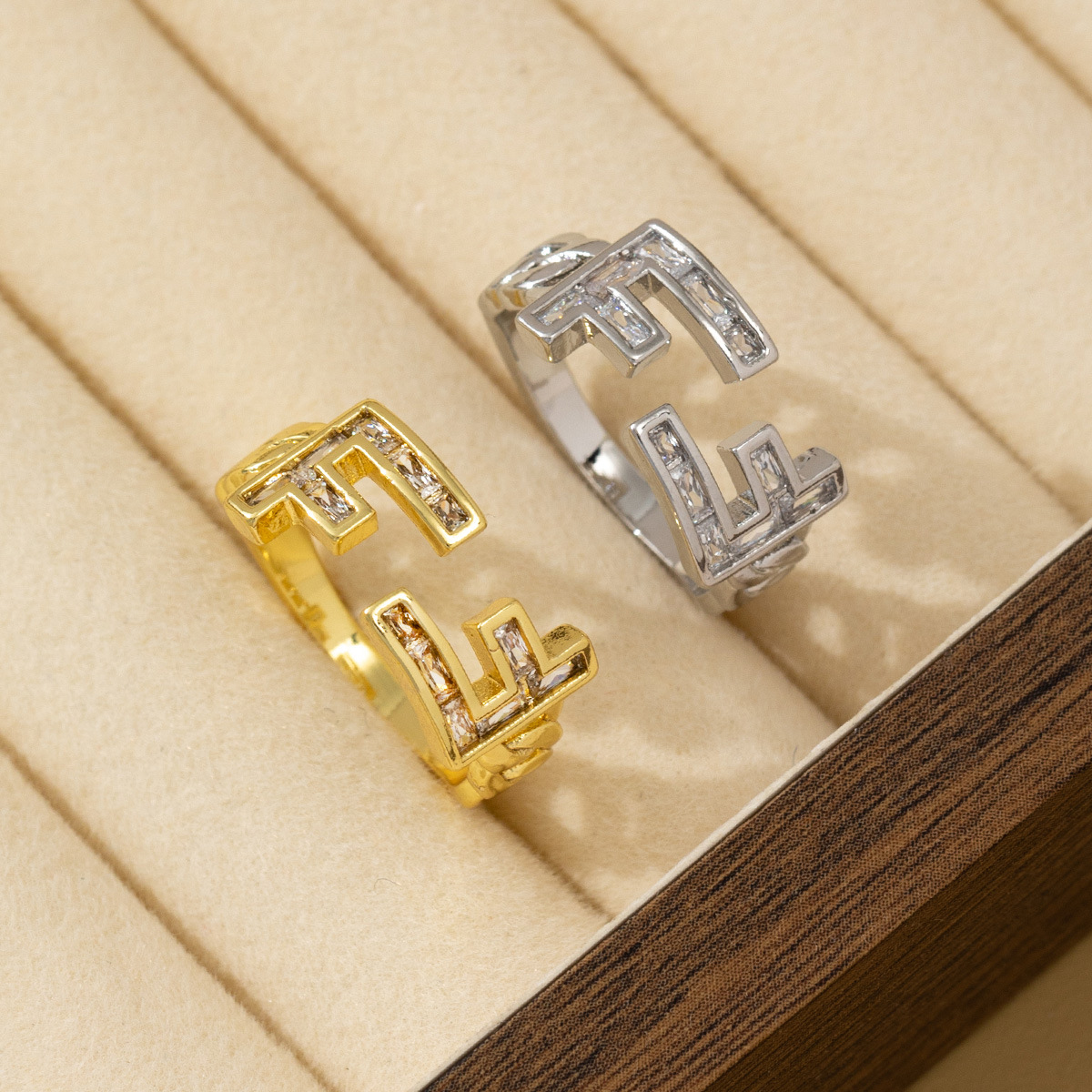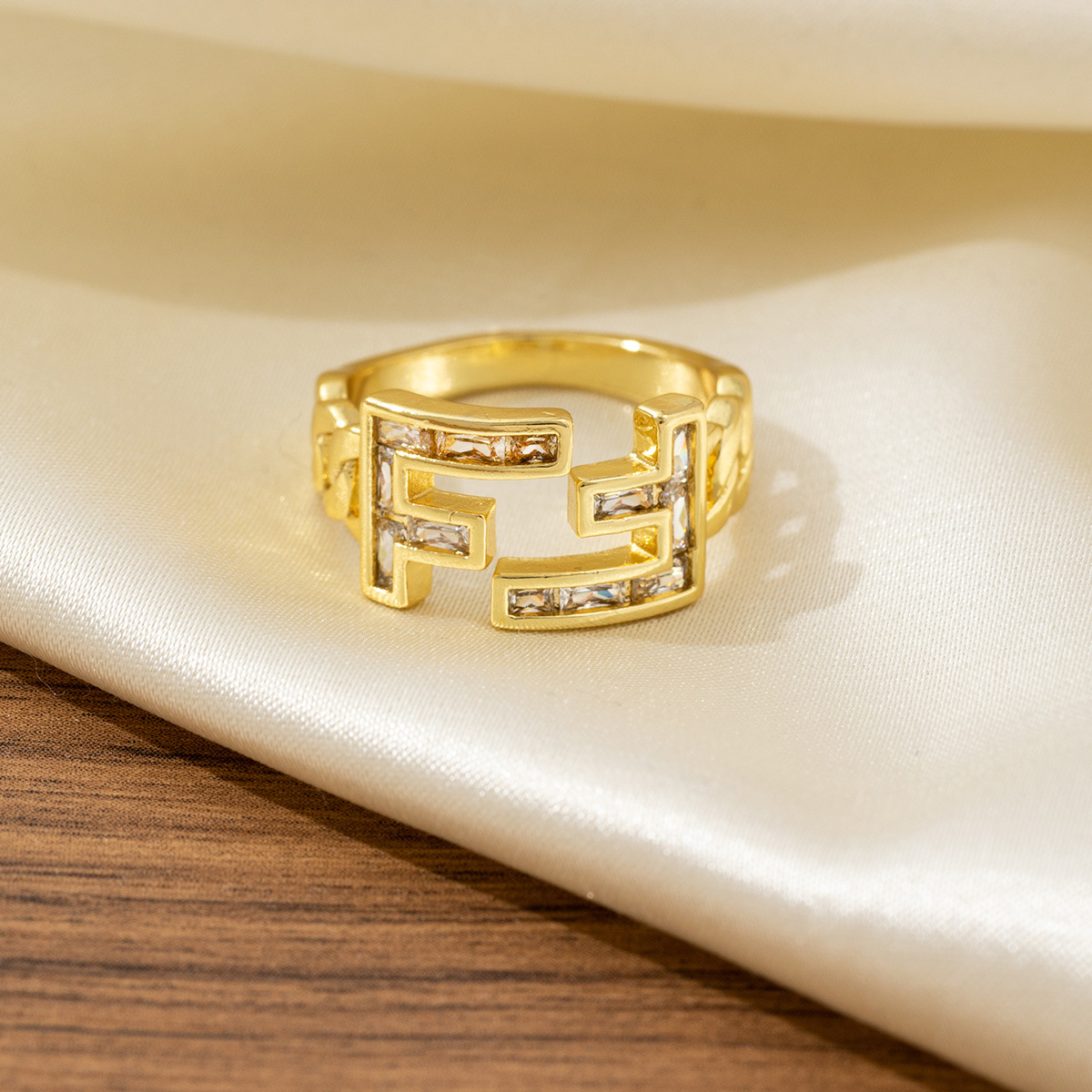 原创设计契合&双F字母戒指女滴油保色创意高级百搭可调节食指戒