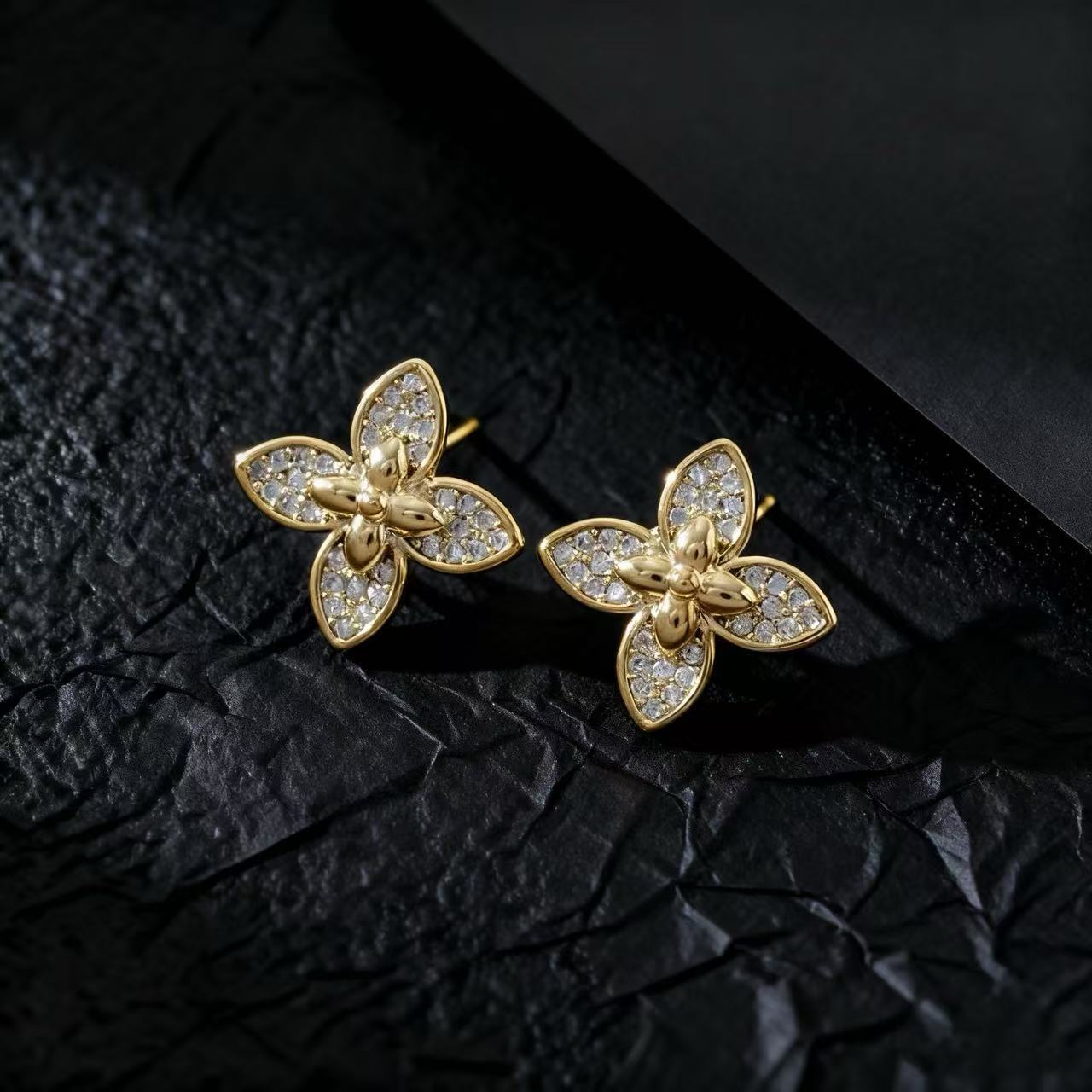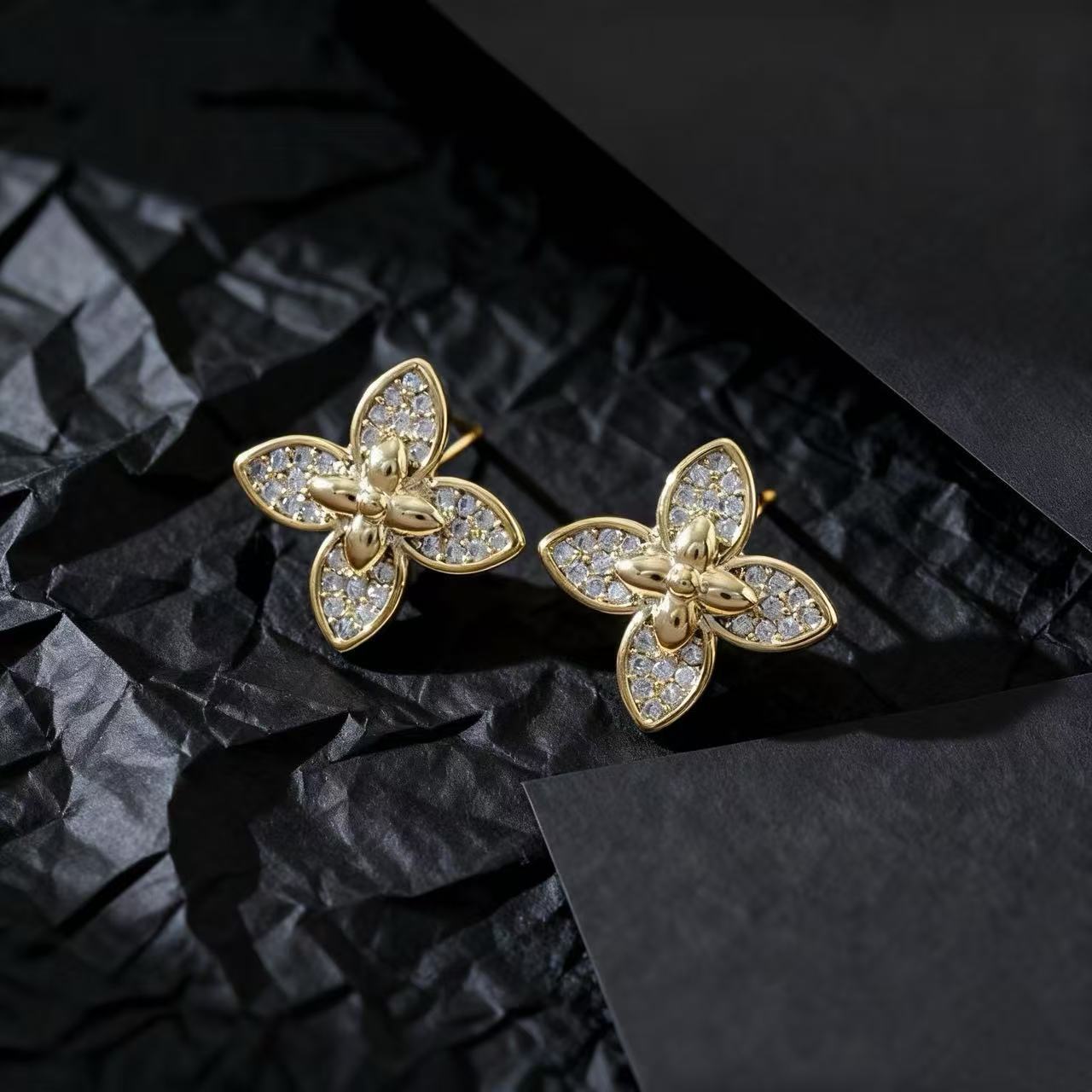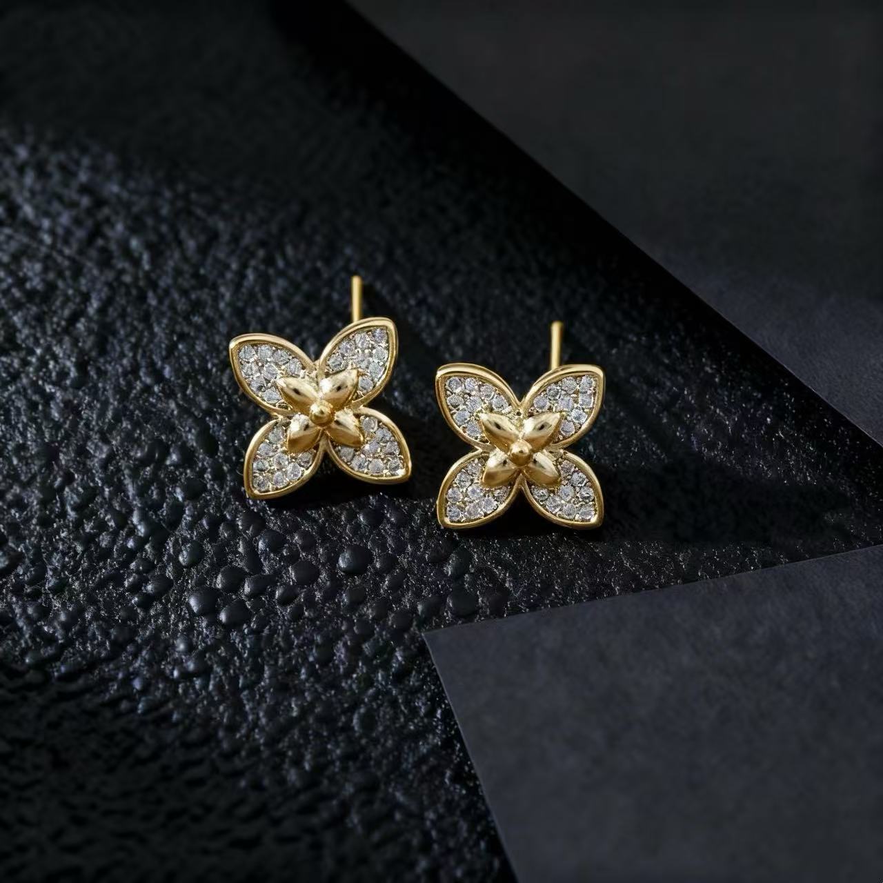 韩版新款蝴蝶耳饰时尚四叶草耳骨钉跨境新款饰品高级感气质耳钉女