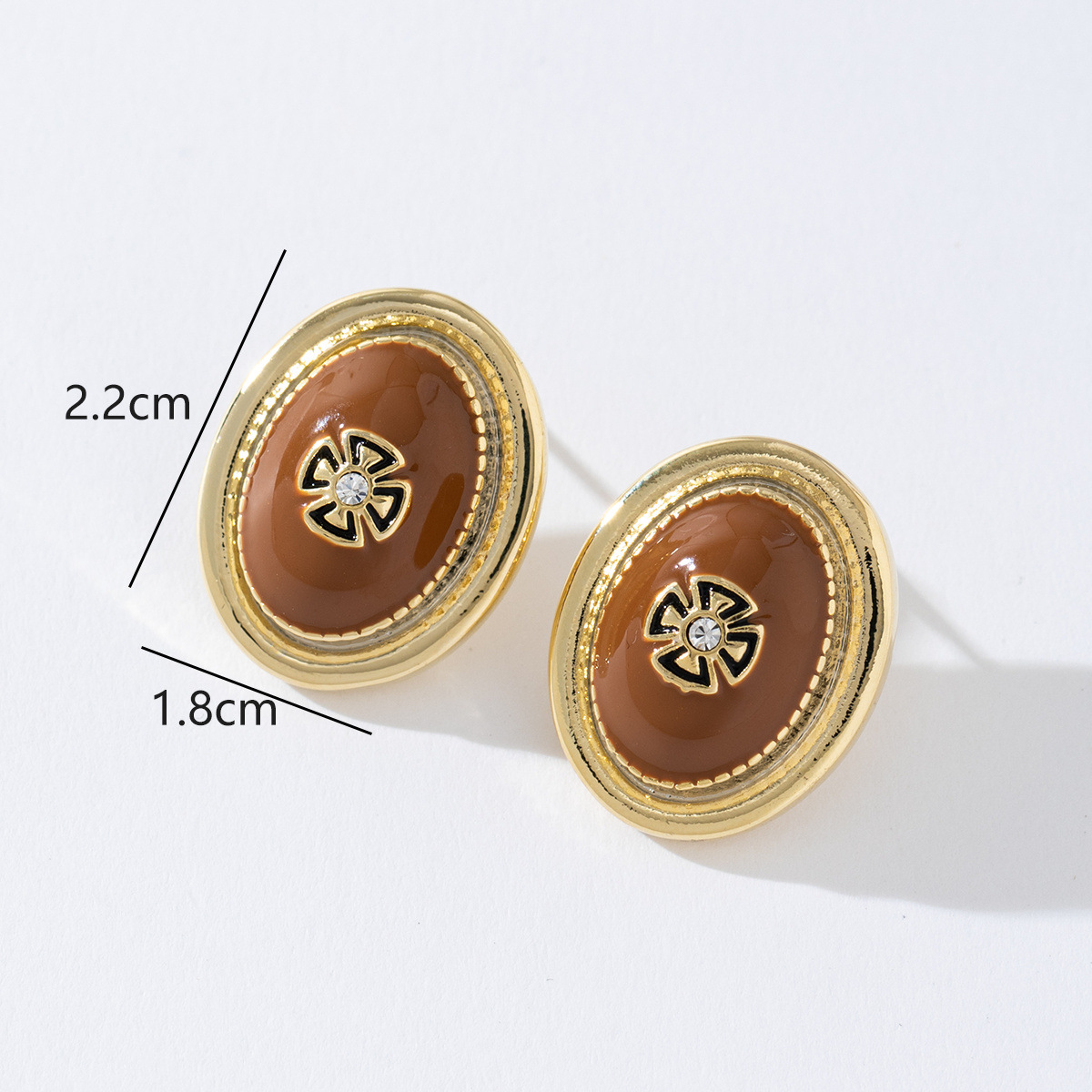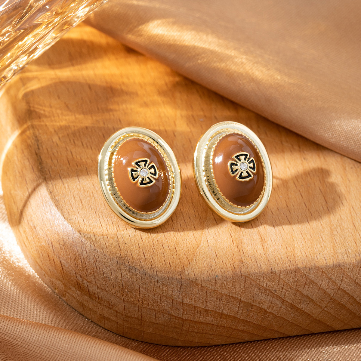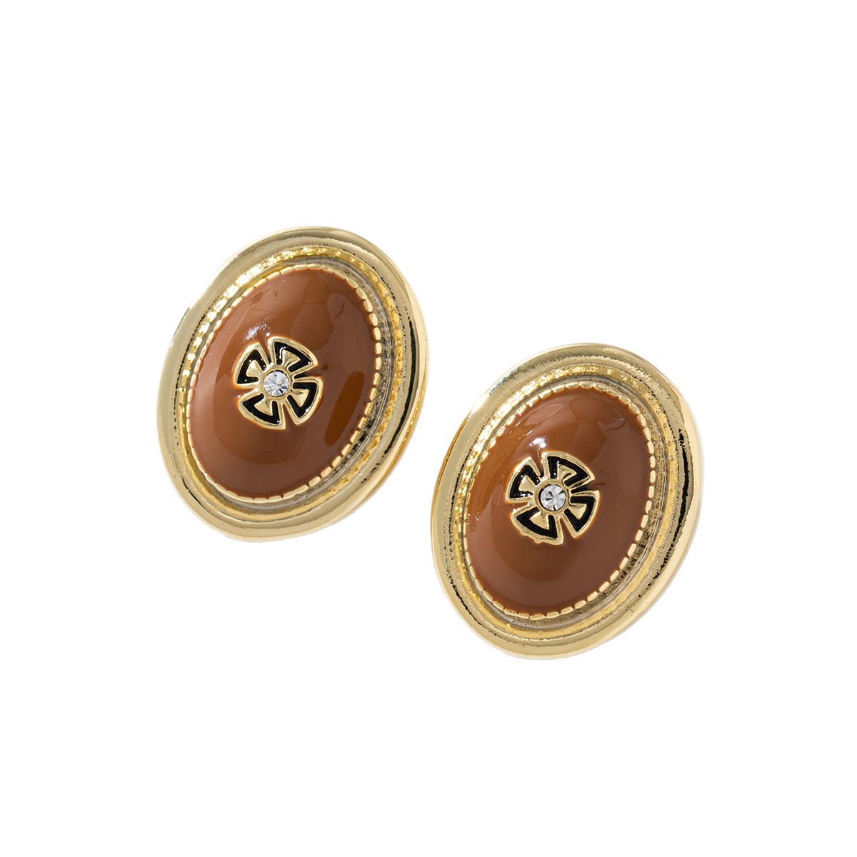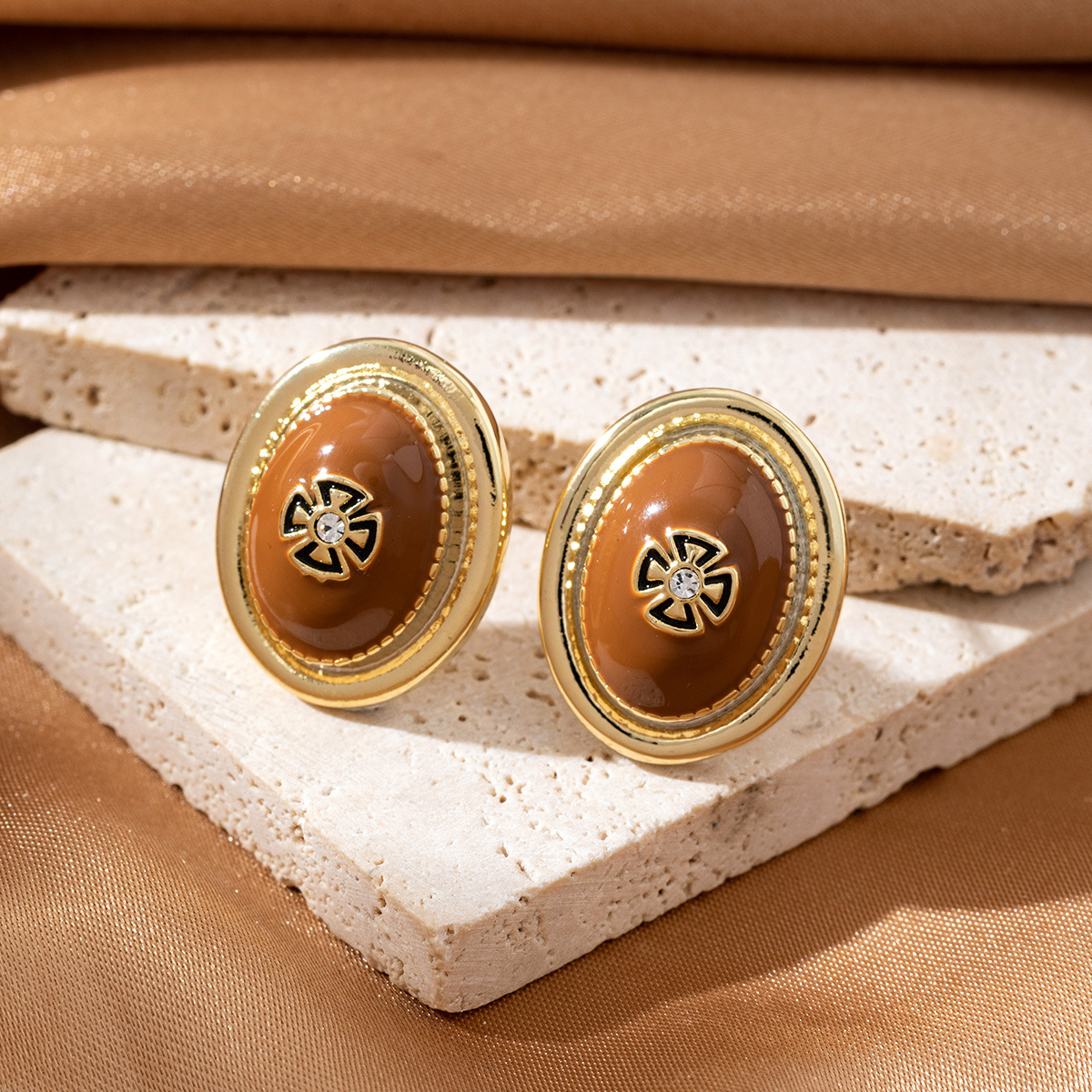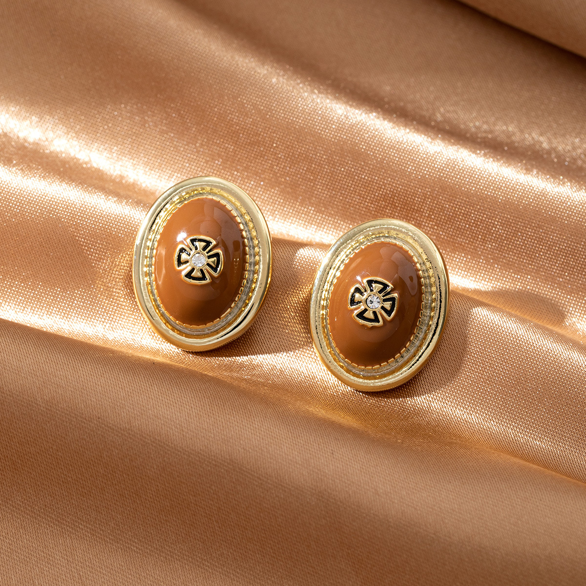 中古风轻奢鎏金椭圆形个性耳钉精致雕刻秋冬百搭复古小众耳饰女