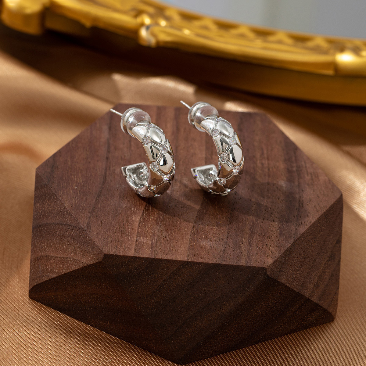 鎏金光面菱纹格几何耳环女黄铜镀真金不掉色高级感百搭小众耳饰