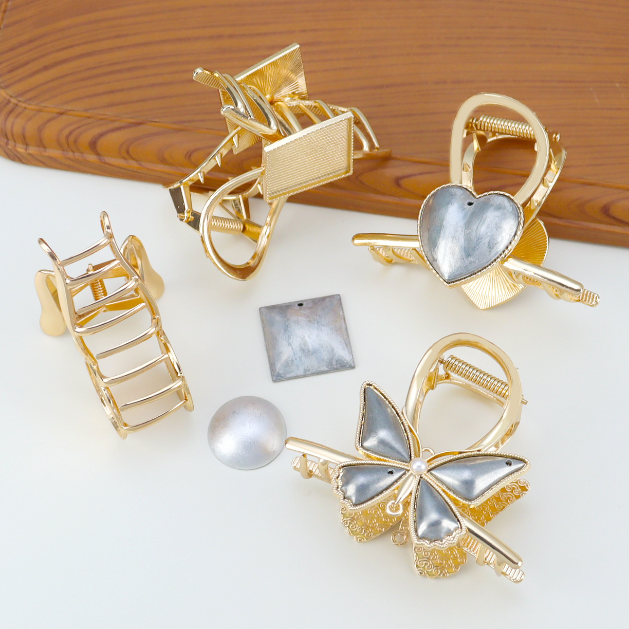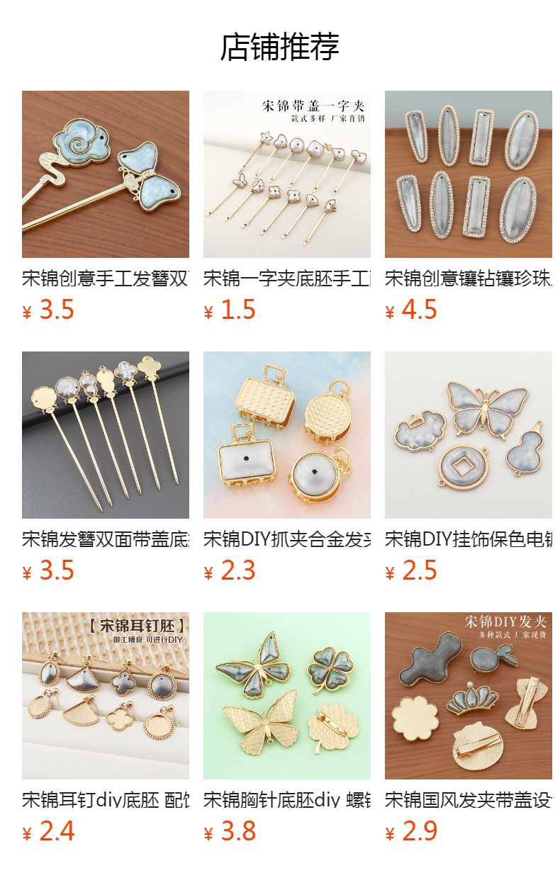 宋锦DIY抓夹底胚 配饰底托双面带盖子凹槽饰品配件厂家现货多款式