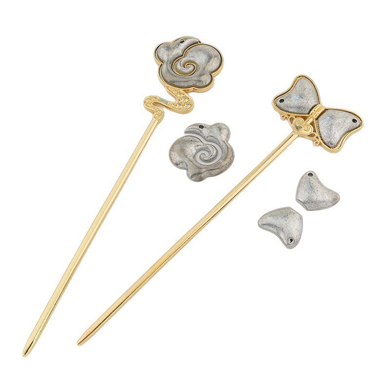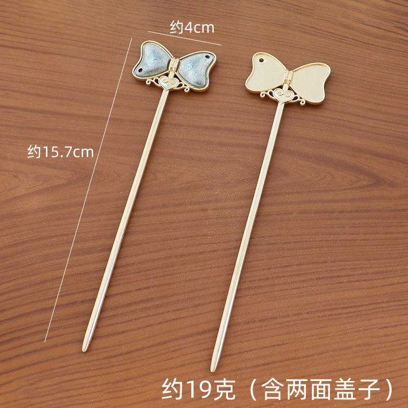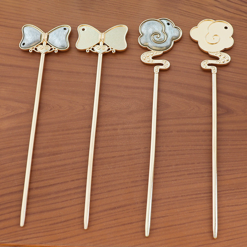 宋锦创意手工发簪双面盖底托diy 祥云蝴蝶结贴皮贴布盘发饰品配件